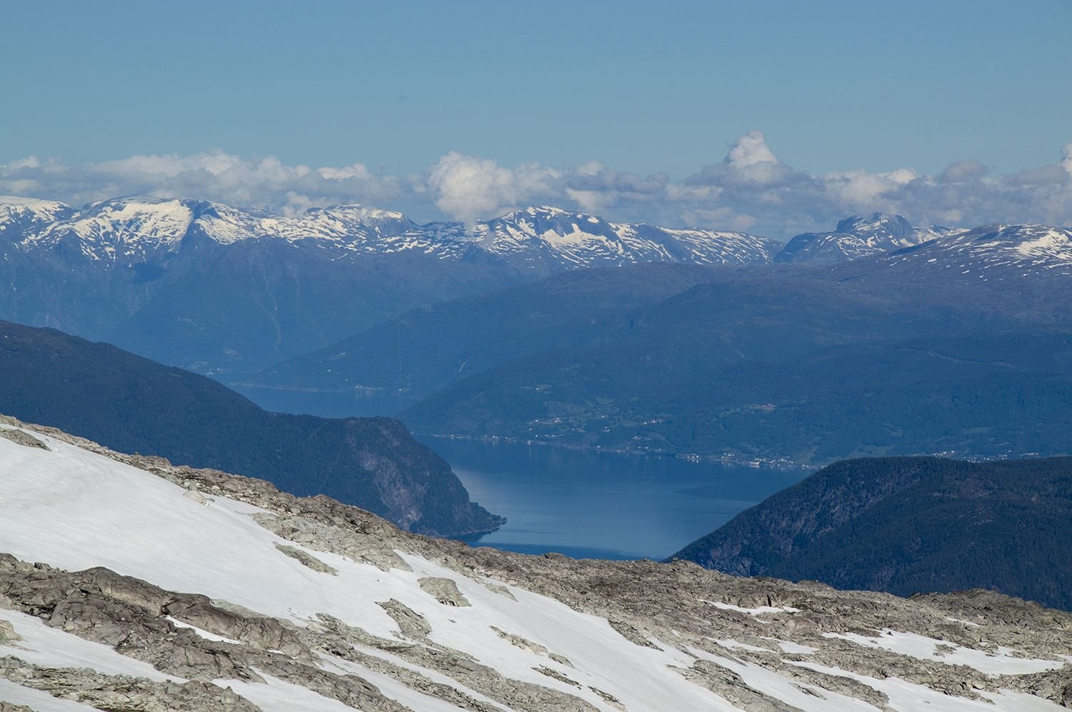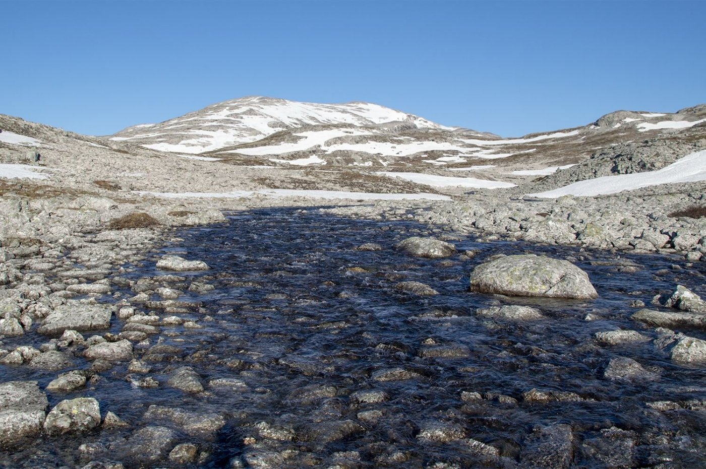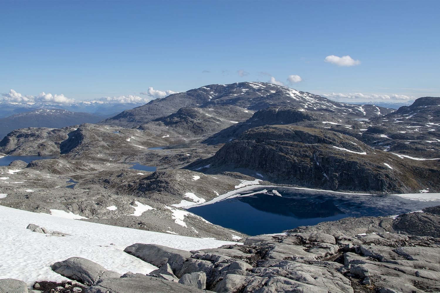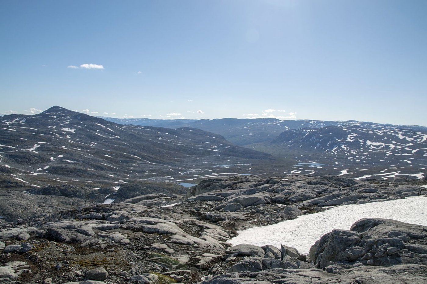 Planlagt tur: Fredag kveld, mål 1: Gå til foten av Bleia og overnatte. Lørdag, mål 2: Gå på toppen av Bleia. Lørdag, mål 3: Hente sekk på vei ned fra Bleia. Deretter gå til noen vann for å fiske og overnatte. Søndag morgen: Hjemtur. Har aldri vært i området før. Derfor skrev jeg ut kart over området på papir (og laminerte det da jeg var redd det skulle bli ødelagt av regn). Fiskekort ble kjøpt på Inatur.no. Kjørte direkte fra jobb i Oslo til Lærdal (ca. 29 mil), og videre opp mot Aurlandsfjellet (ca. 15 km). Veien opp til fjellet er veldig smal og mange svinger, noe utfordrende med møtende biler og ikke minst bobiler. Gåturen begynte ca. 18:00. Etter å ha gått i ca. 60 min uten sti, begynte jeg å bli veldig usikker på hvor jeg var i forhold til dit jeg skulle. Stoppet mange ganger for å se på kart, men greide ikke å se hvor jeg var og hvor jeg skulle gå. Første gangen jeg har hatt problemer med navigeringen. Ikke noe mobilsignal, og ingen app med nedlastet kart på mobilen. Fortsatte å gå, med mange stopp for å prøve å finne ut hvor jeg var på kartet, men til ingen nytte. Etter å ha gått i to timer, begynte jeg å bli lei og sliten i ryggen. Mørke skyer gjorde også at jeg ønsket å sette opp camp raskt. Etter hvert så jeg ett vann ved å gå litt lengre ned. Gikk ned og fant en grei plass til teltet. Skyene ble mørkere rundt om. Det ble noe regn i løpet av kvelden og natten. Lørdag morgen våknet jeg til det peneste fjellværet man kan ønske seg. Utsikten fra teltet viste en fjelltopp. Bestemte at det var toppen jeg skulle på. Mange snøflekker å gå over. Det verste var stein/grus som så trygg ut til å gå på, men som ikke var det. Gang på gang endte jeg opp med sko dekt av gjørme. Brukte et par timer opp. Norgeskart sier at toppen heter Grånosi, men litt usikker på om det er korrekt. Der fikk jeg god utsikt til området, og fjelltoppen Bleia som var mitt opprinnelige mål. Det var også mobildekning på toppen, og da fikk jeg sjekket været for neste dag. Det var meldt overskyet/regn hele natten og neste dag (søndag). Da jeg var tilbake i camp, var det godt å slappe av i et glovarmt telt. Tid til å plastre gnagsår på begge bein. Tanken på å stå opp neste dag og gå tilbake til bilen i regnvær, gjorde at jeg bestemte meg for å pakke sammen og dra hjem i finværet. Turen tilbake til bilen gikk greit, siden jeg nå hadde "lagret" oversikten over området i hodet. Men brukte likevel mye tid, da ryggen var veldig sliten og gnagsårene skrek ut i smerte. Dette var første gang jeg hadde kraftig undervurdert hvor langt jeg skulle gå første kveld, og høyden på "småtoppene" jeg egentlig skulle gå over for å nå første mål. Jeg hadde også gått veldig, veldig sakte, og var ikke i nærheten av der jeg trodde jeg skulle være. Men likevel en fin tur.1 poeng