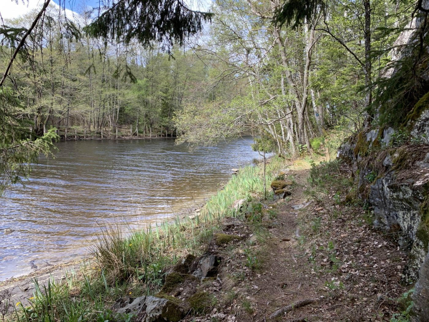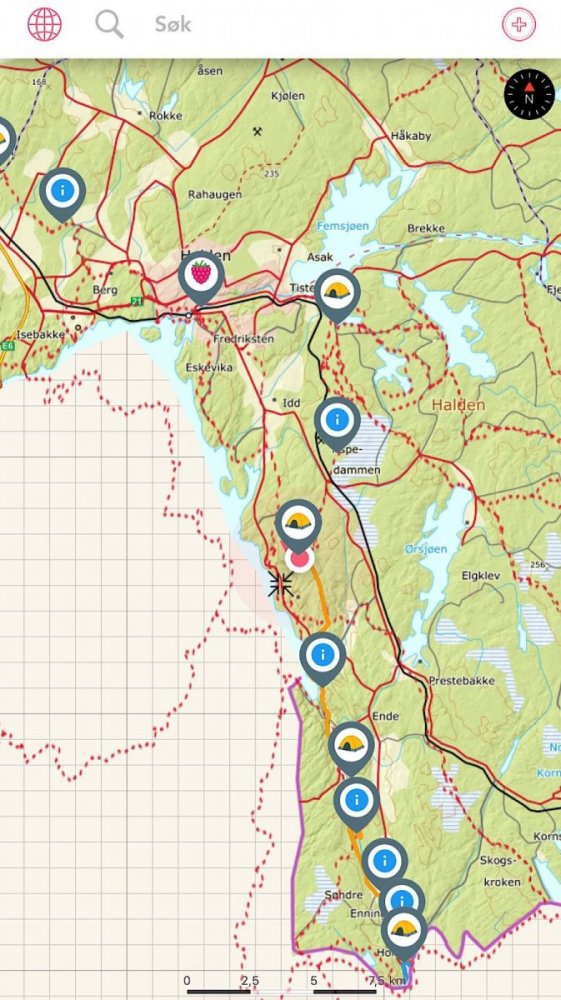 Denne toppen dukket opp. Like etter kom et flott infoskilt. Bygdeborger er artig, men tok ikke turen opp. Men merker meg stedet. Rart med bever i lakseelver. Trodde de ble fjernet derfra? Her har di bandasjert trær med netting, må være for å hindre bever. Har ikke sett dette før. Fin sti på begge sider av elva, men ingen fisket. Var vissnok ikke lov før 23 mai. Må jo være et perfekt sted å fiske! Mer lettgått stier dukker opp, men landskapet endrer seg. Det er skog. Gamle hesteeier, bygget opp rundt nuter. Her var det et flott område med mye siv, men ikke lett å ta bilder av. De er høye, ca 2.5 meter, hold telefon så høyt jeg kunne og tok bilde. Naturlig hellere også, minner litt om landskapet rundt Sandefjord. Mer siv og litt åpning. Mer lettgått og vel merket sti. Lette å gå og følge enn dette blir det ikke. Nok et naturreservat. En gammel grensestein? Her var det ikke noe skilt, så jeg er like blank. Men delen jeg har gått i så langt, passer vel bedre inn under Sverige ? Var en rart lyd lenge, lange rør som slo i vind og bølger. Tok av den godt merka stien og fulgte ruta jeg hadde laget, mye mer krevende. Havnet inni et enormt grustak/bergverksanlegg. Tipper veggen er 60 meter høy. Men de ansatte overhalte en eksenterknuser, og fikk litt råd på mulig vei ut. Og det hjalp. Litt mer krevende egen navigering. Stedvis vanskelig å finne stien. Her minner landskapet om Telemark. Mistet stadige vekk stien. Tegn etter gammel gruvedrift, midt innpå fjellet. Det blåste surt, og kom litt haggel/snø. Fant heldigvis igjen stien, men merkingssystem var veldig slitt, syns så vidt på første treet. Kom over denne flotte furua. Tenkte på @Tom42 som liker naturlig bøyd virke, denne hadde vært perfekt til en struts. Inn i skauen, heldigvis mer lettgått, begynte å bli sliten. Litt myr også, men ganske tørr. Da kom jeg hit som planlagt. Det er så tørt at jeg må finne teltplass ved et vann. @Iddefjording som jeg møtte på bussen fra Halden bor ikke langt unna. Da er jeg overhalveis til Halden, som er første delmål. Har trua på at dette går bra, men har lyst til å prøve å gå lenger. Men er en lang tur, så viktig å styre seg. Fulgte slavisk merking i går, her hadde jeg kunne spart 850 meter om jeg hadde vært mer våken. Men oppdaget det for seint. Lett å la seg lure av god sti og bra merking..... Blir kaldt i natt også. Edit: Har gått med stillongs i hele dag. Enkel lørdagsmiddag - men var ok. Dagens høydepunkt, var møte med denne. Sto i ro i sikkert 30 sekund før den snudde.1 poeng