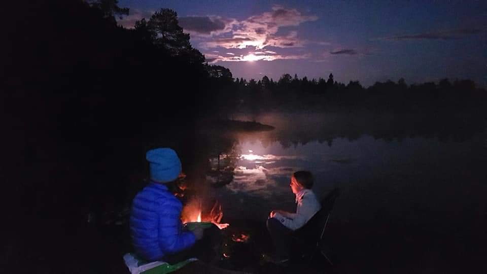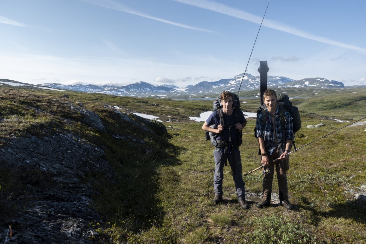 Den siste uken før sommerferien var hektisk! Simon og jeg var i full gang med pakkingen av både sekkene og alle eskene som skulle sendes til de ulike tettstedene vi skulle innom i løpet av sommeren. Det kriblet litt i magen i det alt var klappet og klart. I sommer var målet å gå fra Meråker til Rognan! Når jeg skriver om en så lang tur er det helt umulig å få med seg alt som har skjedd, jeg må derfor fokusere på noen av hendelsene i noen av områdene vi gikk gjennom. Kanskje jeg får skrive en bok fra denne ekspedisjonen og inkludere mye mer av det som skjedde underveis. Dette innlegget beskriver mer høydepunktene i løpet av sommeren. Du kan også sjekke ut innleggene fra hver enkelt etappe på bloggen min her: https://isakfriluft.com/ Du finner dette innlegget med masse bilder her! Litt rart å si adjø til venner og familie, når en skal være borte i nesten 2 mnd. Natta før avreise la vi oss tidlig, da flyet vårt til Trondheim gikk 0630 tidlig neste dag fra Kjevik. Jeg hadde vekkeklokka på 03:00 slik at jeg hadde tid til å legge ut et blogginnlegg og en video på YouTube. 04:00 var det en kjapp frokost før bagasjen ble lempet inn i bilen og vi dro for å hente Simon. På veien sendte jeg han en melding om at vi var på vei for å forsikre meg om at han var våken. En trøtt type åpnet døra i det det vi sto på utsiden av huset klar for en lang tur! Pappa kjørte oss til Kjevik da han skulle på samme fly som oss til Trondheim for å jobbe i et par dager. Vi kom oss på flyet, og på veien oppover mot Trondheim satt jeg og speidet utover vinduet. Jeg hadde ikke helt fått tid til å tenke gjennom hva vi hadde i vente, det hadde vært så hektisk før avreise. Heldigvis hadde vi litt mere erfaring med å pakke til langtur i år da vi hadde gjort akkurat det samme før sommerferien i fjor. I Trondheim fikk vi hentet bagasjen vår og kjøpt en kaffe i kiosken før vi hoppet inn i en taxi som skulle ta oss til Meråker, ca. 45 minutter unna. Jeg må innrømme at jeg ikke hadde vært så mye på telttur som jeg vanligvis gjør før sommeren, skolen har tatt mere tid enn normalt, slik er det vel med videregående. For Simon gikk både flyturen og taxituren veldig fort, ikke så rart når han sovner på 2 nanosekund og våkner igjen når vi her fremme;) Fremme i Meråker hadde vi i oppdrag å handle litt snacks og noen gassbokser da vi ikke kan fly med gass. Bare på de 100 meterne fra taxien til sentrum ved en bensinstasjon kjente vi sekkens tyngde, den er ikke noe å spøke med altså! Vi fikk handlet gass på MX Sport og litt snaks på Rema 1000, nå ble jo sekken bare enda litt tyngre, flotters! Vi satt i et kvarter på utsiden av bensinstasjonen i frykt for å ta på de tunge sekkene. Vi kom i snakk med mange trøndere som syntes det var et imponerende prosjekt vi hadde begynt på, de ønsket oss lykke til. Sekkene våre var nok nærmere 30 kilo på denne etappen, litt drøyt. Vi satt dem oppå et bord slik at vi ikke trengte å løfte de oppå ryggen, da vi var redde for at reimene kunne ryke. Første dagen skulle vi bare gå på vei, først asfalt, så grus. Vi fulgte veien som gikk nordover fra sentrum mot Funnsjøen. Det var ganske varmt denne dagen og fint vær, så svetten rant! Ingen av oss hadde gått sånn veldig mye med sekk før sommeren og merket at formen kunne vært enda bedre… Hver halvtime tok vi en ti minutters pause for å hvile ryggen og beina. Første dagen gikk vi ikke veldig langt, det pleier vi heller ikke å gjøre, da sekkene er så tunge og kroppen må bli vant til belastningen. Vi gikk hele denne første dagen med nye joggesko og mot sutten av dagen kjente jeg det gnagde på helen. Jeg tok på en compeed før blemmen hadde kommet og håpet dette ville hjelpe de siste kilometerne opp til Funnsjøen. Da vi kom frem så jeg at det hadde kommet en blemme under gnagsårplasteret, litt kjipt å få på første dag, men sånt skjer når kroppen ikke er vant til belastningen. Det var endel hytter langs vannet, og vi slet derfor med å finne en teltplass som var et stykke unna bebyggelse. Vi gikk derfor opp til noen vi så på en hytte, det var en dame med noen barn og spurte om det var greit for dem om vi satt opp teltet langs vannet på nedsiden av hytta deres. Det var helt innafor, så vi gjorde det. Det var en fin og flat teltplass kun noen få meter unna vannkanten. Simon prøvde å fiske noen kast med stanga, men fikk ingen napp. Litt senere på ettermiddagen kom dama og ungene som vi hadde snakket med tidligere ned for å tilby oss båten deres i tilfelle vi hadde lyst til å bruke den for å fiske lenger ute på vannet, vi takket for tilbudet. Det ble ikke noe mer fisking denne dagen da vi begge var litt forvirret, det gikk liksom opp for oss begge at ekspedisjonen hadde startet og at vi skulle være på tur i to måneder! Det blåste ganske mye denne ettermiddagen, og vi satt oss i sola i le av vinden for å spise middag. Vi kokte opp vann med primusen for første gang i år og lagde oss en Real Turmat hver. Jeg spiste en jeg aldri hadde smakt før, laks og pasta var det oppi den, har blitt en av mine nye favoritter, jeg kan anbefale den! Vi var begge trøtte etter over en mil med blytunge sekker og en reisedag som startet supertidlig. Når klokken var halv seks la vi oss denne dagen. Neste morgen ble vi vekket av det som hørtes ut som et helikopter, men det var visst bare lyden av en halv fantasilion knott på duken inni teltet, heldigvis ikke inni innerteltet! Vi spiste frokost med myggnett og hansker slik at hele kroppen var dekket av klesplagg. Dette hjalp, men knotten kommer fremdeles inn her og der. Vi slo vilt rundt oss hele tiden, hadde ikke akkurat blitt helt vant til innsektene enda… Vi gikk opp til innsjøen videre fra Funnsjøen, Feren mener jeg på denne het og i løpet av dagen kom gråværet (som visstnok skulle vare i noen dager). Vi satt opp teltet med tarpen over slik at det skulle bli enda mer vanntett og slik at no