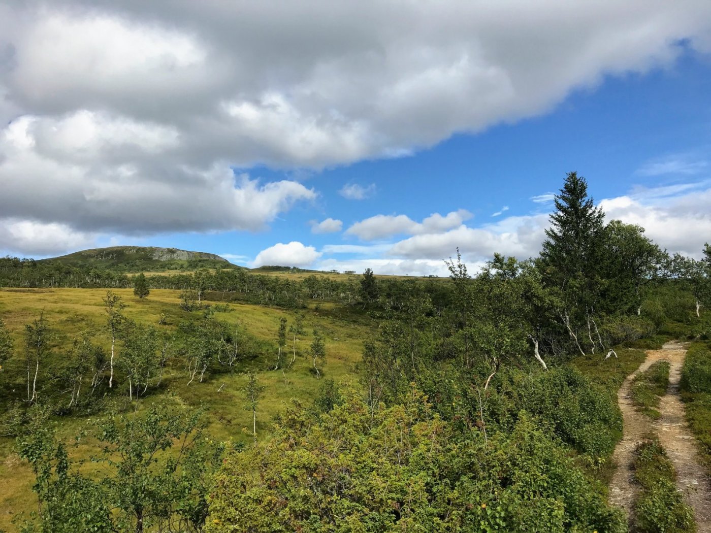 Ja, det er en fin tur! Jeg gikk deler av ruta for kanskje 15 år siden. Husker ikke noe spesielt om terrenget, om det var lettgått eller tungt. Om fem mil på fire dager er mye, må dere nesten vurdere selv, ut fra hvilke erfaringer dere har og hvor langt og mye dere har gått med telt før. Selv er jeg 53, er mye på telttur, men det er sjelden jeg går noe særlig mer enn en mil per dag med full oppakning, skyldes dels at jeg går en del utenom sti (som er tyngre enn på sti), og at jeg ikke har vett til eller lyst til å pakke lett (sekken er normalt på nærmere 25 kilo på fjelltur). Dere bør tenke på alternative sluttsteder, i tilfelle det viser seg at ruta er for lang og tung for dere, om det blir dårlig vær, eller annet uforutsett. Avslutning på Kongsvoll er en mulighet.1 poeng