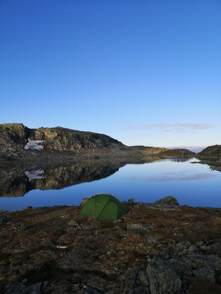 Kom hjem i går kveld etter en tur til Sølen-området (Rendalen). Målet var å komme seg på toppen av Nordre Sølen. Første gangen i dette området. Kjørte fjellveien mot Fiskevollen ca. 2,7 mil. Sølenfjellene var dekt i skyer. Gikk et par km til jeg kom til noen vann. Der ble det camp. Litt vind og småregn hele ettermiddagen/kveld. Skulle koke vann til mat og drikke. Dessverre gikk primusboksen tom veldig raskt, så da ble det bare lunken te og kveldsmat (æsj!). Våknet tidlig neste morgen, litt kjølig. Med ingen mulighet for varm mat og drikke, var det bare å starte gåturen med én gang. Glitrende telt i morgensolen. Fin utsikt mot målet (venstre side). Siden jeg ikke fikk laget frokost, måtte det som skulle være lunsj, bli både frokost og lunsj. Det ble en slitsom tur, og det var nesten som jeg ga opp ganske tidlig. Men tvang meg selv til å gå videre. Tror jeg smilte litt da jeg endelig kom meg på toppen. Da jeg kom ned til teltet, hadde det begynt å bli en del vind. Pakket sammen og dro hjem.1 poeng