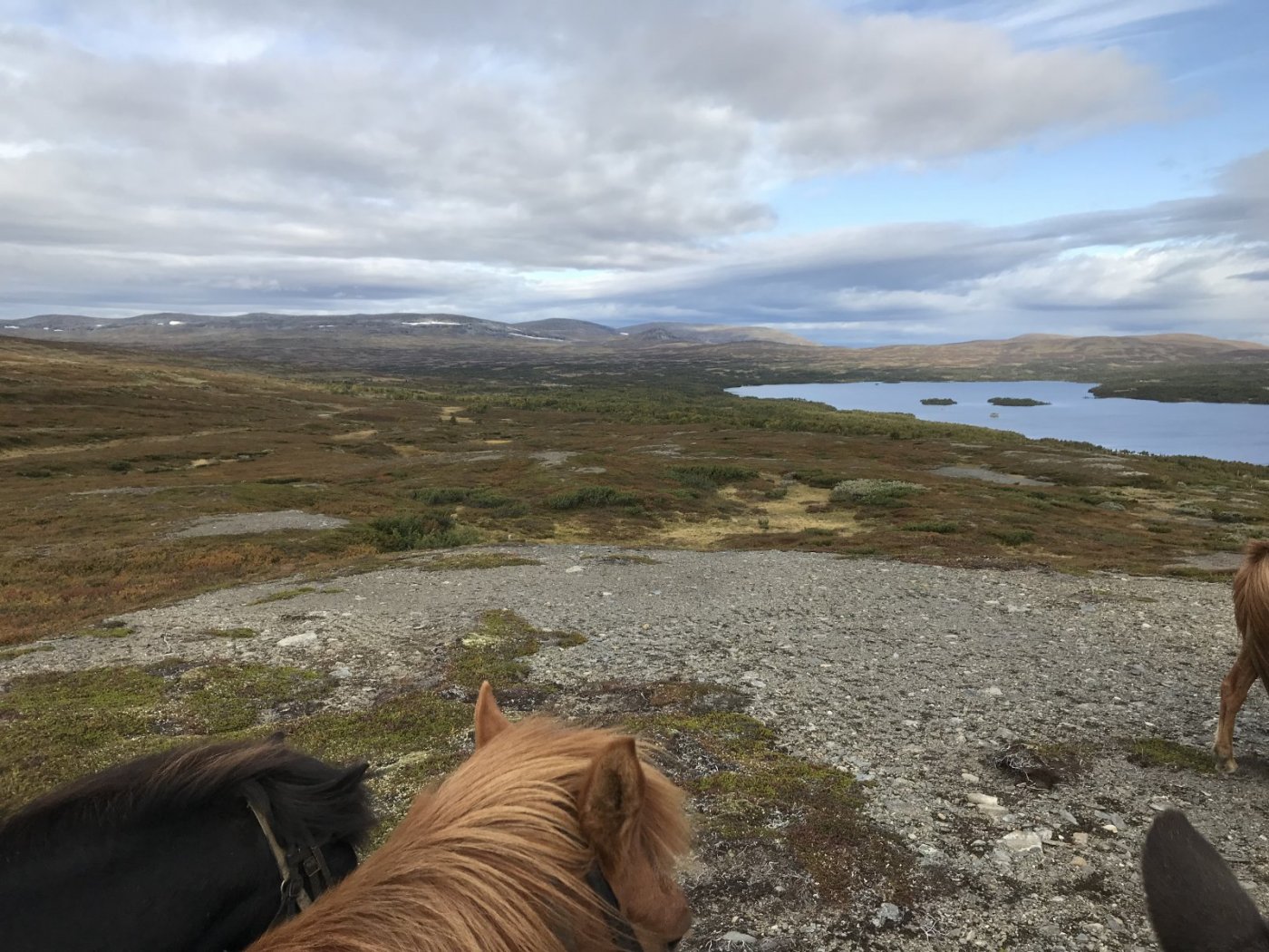 For 3. år på rad har jeg vært på fjellridning i Tydalsområdet. Definitivt godt for sjela, og kroppen blir nok bra den også. Siden jeg ikke rir jevnlig så blir jeg påminnet om en del sovende muskler. Gangsperr!!! Turen gikk over 3 dager. Ca 2 mil dag 1 og 3, muligens litt kortere dag 2. Vi opplevde variert terreng. Dels høyfjell, dels skogkledde lier og små skogsveier. Mye reinsdyr å se, og en og annen rype flakset opp. Når man ser en rekke små, stødige og tålmodige islandshester traske over lyngheiene i en pent ordnet rekke og det eneste som høres er susingen av vind og klapring av hover blir man rent andektig til sinns. Og når kaffebålet er tent i lunchpausen og turdeltakerne sitter henslengt rundt mens hestene går omkring og beiter senker roen seg over bystressede skuldre.2 poeng