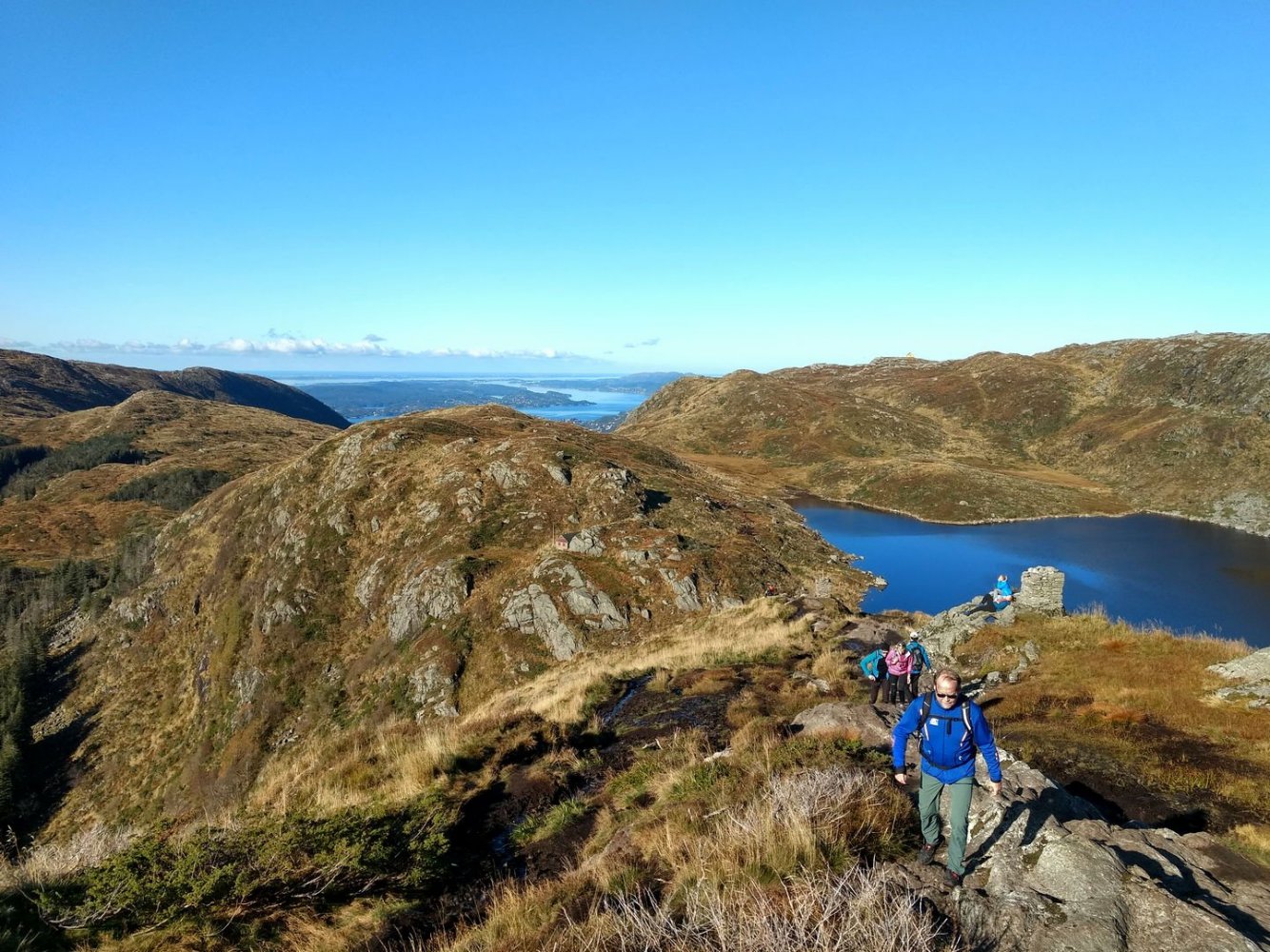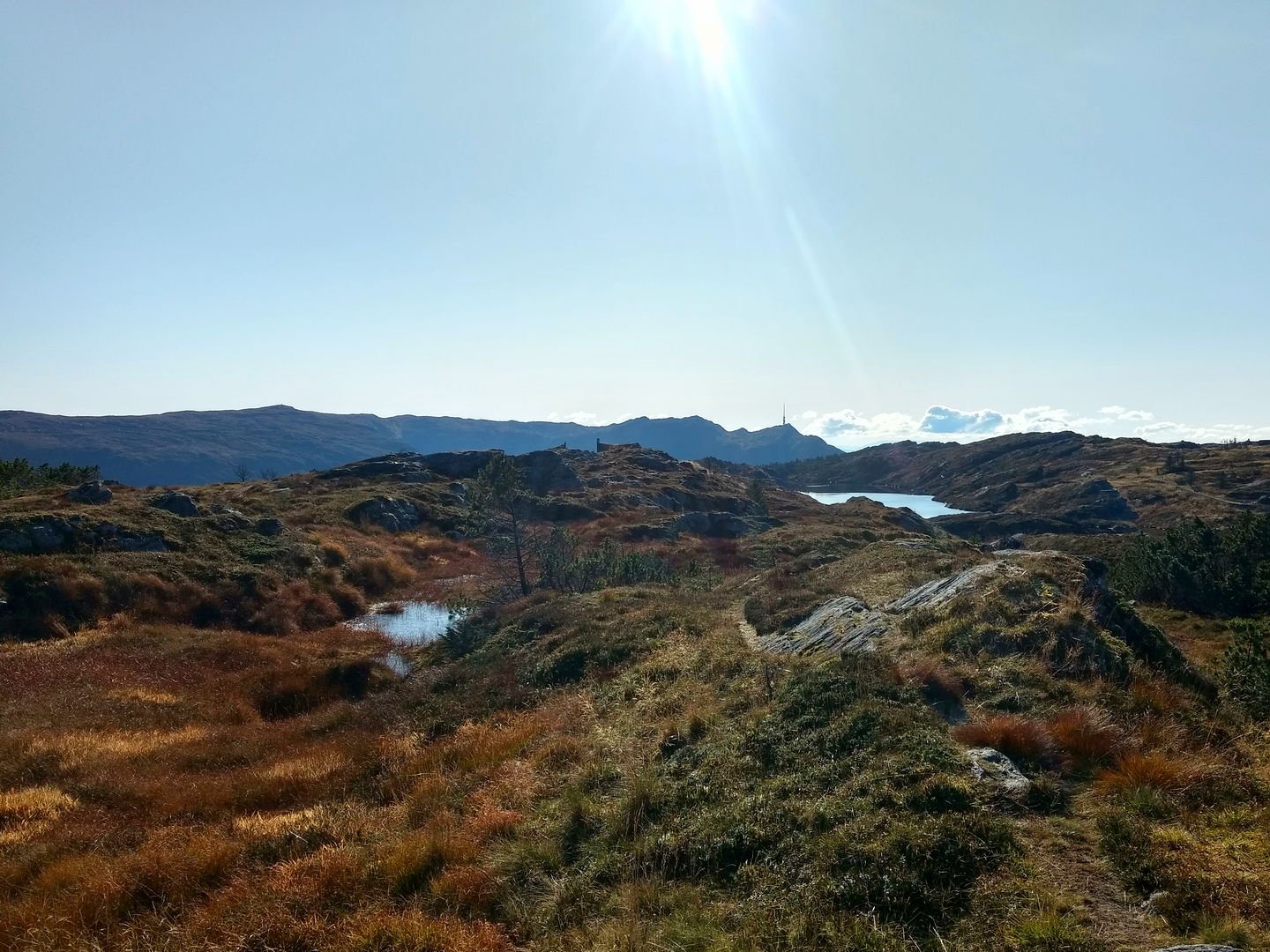 Høgjæren i sol. Broderen mener at han ikke helt har taket på langturer lengre. Han legger ikke så mange timer ned i turer at formen holder for en tur på stort mer en 11-12 kilometer – eller 2-3 timer. Alder har selvsagt ikke noe med dette å gjøre, men det er manglende trening. For egen del holder jeg fortsatt koken, men ikke så ofte som før i verden. Forrige uke ble det onsdagstur, frem og tilbake tilbake til Blåfjellenden fredag/lørdag og en skikkelig langtur på søndagen. Denne uka sløyfet jeg onsdagsturen, og kunne egentlig tenke meg en langtur på søndagen. Jobbing fra 6-7 tiden på lørdagskvelden til halv ett på natten, satte en effektiv stopper for langtur denne dagen. Det å subbe rundt i 6 timer tar på. Spørsmålet var derfor hvor vi skulle gå. Som alltid betyr været en del for turmålet. Det var søndagsvær. Sol og nesten blå himmel. Temperaturen ble også høyere enn vanlig i september, og da spesielt sent i september. En flott søndag med bra vær, helt fin til tur. Vi valgte å ta en gjentakelse av vår søndagstur i begynnelsen av måneden. Vi startet ved Tovdal, og satte kursen mot Synesvarden, for så å gå til Steinkjerringå, og returen gikk samme vei. En tur vi har tatt en del ganger. En mils vei, mesteparten i terreng, og selv om det ikke er noen spesielt bratte og lange bakker, blir det en del høydemeter av det. Vi brukte litt over to timer forrige gang, og satset på det samme denne dagen. Alt regnet de siste dagene hadde imidlertid gjort det bløtt i marka. Heldigvis har Hå kommune lagt ganglemmer over de verste sorpehullene. Det var mulig å komme tørrskodd frem med lave sko. Bakken opp til Kartakalven fikk pust og puls kjapt opp. Heldigvis roer det seg litt før det igjen blir en slak, men seig bakke opp til Synesvarden. Toppen her er på 359 meter over havet, og det er god sikt nesten hele horisonten rundt. Uheldigvis med vindmøller omtrent rundt det hele. Denne høstdagen var det god sikt, og vi kunne se langt til havs og langt innover heia. Fra Synesvarden var det lett å se ned til Steinkjerringå – 2-3 kilometer lengre ute mot havet. Det var folk, både på vei mot Synesvarden og videre. Dette var nok den søndagen vi har truffet flest andre på tur. Nede ved Steinkjerringå satte det en god del folk, men ingen med grillen og pølsene på gang... Vi gikk forholdsvis kjapt, og tok igjen en del andre turfolk. Likevel brukte vi lengre tid enn forrige gang, antakelig fordi vi måtte gå «rundt» en god del sorpe. På tilbakeveien opp mot Synesvarden, ble det stopp for å ta bilde. Solsiden mot sør var nærmest et fuglefjell, med folk som hadde pause. Jeg har sett flere på toppen, men det var under en friluftsgudstjeneste. Vi tok også en opptelling av biler på parkeringsplassen da vi kom ned. Det var mer enn vi hadde sett noen gang. En flott tur i bra turvær en søndag sent i september. Les hele artikkelen1 poeng