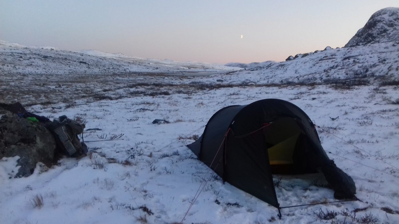 Da har jeg hatt første overnatting i Helsport Trolltind. Har lenge vurdert dette sammen med Hilleberg Niak og Unna. Det jeg prioriterte var lite pakkevolum, lett vekt og enkelt å sette opp. Unna ble for tungt og luftesystemet på Niak ville jeg ikke ha. Litt for mye villa gjennomtrekk etter min smak. Flere tester har også påpekt noe kondensproblemer.Trolltind var overraskende romslig og god takhøyde for mine 187 cm. Liggelengden litt snau, men holder for meg, men lengre bør en ikke være. Ved dårlig vær er det god plass til å koke vann til fryse tørret mat inne hvis været skulle bli dårlig. Dette teltet vil nok primært bli brukt i marka på grunn av lite fotavtrykk så det blir lettere å finne plass. Teltet har samme grunnkonstruksjon som Himalaya serien til Helsport så det tåler nok litt dårlig vær. I hope.1 poeng