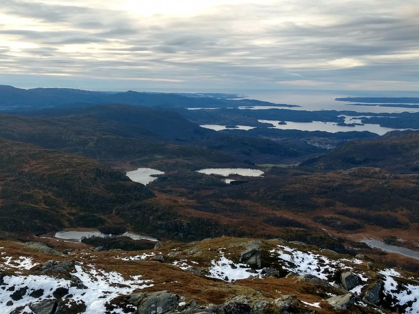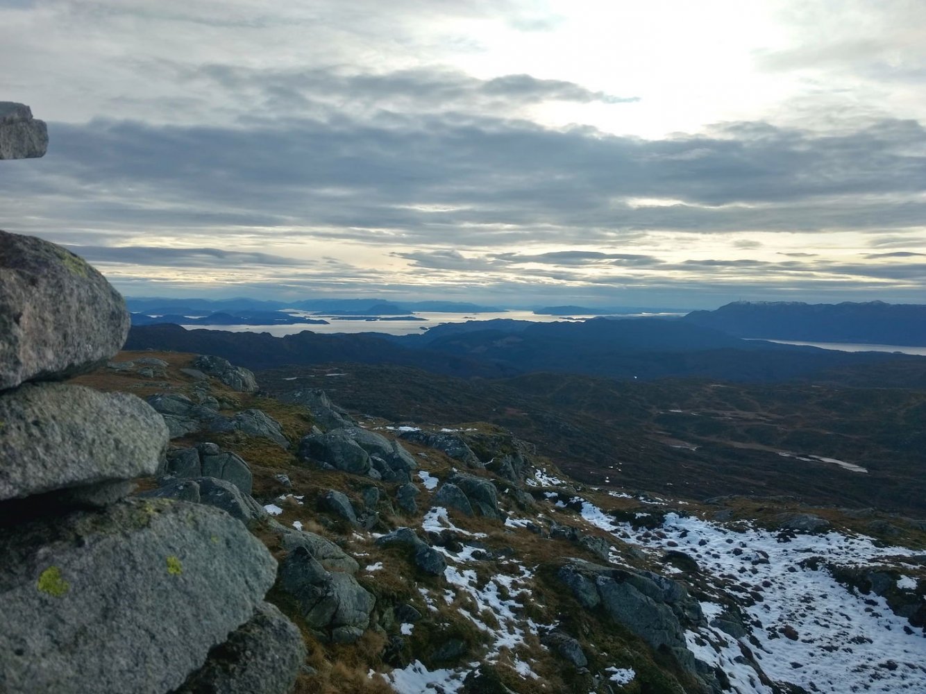 Sjette og siste (?) kommunetopp i boks gitt! Har aldri vært i Tysnes kommune før i dag, men nå har jeg tilbrakt 2 timer og 3 kvarter der Planla turen i går, da meldte yr.no masse sol, lite vind og ganske kjølig - i dag stemte vel egentlig bare det siste... Så det jeg heiv litt ekstra dunklær i sekken, som likevel snek seg så vidt under 5 kg inkl vann, niste, brodder, førstehjelp etc. Tok ferga fra Halhjem og var fremme ved Våge kl 12:05, og satset på at jeg skulle rekke en kommunetopp og være tilbake til fergeleiet innen 14:50-ferga. Det tok rundt et knapt kvarter å kjøre til Myrdal - der var det en romslig parkeringsplass (plass til ca 15 biler, sto 6 der da jeg kom), og stien opp til Tysnessåta (752 moh Wiki) starter rett bak ei grind. Hadde lest litt om en tur lagt ut på ut.no, og antok at jeg hadde knapt med tid - så jeg kjørte på såpass hardt oppover at det var null behov for dunklær for å holde varmen, til tross for stedvis kraftig kjølig vind. Møtte 3 personer på vei nedover. Ganske bratt, varm panne og god puls. 6 personer la i vei på turen ned i det jeg nærmet meg varden på toppen. Brukte nøyaktig 45 minutter opp, det gikk kjappere enn jeg hadde tenkt. Flott utsikt i alle retninger, både nordover mot blå himmelen over Bergen, sørøstover mot snødekte fjell på andre siden av Hardangerfjorden, sørover mot Rogaland og vestover mot vindturbinene over Fitjar. Jeg tok 10 minutter pause på toppen, var greit når jeg kunne være i le av varden. Så tok jeg fatt på nedturen, var litt spent på hvordan knærne ville kjennes. Det gikk imidlertid strålende, var nede ved bilen ila 35 minutter, uten antydning til knesmerter. Så der jeg trodde jeg ville måtte råkjøre for å rekke ferga, hadde jeg nå alt for god tid... Kjørte innom en bensinstasjon, fylte opp tanken og kjøpte en kopp kaffe - likevel ble det en halvtime å vente på ferga på fergeleiet. Skulle nok heller ha tatt på dunklær og satt ned tempoet, og nytt turen enda mer. Men det var nå uansett en fin tur, altså Da ble det en ny full "progress bar" i andreposten i denne tråden - nå gjenstår bare en Fjelltrimtur. Den er planlagt til romjulen, som en "ribbebrennertur" midt i all godmaten og sofalivet4 poeng