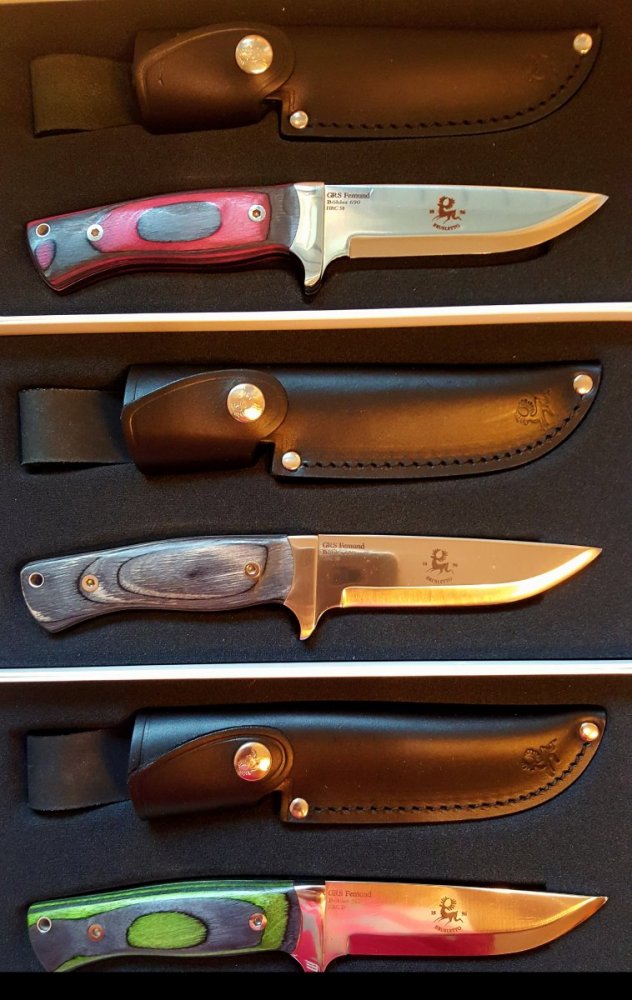 Mine 2 sorte er i hus, ikke noe ugjevnheter i eggen på den ene, denne har en ca 1/2 cm "blyantstrek" på skaftet som har lys farge (kanskje en microripe). Den andre har en liten ugjevnhet i eggen på ene siden, den er så liten at jeg ikke så den første gang, men med rett lys var det mulig å se den. Det er også en mikroskopisk glippe mellom tangen og ene skaftsiden på hjørnet bak (0.5cm lang). Altså er ikke en av skaftsidene 100% plan helt i ytterkanten. Alt i alt er dettte småpirk som kun er mulig å oppdage om man ser etter inperfeksjon med lupe. Altså ikke noe som gir grunnlag å klage på kvalitet på finish. Slirene (knappeslire) er også strøkne. Eneste jeg stusser på er at beltehempa er "på vrangen" slik at baksiden på skinnet vender ut. Den er bøyd utover slik at kanten er på baksiden av slira. For å få den rett måtte kanten vært inni slira, da fortrinnsvis så langt ned at kanten kom under treverket på skaftet (kanskje vanskelig å få sydd det på den måten). Jeg har en tidlig utgave av "Fremtidskniven" (uten serratering på bladet). Denne har en slags Safari slire hvor kanten er inni slira og skinnet er dermed "på retta". Synes på ingen måte at Brusletto har gjort seg bort på knivene mine. Dette er første gang jeg kjøper fra dem fra andre "steder" enn fysisk på fabbrikkutsalget på Geilo. Kjøpte min første kniv der når jeg var guttunge, så jeg har alltid syntes det er noe eget med knivene derfra.2 poeng
