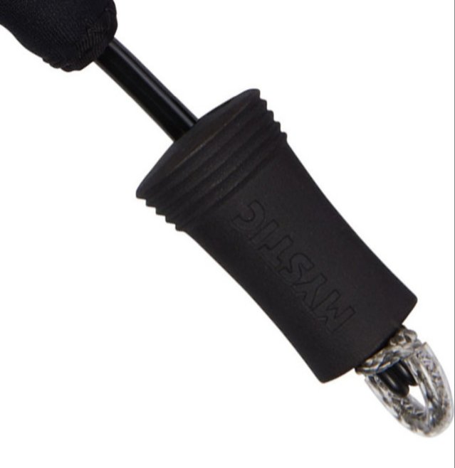 Jeg har ikke denne selv, men hvis den fungerer som de jeg kjenner til så skyver du håndtaket til høyre på bildet over innover leash'en, da vil løkka ytterst til høyre løse ut. Enkel å koble sammen til bruk etterpå. Disse tåler kraften av en kite som løfter brukeren til til værs, så jeg vil anta at de tåler trekket fra hunder også.1 poeng