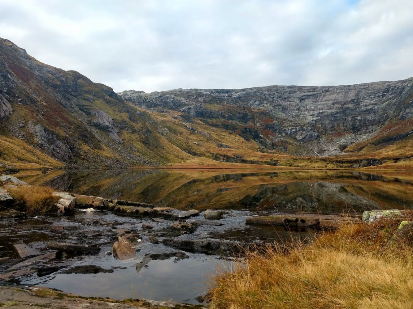 Kommunetopp! Da Osprey sendte meg en ny Atmos AG 65, fant jeg ut den måtte få en høvelig innvielsestur - selv om det nå bare ble en dagstur, da. Det ble tur til Tveitakvitingen (1299 moh), stedet der grensene for kommunene Samnanger, Fusa og Kvam møtes ved toppvarden - og de to førstnevnte har ingen høyere fjelltopper enn dette: Jeg parkerte ved Furedalen alpinsenter, og hadde vært lur nok til å slå ned baksetene og hive sykkelen bak i bilen - så de 3-3,5 km på grusvei til Mødal gikk en del kjappere enn om jeg skulle ha benyttet apostlenes hester. Da jeg planla turen i går, fant jeg ut at jeg ville gå via Kjel - det er vel ikke den vanlige traséen opp, men jeg syntes den så kul ut. Og det var rett - her er et bilde av utløpet fra Kjelvatnet, der jeg vil gå på venstre side og deretter opp skråningen der, mens neste bildet er tilbakeblikket: Siden yr ila natten hadde blitt mer pessimistisk og meldt tåke fra ettermiddagen, kjørte jeg på oppover, og var på toppen ca kvart på tolv - jeg tok ingen lang pause der, siden antallet lave skydotter syntes å øke etterhvert, og jeg liker ikke tåke til fjells. Men jeg tok meg tid til et eple, litt vann og litt avslapning da det kom noen solstråler. Og sekken funket veldig bra, gikk ned en størrelse til medium og tror det var lurt. Var helt greit å gå ned, skyene kom aldri ned i synet mitt - det var faktisk bare småpent å se på: Tok det jeg antar er standardløypa nedover, forbi Såta som ligger midt i bildet nedenfor: En flott tur på 19 km (hvorav 6-7 km på sykkel) og 1057 hm på fem og en halv time iflg Locus-appen Andreposten er oppdatert med forbedret status på kommunetopper. 3 måneder igjen av året, og jeg er nesten i mål... Mulig jeg gjorde denne utfordringen for enkel for meg selv? På den annen side har den jo uansett trigget mange fine turer1 poeng