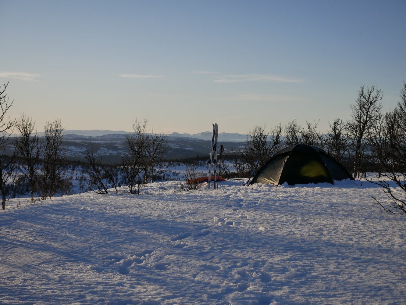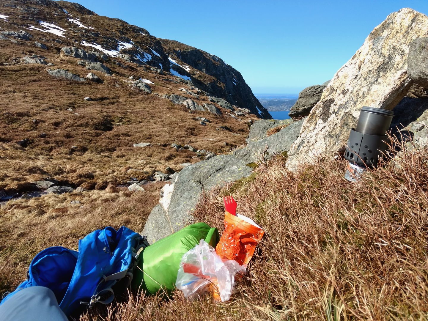 Et døgn under åpen himmel i Nordmarka under topp forhold. Syklet hjemmefra i går ettermiddag, en mil inn til Maridalen. Trasket innover et godt stykke, til en leirplass jeg hadde sett meg ut: frittliggende for å få morgensol. Det var meldt noe vind nordfra og muligens nattefrost, så jeg satte opp tarpen med ly mot nord. Middag i skumringen. Intens fuglesang som ga seg da mørket falt på. Temperaturen falt under null i titiden, men siden vinden hadde løyet, la jeg meg under åpen himmel. Himmelen var stjerneklar, kikket på stjernene før jeg sluknet. Våknet til deilig morgensol, som varmet meg og smeltet det lille rimlaget på soveposen. Rolig frokost, så sløving i leiren, det ble etterhvert veldig godt og varmt. Spiste tidlig middag før jeg pakket sammen og dro hjem.1 poeng