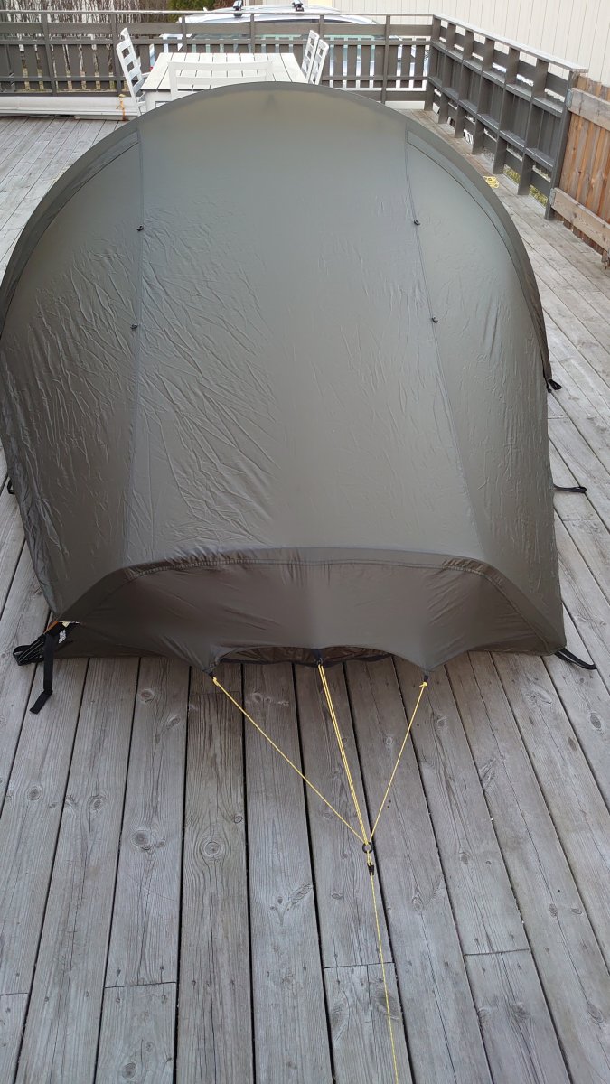Veldig dårlig høyde i hode og fotende på denne + den bruker to staver kontra en som jeg vil ha med som makes (evt. ren tre-ledds karbon stag - Oslo los stil) Standarden er satt med ZPACKS Altaplex men det er jo altfor dyrt å importere hit til Norge.1 poeng