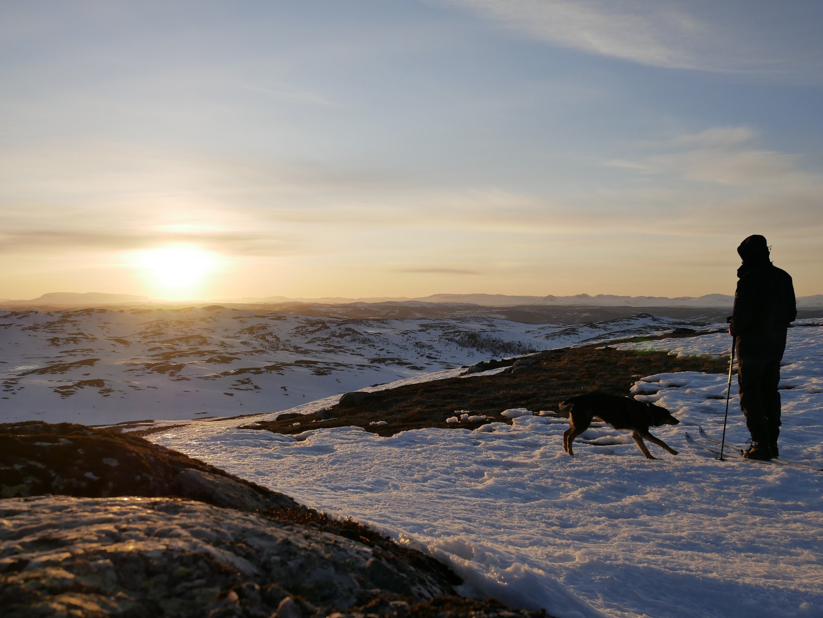 Sist onsdag fikk sjekking av værmeldingen konsekvenser. Flere dager med knallvær framover, da fantes det bare ett alternativ: pakke pulken og stikke til fjells. Å holde seg i hjemmekommunen plager ikke meg, som jeg skal prøve å vise snart. Det er snakk om Nesbyen og sine fjellområder. Det var skikkelig isete men det gir jo bare fine fotomotiver. Jeg hadde langfeller under skia hele turen, så jeg brydde meg ikke om føret. I tillegg går det mye opp og ned, hvorav ned er mest skummelt etter min mening. Mange plasser var det allerede bart. Nesfjellet er ikke stort, det går fint an å krysse fjellet på en dag. Men vi var på rusletur og ikke på rømmen. Det er fortsatt mange plasser som jeg ikke har utforsket. Denne gangen gikk vi mot Fekjafjell. Nydelig område og for en utsikt fra campen vår. Gaustatoppen til venstre, så Hallingskarvet, videre til Reineskarvet og Hemsedalsfjell. P1050532.MP4 Med "vi" mener jeg meg og bikkja mi. Hun er ikke vant til vinterturer, men hun har jervenhiet og en gammel sovepose i tillegg, så det gikk helt fint. Uansett var posen min mer stas. Til vintertur bruker jeg et Hilleberg Staika. Jeg er veldig glad i teltet fordi man ligger parallelt med inngangen, slik at en kan nyte utsikten maksimalt. Om kvelden prøvde jeg litt på solnedgangsstemmningsbilder. Kjøpte nettopp en kamera som kan alt, men jeg har satt den på "A" siden jeg ikke ser en dritt på skjermen fordi det er altfor lyst pga. sol og snø. Vi traff selvfølgelig lite folk på turen, bare noen hyggelige Nesninger som nyta fjellet som oss. På en måte er det forståelig at hyttefolka får hetta når dem må sitte hjemme nå, men de har valgt å bo i byen og jeg har valgt å bo på bygda. Med alle fordeler og ulemper. Siste campen var på vestsiden av fjellet med utsikt over Tunhovd- og Pålsbufjorden. Jeg tror vi slo leir ganske tidlig på ettermiddagen (har ikke med klokke på tur). Så det var allverdens tid igjen til å nyte dagen. En kort stund tenkte jeg at det hadde vært greit med en lydbok el. men da hadde jeg gått glipp av nettopp stillheten. Rett før vi reiste blusset det opp snøskuterdiskusjonen igjen her i lokalavisa. Det var faktisk mange spor etter skuter på fjellet og det er ikke sikkert hvem som driver å kjøre i det område her. Men om kvelden var det noen som var ut og kjøre. Uten pause i ca. en times tid. Jeg kjente at det begynte å boble. Måtte snart ta noen tabletter. Hvis du skal nyte naturen, så gjør det på naturen sine premisser og naturen har gitt oss to bein! Da lyden forsvant rett før solnedgangen begynte kaklingen av rypene. Så kom det bjeffing av rev i tillegg og når sola gikk ned hørte vi også ulvene fra Langedrag. For en fantastisk konsert! Hunden hadde lagt hodet sitt på beina mine og vi bare så utover fjellet og hørte på lydene i lang tid.11 poeng