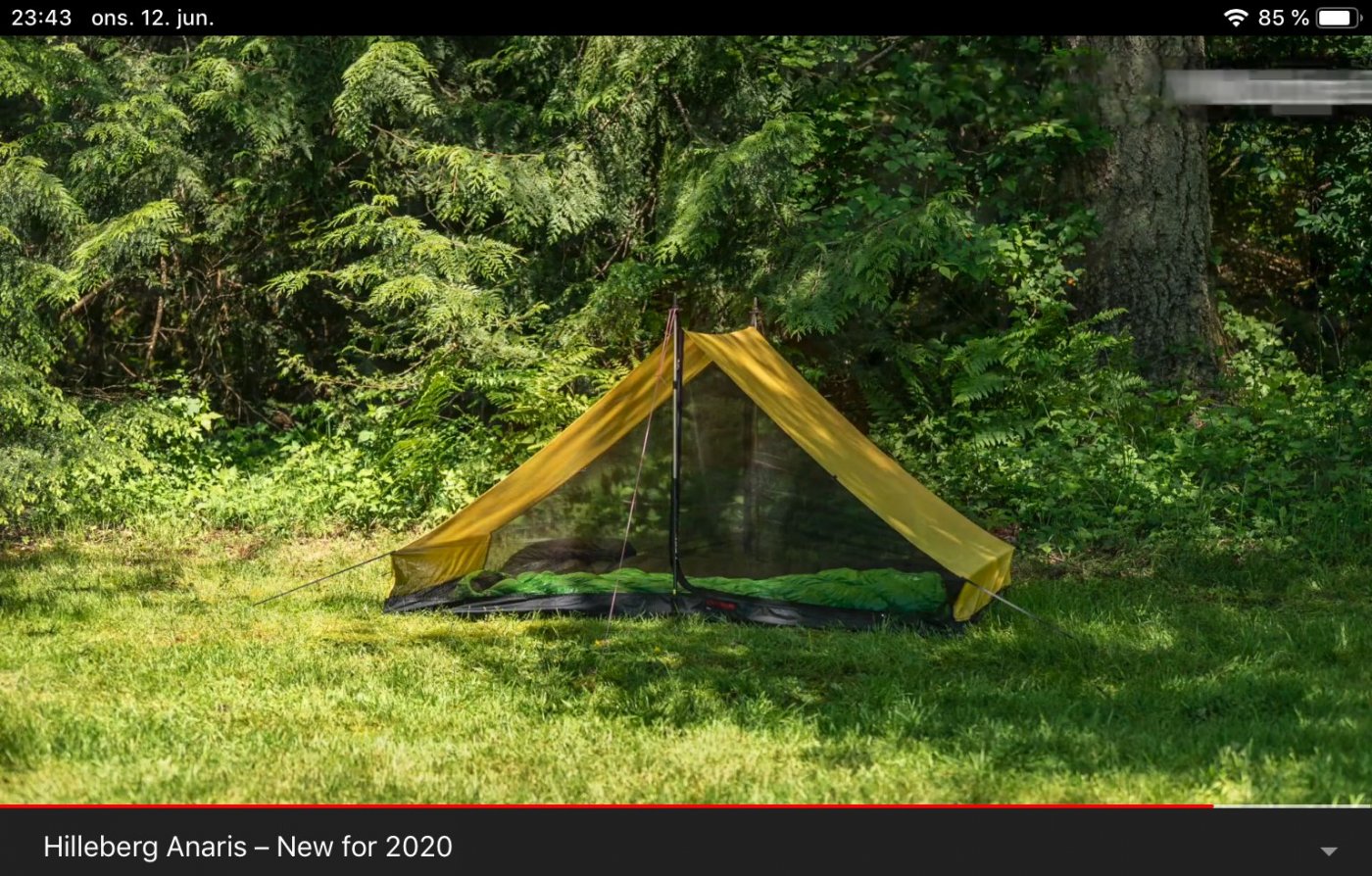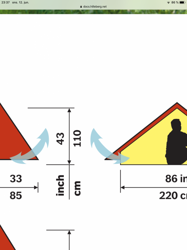 Den korte endeveggen som ser 25 cm høy ut, gjør at reel liggelengde blir betydelig kortere ved mitt «krav» om 40 cm fri høyde - da er vi vel fort ned 170-180 i praktisk lengde. Men mye plugger også på dette. Store rette flater er jeg ikke spesielt fan av, veldig utsatt når det blåser. Men veldig artig at Hilleberg lager et gåstav telt igjen, de har de ikke gjort siden Rajd. Legger ved et par bilder av Rajd som jeg hadde.1 poeng