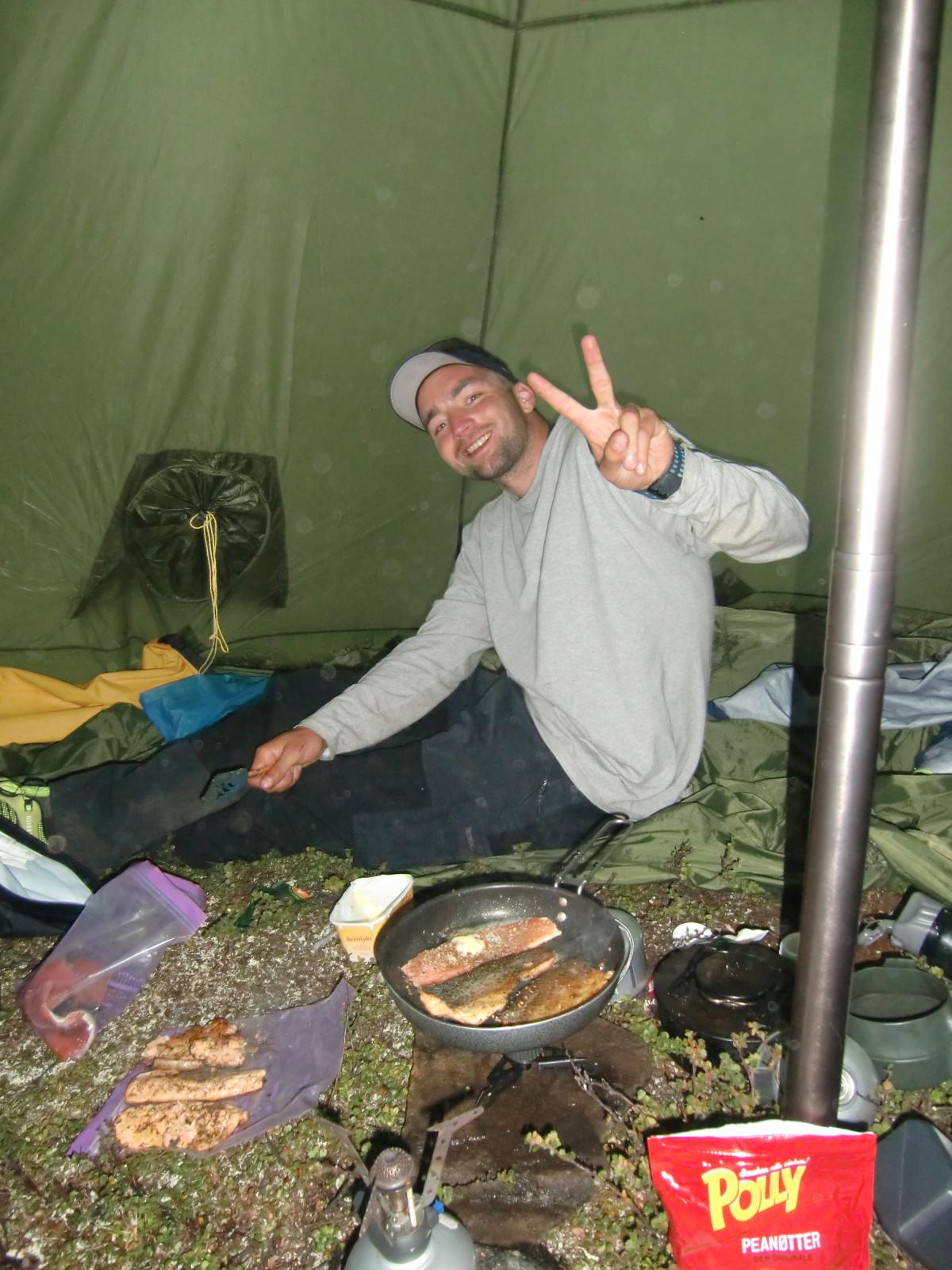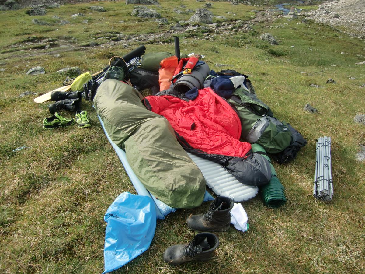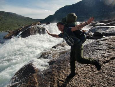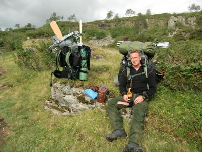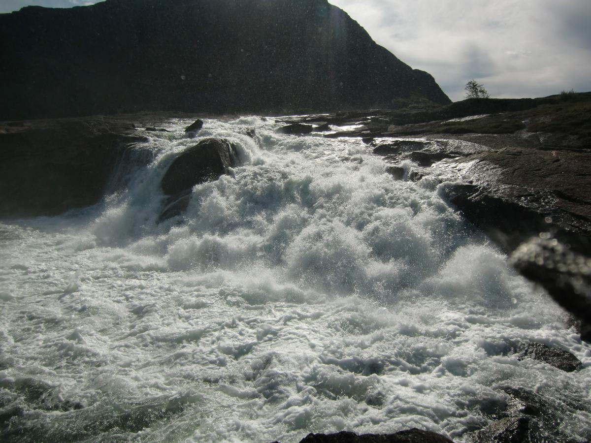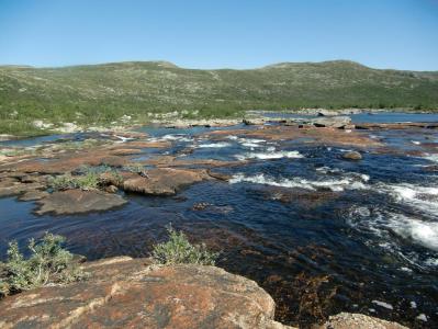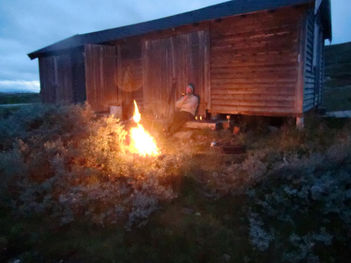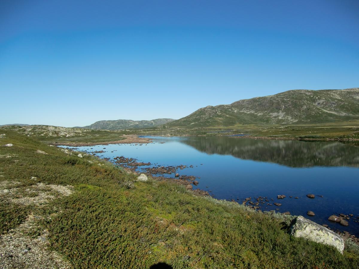 Turen startet med en biltur til Møsvatn hvor vi forlot bilen og ventet på bussen som skulle frakte oss til Røldal via Haukeli. Herifra kjørte Røldal Taxi oss inn Valldalen og til startpunktet for turen. Vi var startklare og ferdig pakket rundt 17:00. Vi har ikke spart på noe siden vi skal padle mesteparten av turen og dette gjorde at startvekten på sekkene ble anslått til rundt 45+ kg. Vekten fikk vi smertelig erfare etter 20 meter i første motbakke da melkesyra spruta ut i iskald lår muskulatur og undertegnede lurte på om det var mulig å bære dette opp i en vending, men Ole var overbevist og labba avgårde i front. Motvillig fulgte jeg etter. Etter mange pustepauser, en matpause, hvilepauser, drikkepauser og stopp måtte vi konstatere at det ble mørkt og at vi enda hadde langt igjen. Totaldistansen var ca. 1 mil og 600 høydemeter og vi hadde brukt 6 timer. Det var BLYTUNGT. Men tanken på å våkne neste dag å kunne sette seg rett i kanoen ble for fristende og vi gampet videre. Det føltes ut som vi aldri skulle komme frem, bare en ås til, bare en høyde til, bare en ryggkam til. Det var umulig å orientere seg i mørket for utenom stien som vi så i lyset fra hodelykta. Til slutt så Ole en liten flate med mulighet for å legge soveposen og brøt ut: «HER skal vi sove, NÅ!» Klokka var når 0100 og vi hadde gått i 7 timer, det var bare å kapitulere…. Neste morgen oppdaget vi at vi hadde 400-500 meter med slak nedoverbakke å gå før vi var ved målsetningen for gårsdagen. Det var en enorm lettelse og vi var begge enige om at det var den tyngste fysiske anstrengelsen vi noen gang hadde gjort. Sola skinte og egg og bacon ble frest i panna på gassbrenneren og nå kunne turen for alvor starte. Vi prøvde fiskelykken i Holmavatn så best det var, samt de små vanna før du kommer til Kvennsjøen, men ikke så mye som et livstegn. Vi hadde vel ikke helt trua da tidligere rapporter tilsa at det var lite eller ingen fisk i disse vannene. Første dag oppe på vidda ble en fantastisk padletur ned til neste planlagte leirplass som lå mellom Kvennsjøen og Litlosvatn, også kalt Fiskos. Fiskekonkurranse er en naturlig del av våre turer og den hadde vart siden første padletak. Veddmålet var at den som fikk først fisk over 0,5 kg slapp å betale burgeren på vei hjem. Rett før utoset fra Litlosvatnet hogg det til i stanga til Ole og turens første fiske var et faktum, men de 0,4 kiloene som den ble veid inn til holdt ikke til å vinne konkuranssen. I all entusiasmen og gleden over å endelig være på tur etter et halvt års nedtelling av dager gjorde at vi glemte å ta bilder de 2-3 første dagene. Dagen etterpå bestemte vi oss for å gå til Litlos turisthytte å kjøpe en øl også ta en fiskerunde på nordsia av hytta. Vi fikk mye fisk, men alt var under den berømte halvkiloen. Jeg fikk vel bortimot 10 stykker denne dagen og er man ute etter storfisk kan jeg si at Skadvatn, Perapytten og Ambjørgsvatnet ikke er stedet man vil dra. Men har du med unger og målet er å få fisk vil det være perfekt med kobber og rødt her. Vi fikk også våre eneste 3 timer med regn denne dagen. Etter å ha pakket sammen leiren ved Fiskos tok vi årene fatt nedover Kvennsjøen. Vi var heldig med vær og vind så det gikk fort og enkelt. Nesten for fort for markdraget og rapala’en som hang på slep bak oss i vannskorpa. Det var ikke så mye som et napp, nordavinden og sola fikk skylda for det, for det skulle i hvert fall ikke stå på utstyret. Vi hadde jo rana både Gmax, XXL og Ebay i forkant av turen. Mellom Kvennsjøen og Krokavatn er det mange ruter å velge mellom, men vi fant vår vei gjennom mylderet av bekker. Akkurat denne passasjen ble et av padlehøydepunktene på turen. Sola skinte og naturen viste seg fra sin beste side der vi gled ned gjennom de brede og grunne bekkene mens vi bare styrte doningen. Det gikk som en lek. Siste biten ned mot Øvre Krokavatn måtte vi bære, men aller først var det lunsj. Denne besto av liten delikatesse med knekkebrød, selvfanget fjellørret, rømme og en skive bacon på toppen. Ikke engang Hellstrøm kunne fått det til å smake bedre. Siden vi var ivrige fiskere hadde vaderene blitt med og disse ble flittig brukt på turen. Ikke til fluefiske, men rett og slett til å vade kanoen ned de mindre strykene istedenfor å bære den. Vi følte dette var lettere i de litt mindre bærepassasjene. Fordelen var at man slapp å tømme kanoen hver gang. Dagen endte opp nede ved Hansbu hvor det er et naust man kan overnatte i mot en liten betalingsordning beskrevet i en bok. Men det var så bedritent og skittent at vi valgte å ligge ute lavvoen i stede. Men etter litt rekognisering rundt naustet fant vi vedrester nok til et bål, og det ble snart god stemning med både øl og vin foran bålet. Dette skulle bli den lengste bæreetappen på til sammen ca 3.5 km. Klok av skade valgte vi å gå 2 turer, først sekkene også kanoen. Polarbrød med diverse pålegg ble fortært til lunsj og padlingen kunne igjen starte over Sandvatn. Kanskje tidenes mest langgrunne vann, så fiskeredskapen kunne bare bli værende i boksen, men på enden av vannet så Ole sitt snitt til å fiske og kastet ut supersluken over alle. Og plutselig hogger det til i stanga og det er ikke tvil, fiskekonkurransen er tapt. Fisken veies inn til 0,7 kg og en overlegen vinner så langt. Selvtilliten min har nå fått seg en real knekk og vi fleiper litt på kanten om nord-norsk haill og fiskelykke. Jeg kjenner at det sårer litt, men i morgen er det min tur det kan du banne på. I enden av vannet finner man Breidvadhølen og her ligger en fantastisk fin leirplass og ikke nok med det, men det så perfekt ut for å teste fluestanga i kulpene. Fangst ble det, men størrelsen trenger vi ikke snakke om. Det ble nok en bæreetappe først på dagen og denne gangen ned til Gunleiksbuvatnet. Vi valgte å gå to turer denne dagen også. Været var igjen i det fantastiske hjørnet så t-sk