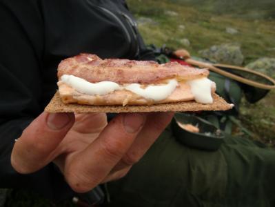 Dag 1: Planlagt: Valldalsvannet – Holmavatnet, 9 timer Reelt : Valldalsvannet – Holmavatnet, 6,5 timer Avmarsj fra parkeringsplassen ved Valldalsvannet, (760 moh), klokken 15:00. Fulgte stien opp til Middalsbu. Dette er en liten omvei, men siden Olaf er ansatt i DNT, så måtte bare denne bli med. En kjapp drikkepause her, før vi dro oss vestover retning Vivassvannet. En anbefaling til andre som skal gå turen, er å holde dalstrøket hele veien, ikke gå innom Middalsbu. Dette fordi den bratte lia som måtte forseres etter Middalsbu, var kanskje den tyngste etappen på hele turen. Første rast etter Middalsbu, var ved steinbuene ved Vivassvatnet, 930 moh. Fremme her klokken 17:00, og her tok vi 30 minutters pause. Fantastisk flotte steinhytter, og her møtte vi også 3 stykk på vei ned etter dagstur til Litlos. Her tok vi en matbit samt litt preventiv taping av føtter. Fortsatte stien videre opp Vivassdalen til vi så Brokafossen. Begynte å bli tungt, slik at det tok sin tid å faktisk komme bort til selve fossen. Underveis her hadde vi kun små pauser for å hvile ryggene våre, før vi tok en lengre pause ikke langt sør for hyttene mot Tyristeinen. Denne pausen ble uansett ikke lang, da vi ble ivrige grunnet mørkets frembrudd. Vi kjørte på imot og forbi Tyristeinen og fikk endelig øye på Holmavatnet (1204moh) klokken 20:50. Etter noen minutter med diskusjon på teltplass, så endte vi opp på S/V-enden av vannet, ved en stor iøynefallende stein. Erfaringer dag 1: Grunnet tunge sekker, så ble «geologistudium» innført relativt tidlig på turen. Dette innebar at vi bøyde oss frem 90%, avlastet sekk fra hofte og skuldre, og lot sekken hvile kun på ryggen. I en slik posisjon, så ble vi kikkende ned i bakken, og derav «geologistudium». Dette fungerte veldig godt på en etappe som både er lang og hvor det skal forseres rundt 500 høydemeter. Da ble det korte effektive pauser, kontra det å hive sekk av og på ofte. Sekkene våre på denne turen ble veid inn til 45 kilo, noe som vi var enige om var i meste laget. (Bilde: Olaf peker på hvor turen startet, Valldalsvatnet) (Bilde: Vi har passert Tyristein og kan endelig se Holmavatnet 1204 moh) (Bilde: Olaf kjenner på følelsen av å kunne fly) (Bilde: Ronny særdeles fornøyd med å være fremme ved Holamavtnet) (Bilde: Forvarming av primus får tankene til å fly....det er fint det !) Dag 2: Etappe: Holmavatn og Kvennsjøen En senere start på denne dagen enn vi hadde tenkt. Tok oss et glass rødvin som oppstart på dagen, kun fordi vi kunne . Denne morgenen var det et relativt utrivelig vær ved Holmavatnet, og når vi var ute på morgenen for å sette sammen kano, så ble det frosne fingertupper. Vi rev leir og var i kanoen på Holmavatnet klokken 11:30 klar for avmarsj. Været roet seg noe underveis i padlingen, men det var grått, tåkete og det regnet kontinuerlig. Uansett en fantastisk opplevelse så høyt oppe, snøen lå godt i sidene på vannet, og det ble mye snakk oss imellom om hvor heldige vi var som fikk til dette. Padlingen på Holmavatnet tok oss 1 time. I enden var det klart for litt bæring, og her ble det litt organisering. Siden vi ikke hadde testet ut bæremåter med kano på forhånd, ble det rett og slett «learning by doing». Vi prøvde oss på å hive sekkene på ryggen, og kano oppslått oppå skuldre/hodet. Dette var en blytung opplevelse, og denne bæremåten ble vi enige om ikke skulle gjentas. Bar kano ned til en liten koie ved vann (moh 1189), og her padlet vi frem til strykene ned mot Kvennsjøen. Ny bæreetappe ned til Kvennsjøen, sekker på rygg og kano i mellom oss. En kjapp matbit i evjen sør for Kvennsjøen. Planla en lengre lunsj her, men regn og vind gjorde at vi valgte å fortsette. Starten på Kvennsjøen var ekkel. Veldig grunt, og det blåste godt. Kvennsjøen er veldig stor, og en skal være forsiktig her. Det var god sjøgang, og vi valgte å padle langs land ved sørsiden. Mye grunnet at vinden var litt roligere her, men også med tanke på eventuell velt. Nå vi kom på spissen av hvor sjøen kveiler seg inn mot Raudåna, så valgte vi å krysse rett over mot den største holmen som ligger ved sørlig bredde. Kraftig vind gjorde at denne turen var krevende på mange måter. Vi merket at det var nødvendig med kontinuerlig padling, hvis ikke tok vinden kanoen på tvers av bølgene. Vi kom oss likevel greit over, og fortsatte mot utløpet av sjøen. Etablerte leir i området Kvennsjø øst klokken 18:00, og da lå «indrefileten» klar til å gripes fatt i på morgenen etter. Mange kurante teltplasser på sørsiden av Kvenno her. En tidlig kveld ble avrundet med litt øl, lapskaus og god varme i teltet. Erfaringer dag 2: Poncho: Kan være kurant å ha med som padleutstyr. Ikke bare som ekstra beskyttelse mot regnet, men også som en god hjelp mot vind Bæring av kano: vi vet hva vi foretrekker nå, men gjerne tørrtren på dette før en eventuell tur, og da med sekker på. Vi fikk virkelig erfare viktigheten av kommunikasjon mellom padlere i en båt, og hvor liten påvirkningskraft den som sitter foran har i kraftig vind. ( Bilder: Because we can ) ( Bilder: Kano slås opp i friskt vær, to svært fornøyde karer som endelig var kommet seg ut på tur. ) (Bilde: Snøen ligger noen steder langs Holmavatnet) (Bilde: Vi har kommet i le ved enden av Kvennsjøen og er klar for å slå leir ) (Bilde: Olaf ved utløpet av Kvennsjøen. Her starter det som mange har kalt for indrefileten, vi gleder oss til å padle her i morgen) (Bilde: kveldens nøye tilmålte belønning ) Dag 3: Etappe Kvennsjø – området Hansbu Vår første utforkjøring sto for tur, og det som omtales som «indrefileten på Hardangervidda». Nydelig padle-etappe i starten, i fantastisk natur. Hær-menn som vi er, så både gledet og gruet vi oss til strykene, men det gikk veldig bra. Så spørs det om vi ble noe overmodig, for vi hev oss på det siste stryket i «indrefileten», og her kunne det gått galt