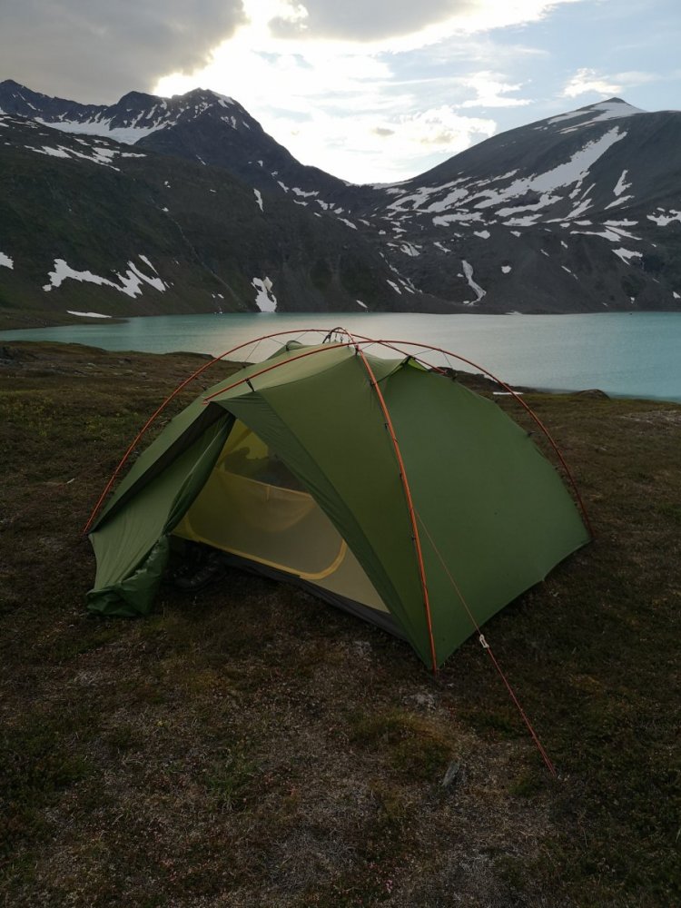 Når det kommer til telt og vekt så er det ingen fasit. Noen vil si at alt over en kg er for tungt mens andre drar med seg ganske mange kg telt på tur. Vekta som er akseptabel er avhengig av hvor mye du skal forflytte deg. Jeg pleier å dra med meg et telt på 3 kg selv på lange aleneturer, har et telt som er lettere også. Valget på å dra med meg dette teltet ligger i at jeg skal ha en plass som jeg kan boltre meg litt på om været blir håpløst. Sånn som juli var i sommer var jeg glad for at jeg hadde dette og ikke det lettere teltet med meg. Jeg brukte Helsport reinsfjell 2pro, når det er sagt hadde nok superlight teltet gjort så og si like god jobb. Men grunnen til at jeg valgte pro og ikke superlight var bunnduken. Da slipper jeg og være så kritisk til hvor jeg setter det opp, kunne selvfølgelig valgt å kjøpe footprint til superlighten men da var jo vekta nesten lik pro modellen. Det er tyngre å bære tungt telt, skal ikke si imot det på noe vis, men samtidig syns jeg det er litt godt og vite at jeg har et bomberom når været blir dårlig1 poeng
