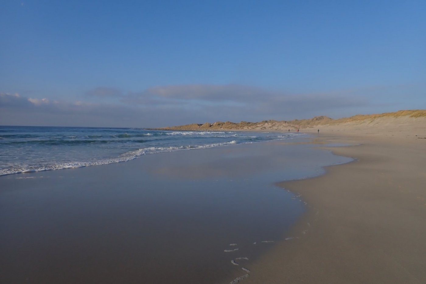 Søndag var det strålende vær. Blå himmel, lav sol, nesten vindstille og fortsatt ganske varmer – for årstiden. I slikt vær ville «alle» på tur. Bestyrerinnen var en av disse «alle», og broderen, og Bjørg. Vi ble ganske fort enige om at denne dagen ville det passe med en tur langs sjøkanten. Muligens ville det være lurt å dra til Friluftshuset på Orre. Der er det i hvert fall en stor parkeringsplass. Vi avtalte å treffes, og vi kjørte hver vår bil. Smittesituasjonen er usikker, selv i Klepp. Nedover mot Orre kjørte vi forbi Bore og Reve. Begge plasser var det fullt opp av bil og folk. Denne søndagen ville det bli folksomt på alle turstier. Heldigvis er parkeringsplassen ved Friluftshuset, dimensjonert for mye bil. Det var ikke fullt da vi kom, men det rant inn med biler. Vi valgte å gå mot Orre-elva først. En god kilometer lengre mot sør. Stien går inne i landet, mellom sand-dyner dekket av marehalm og annet. Et litt spesielt landskap. Ved munningen av Orre-elva tok vi fatt på sandstranden. Orresanden er «bare» 2 1/2 kilometer lang. Etter et lite mellomspill er det en god kilometer videre, før Jærens rev. Og så ut på ny strand. Den også godt over et par kilometer. I alt ble det nesten en mil på sand. Nå kan sandstranden være virkelig god å gå på. Hard, omtrent som asfalt, og selvsagt padde flatt. Denne gangen var det ikke så godt underlag, men for broderen som fortsatt trener opp foten var det helt «riktig». Det ble en kjekk tur. Vi har jo alle gått en del turer sammen, og tempo blir derfor det rette alt fra start. Det er ikke alle av oss som er klar for et høyt tempo. Broderen sliter med foten, og jentene er ikke like «galne» som meg når det gjelder trening. Bestyrerinnen har etter hvert lagt opp til et temmelig travelt program, med tur omtrent hver dag. En av dagene i uka er avsatt til nettopp en tur til Orre-elva fra parkeringsplassen, men da sammen med en gjeng fra «Frivillighetssentralen» i Klepp. Med så mange biler på parkeringsplassen var vi langt fra alene på tur på Orrestranden. Det var mye folk. Voksne og unger. For noen av ungene var badesesongen ikke slutt. Nå var det så pass varmt i sola at jeg valgte å gå i bare ullblusen, men det var langt fra så varmt at jeg vurderte å bade. Ungene hoppet i vannet som om det holdt sommertemperatur. De så ut som om de hadde det aldeles storartet. Men antakelig kaldt.... Etter en stund ville Bestyrerinnen og Bjørg ha en kaffe-stopp. Vi, broderen og jeg, fortsatte videre mot Reve og Revestranden. I full fart. Det ble anledning til å ta avgårde i et litt høyere tempo enn når vi går sammen. Andre på stranden kikket litt rart på oss som for over strandflaten i høyt tempo. Med sekk og for min del i bare «sommertøy». Broderen holdt tempo oppe til vi kom et stykke ut på Revestranden. Der snudde vi, og vandret nok så glade og fornøyd tilbake til Bestyrerinnen og Bjørg, for en litt «roligere» tur mot bilene. En mil omtrent for vår del. En grei søndagstur i november. I sol.1 poeng