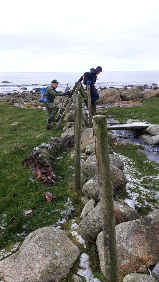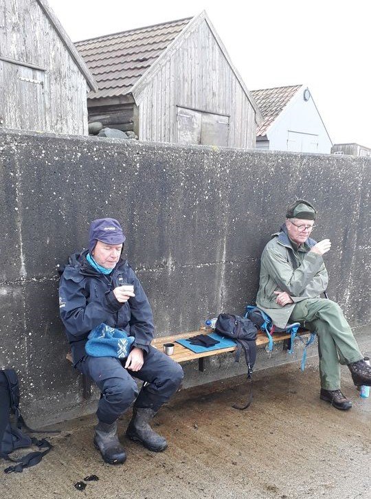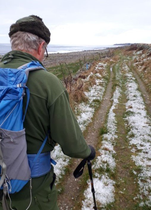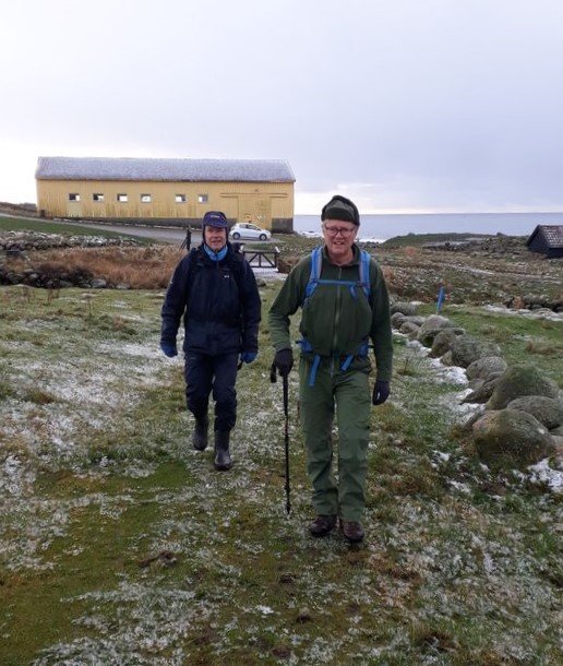 Med Sigbjørn og Anne Lise på fredagstur. Det er ikke alltid tingene går slik de burde. Broderen sitter hjemme med foten i været. Bilen på verksted, og Bestyrerinnen Må gjøre noe hjemme. Antakelig noe jeg burde være med på, men..... De så mørkt ut for tur denne fredagen. Værmeldingen var skikkelig optimistisk hele uka. Det var snakk om sol og stille. Selv om det ble visket om litt lavere temperaturer. Jeg var liksom klar for tur, men hvordan, og ikke minst hvor. Fredag morgen våknet jeg til en overraskelse. Naturen vartet opp med temperatur ned mot null, og på torsdag hadde det snødd og det lå fortsatt hvite flekker i hagen. Nå var det sol fra morgenen av, og jeg ble ikke mindre oppsatt på tur. Værmeldingen for resten av dagen var ikke like bra, men brukbart for tur. Uten bil var alternativet en tur rundt Gruda, Den kjappe turen i nærområdet. Redningen kom i form av en telefon fra Sigbjørn, min svoger, som også liker å gå tur. Sigbjørn, sammen med Anne Lise kunne godt tenke seg følge på fredagsturen. Bestyrerinnen var fortsatt opptatt hjemme, så det vill bare bli oss tre denne gangen. Med snø og muligheter for is, var det ikke lurt med en tur i høyden. Sigbjørn mente vi kunne forsøke oss på Høgjæren, men jeg mente det ville være glatt og vanskelig å komme fram. Alternativet var en tur i sjøkanten. Anne Lise og Sigbjørn har noen ganger gått fra Varhaug Gamle Kirke og til Obrestad havn. En tur på 14 flate og greie kilometer. Jeg pleier å bruke turen fra Hå til Varhaug som vintertur, og denne dagen var det vinter. Vi tok mot Varhaug, og det var en bil utenom oss på parkeringsplassen. Det var ingen spor av andre folk i stien på siden av kirkegården. Forklaringen var antakelig sorpehullet på andre siden av gjerdeklyveren rett etter kirkegården. For å komme fram måtte vi tråkke ut i så søla skvatt. Anne Lise og Sigbjørn hadde på «vannstøvler», og kom greit «gjennom» sorpa. Jeg tråkket ut i med mine fjellsko, og søla sto omtrent til kanten på skoa. Jeg forsøkte selvsagt å ta bilde av vassingen over sorpehavet. Tomt for strøm. Anne Lise reddet dagen. Hun brukte telefonen. Alle bildene er tatt av Anne Lise. I vindstille overskyet vær burde det egentlig være en svært grei tur nordover mot Obrestad. Isen og snøen som lå i stien laget ikke problemer, men det var skikkelig sleipt. Vi måtte gå forsiktig. Det var is på alle gjerdeklyvere, og det er en del på denne turen. Vi tok det med ro over disse. Vi fikk en flott tur med nordsjøen som følge. Det var store bølger selv om det ikke var vind. Ute i sjøen var det blå himmel, men skyene over oss trakk aldri vekk. Vi tok pausen ved havna på Obrestad før vi satte kursen mot sør og bilen. Det blir jo litt gjentakelse av turen mot nord, men denne gangen ble vi overrasket av et rådyr som hoppet over veien og for bortover jordet. Det er første gang jeg ser rådyr her nede ved sjøen. Selv om mye av isen og snøen var smeltet på veien tilbake, så var sorpa fortsatt sleip og gjorde det glatt. Anne Lise «fusket» ved sorpehullet. Hun tok over jordet på innsiden og slapp å vasse mot gjerdeklyveren. Heldigvis var det en pytt ved parkeringsplassen, slik ar jeg fikk vasket støvlene. En helt grei tur i godt selskap.1 poeng