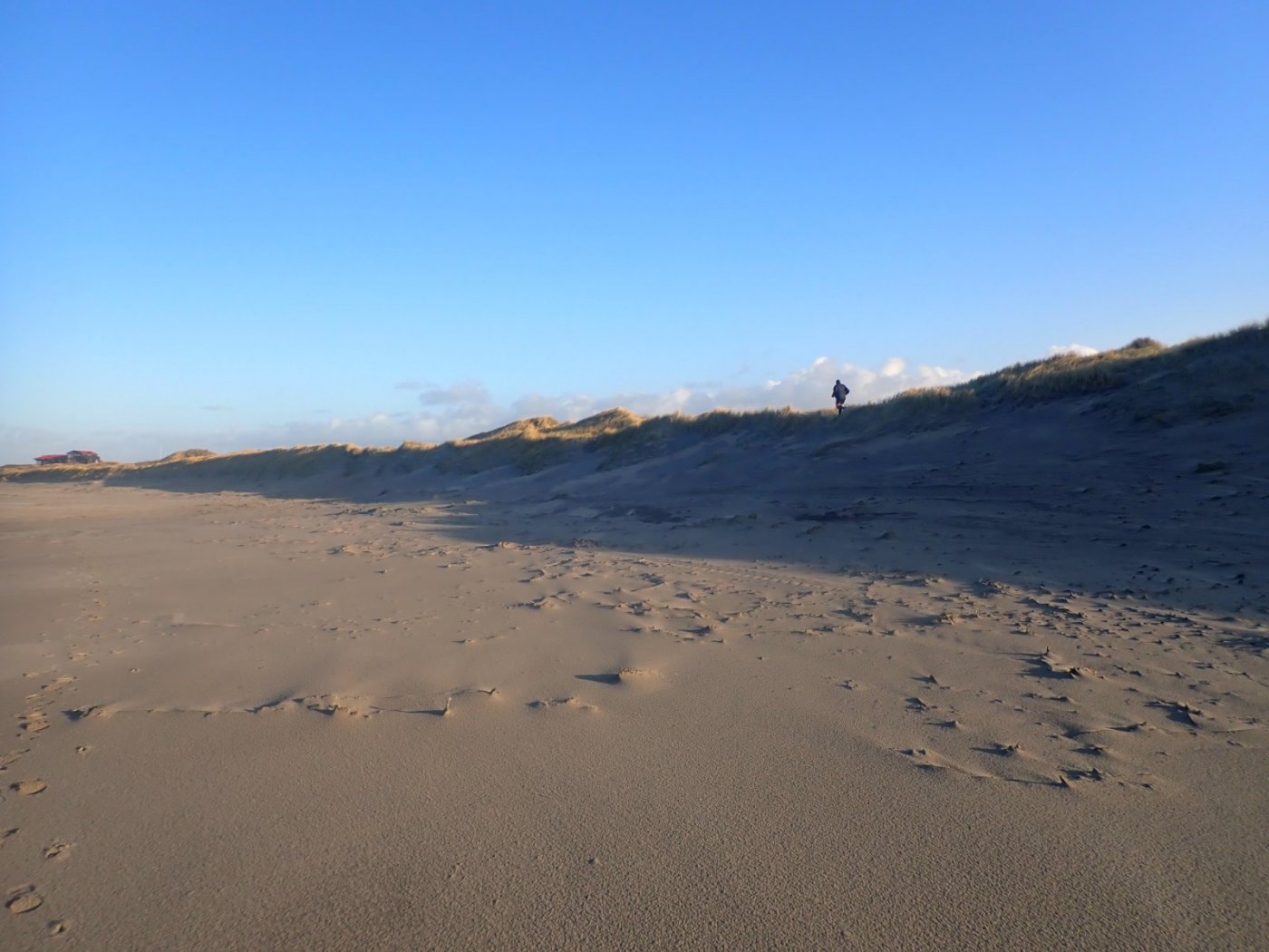 Sol, sand og strand. Det ble en grei tur på fredag. Opp mot 14 kilometer, som ofte er en langtur. Siden turen gikk langs sjøen, ble det lite bakker og i grunnen en lett tur. Hva med lørdag? Bestyrerinnen var klar på at dagen var satt av til kost og klut – hjemme. Det er ikke til å legge skjul på at det har blitt mye mer rengjøring på Blåfjellenden enn hjemme. Bestyrerinnen mente vi fikk ta et skikkelig tak i dette. Hva med den vanlige lørdagsturen? Etter et par timers arbeid med kost og støvsuger, kunne jeg forsiktig begynne å planlegge litt. Værmeldingen var slik at jeg ikke så syn på å ta rundt Lifjellet, som hadde vært valget om jeg startet fra morgenen av. Med mye nedbør i det siste , var jeg heller ikke fristet av en tur på Høgjæren. Det ville i så fall bli en kort runde. Med mye sorpe og vann. Det er greit å ha kort vei til sjøen og strand. Der er alltid mulig å gå en tur i frisk luft med vid utsikt over Nordsjøen. Stranden er heller aldri den samme. Sjø og vind flytter på sanden, og det bygger seg ofte opp store mengde tare enkelte plasser. Det var en stund siden jeg hadde gått fra Reve havn. Turen sørover til Friluftshuset har i mange år vært en fast vintertur. Det er ikke langt å kjøre, og turen tar opp mot to timer. Akkurat passe for en kjapp tur når det er snø og is og glatt andre plasser. Eller når jeg starter litt sent på dagen. Som denne gangen. Jeg kom ikke i gang før nærmere ett. Det er jo egentlig helt greit, men hadde jeg dratt til Dale i Sandnes, så hadde jeg ikke vært hjemme før nesten fem. Og da er det mørkt. Som nevnt skjer det saker og ting i sjøkanten. Ved Reve havn var det kommet opp skilt om parkeringsgebyr. Slik jeg forsto det, så skulle betalingen skje ved hjelp av «vips». Og for oss som ikke har slike greier? Bestyrerinnen ville ikke være med på turen fra Reve til Orre. Hun mente det ville være for mye sorpe. Til min overraskelse var greit å komme fram uten å bli våt, selv med lave sko. Jeg måtte går rundt en plass, men det var alt. Reve stranden var igjen blitt sandstrand. Denne stranden skifte fra rullestein til grus og til sand med vær og vind, og det er vanskelig å vite hva som møter en. Denne gangen var det sandstrand, og helt grei å gå på helt ut til selve revet. Fra revet til Friluftshuset var det også strand. Forrige gang gikk sjøen helt opp til sand-dynene, men denne gag var det igjen strand. Det var meningen å ta en liten pause ved Friluftshuset. Jeg hadde både kjeks og te med meg i sekken. Det ble til at jeg bare satt ned i noen sekunder før jeg fortsatte tilbake mot bilen. Tilbaketuren gikk det første stykket inne i landet litt bak sand-dynene. Der er det et spesielt landskap med gamle dyner og marehalm. Det var andre ute og gikk denne dagen. Flere folk enn det jeg regnet med å treffe. Nå var det aldri mange folk. Selv på de beste soldagene, er det ikke fullt på stranden, parkeringsplassen derimot... Jeg nådde tilbake til bilene i fin form. Det hadde vært en helt grei tur, uten regn og med lite vind. Selv om jeg prøvde å holde farten opp, kunne jeg se at det hadde tatt lengre tid enn tidligere. Helt greit, jeg kommer meg fortsatt på tur.2 poeng