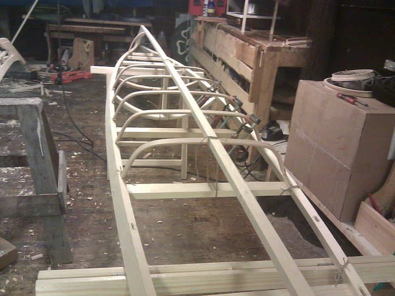 Det som skjer ved oppvarming/damping av treverk er at limstoffet, lignin, som er mellom cellene blir plastisk og kan gis ny form. Når trestykket kjølner igjen vil ligninet stivne i den nye stillingen og trestykket vil beholde sin nye form. Når det bøyes over en mal er det forventet ca 10 % tilbakefall (mindre bøy) når emnet fjernes fra malen. Vil anta at det skyldes treets naturlige elastisitet. Teoretisk sett skal det holde å ha emnene i spenn til de er nedkjølt, men jeg opplever at de holder formen bedre om de får stå lengre i malen, gjerne til de er helt tørre. En gammel tommelfingerregel jeg har hørt, sier at emnet skal varmes opp en time pr tomme tykkelse. Det vil jo da si at ca en halvtime for et 10-12 mm tjukt trestykke. Hvordan treverket varmes opp burde i utgangspunktet være likegyldig, men de fleste som bøyer litt større ting varmer opp ved hjelp av damp. Det er lettere å få jevn oppvarming på store emner ved å ha dem i en dampkasse enn å ha store kar med kokende vann. Lufttørket kontra kunstig tørket materiale er jo også noe å tenke over. Kunsttørking foregår gjerne ved hjelp av høy varme og tilførsel av vann/damp for å hindre oppsprekking. Hvor mye dette påvirker ligninet er jeg usikker på, men jeg føler at kunsttørket materiale er stivere og vanskeligere å bøye enn lufttørket. Jeg opplever på et vis det samme når jeg prøver å bøye tidligere dampet/bøyd treverk på nytt. Det virker stivere enn lufttørket og ubøyd materiale. Dette er bare en personlig opplevelse og utfordringene jeg har opplevd kan selvfølgelig også skyldes andre ting som kvaliteten på treverket, gamle tørre emner, småskader i treverket, tetthet på årringer osv. Vel halvveis nede på siden jeg linker til her er en videosnutt der vi damper og bøyer ski til en hundeslede. Filen var for stor til å laste direkte opp her på Fjellforum. https://langsomt.no/sleden/ Den ferdige sleden3 poeng