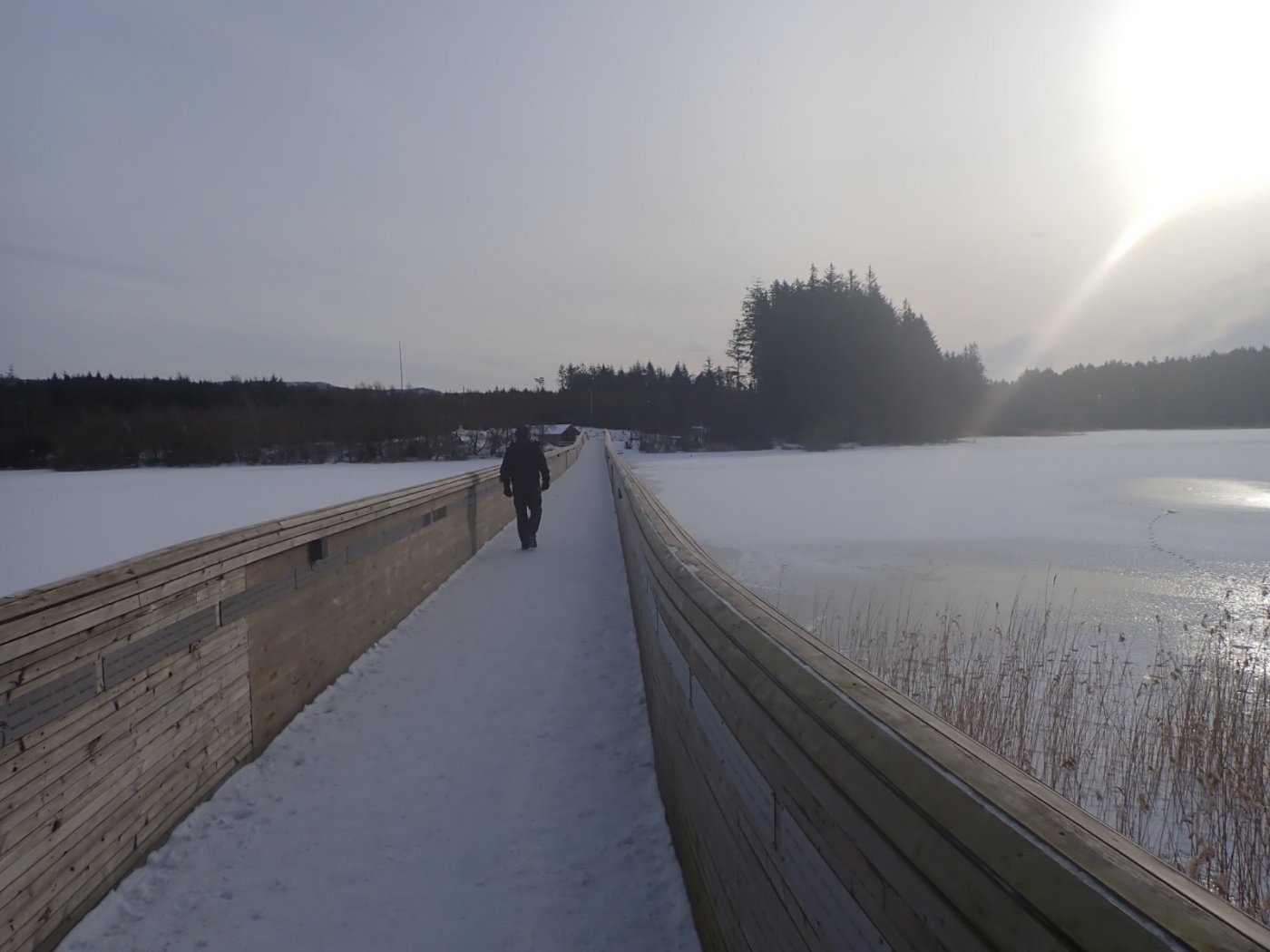 Søndagstur i godt selskap. Bestyrerinnen ville på tur søndagsmorgen. Ikke noen langtur, men en kjapp og grei tur i nærområdet. Det kunne passe en søndag med snø på bakken, men med vinden ulende rundt hushjørnet. For egen del var jeg litt usikker på hvor det var best å ta ut. Jeg hadde jo håpet på en litt lengre tur, men med kuling i kastene fristet det ikke med noen strandtur. Andre plasser ville det være snø og Bjødnali hadde jeg jo besøkt noen ganger i det siste. Lenge før vi, det vil si Bestyrerinnen hadde fått sko på beina og begynt å gjøre seg klar for tur, ringte telefonen. Det var Sigbjørn. Han og Anne Lise hadde tenkt seg på tur i Njåskogen. En passe plass for tur en dag med mye vind. Det er kjekt at andre vil ha oss med på tur, og denne dagen passet det bedre enn mange andre ganger. Vi hadde jo ikke helt blitt enige om hvor vi skulle ta ut. Det er ikke så ofte jeg – og Bestyrerinnen, har gått tur i Njåskogen. Vi holder oss som regel i sjøkanten om det er sånn noenlunde vintervær. I godt turvær blir det som oftest en topp tur en eller annen plass. Det er alltid kjekt å være med Sigbjørn og Anne Lise på tur. De drar oss med på plasser vi ikke går så ofte, og det er jo helt greit å se noen mye plasser også – mener Bestyrerinnen. Med Sigbjørn først i sporet blir det også – av og til – noen «omveier» som gjør turen litt lengre enn hva som blir nevnt, sånn innledningsvis. Han har noen ganger dratt oss med på noen virkelig flotte dagsturer, på både tre og fire timer. Uten at det helt var den opprinnelige planen. En tur i Njåskogen kunne ikke bli så lang. Det er ikke store området og burde være greit å komme rundt på et par timer. Bort sett fra at Sigbjørn kjenner stiene og området, og fikk oss med på en rundtur med diverse krøller. Over sti, langs sti og rundt sykkel-løyper. Rundt om kring – i Njåskogen. Vi startet fra parkeringsplassen ved Gunnarsberget og gikk til Ormen Lange og over til Njåsiden. Der bar det mot Langanes og en runde, før vi satte kursen mot veien og østsiden av skogen. Der ble det en runde i sykkelløypene, og mot parkeringsplassen i Njåskogen. Det var tydelig vis andre på tur i skogen denne dagen. Det var masse bil. Men siden vi stor sett holdt oss inne i skogen og ikke på turveiene, så vi ikke så mye til andre folk. Det siste stykket inn mor brua og veien tilbake til bilen, gikk på turvei, og her møtte vi en del. Tilbake ved bilen ble det en liten oppsummering. Vi hadde vært på tur over tre timer og det hadde blitt nesten 12 kilometer. Uten spesielt mange bakker, men som oftest i greit tempo. Det ble en skikkelig søndagstur. Det var fortsatt is og snø på turveiene, og jeg gikk med piggsko. Vinden kjente vi ikke noe til i det hele tatt. En flott tur.1 poeng