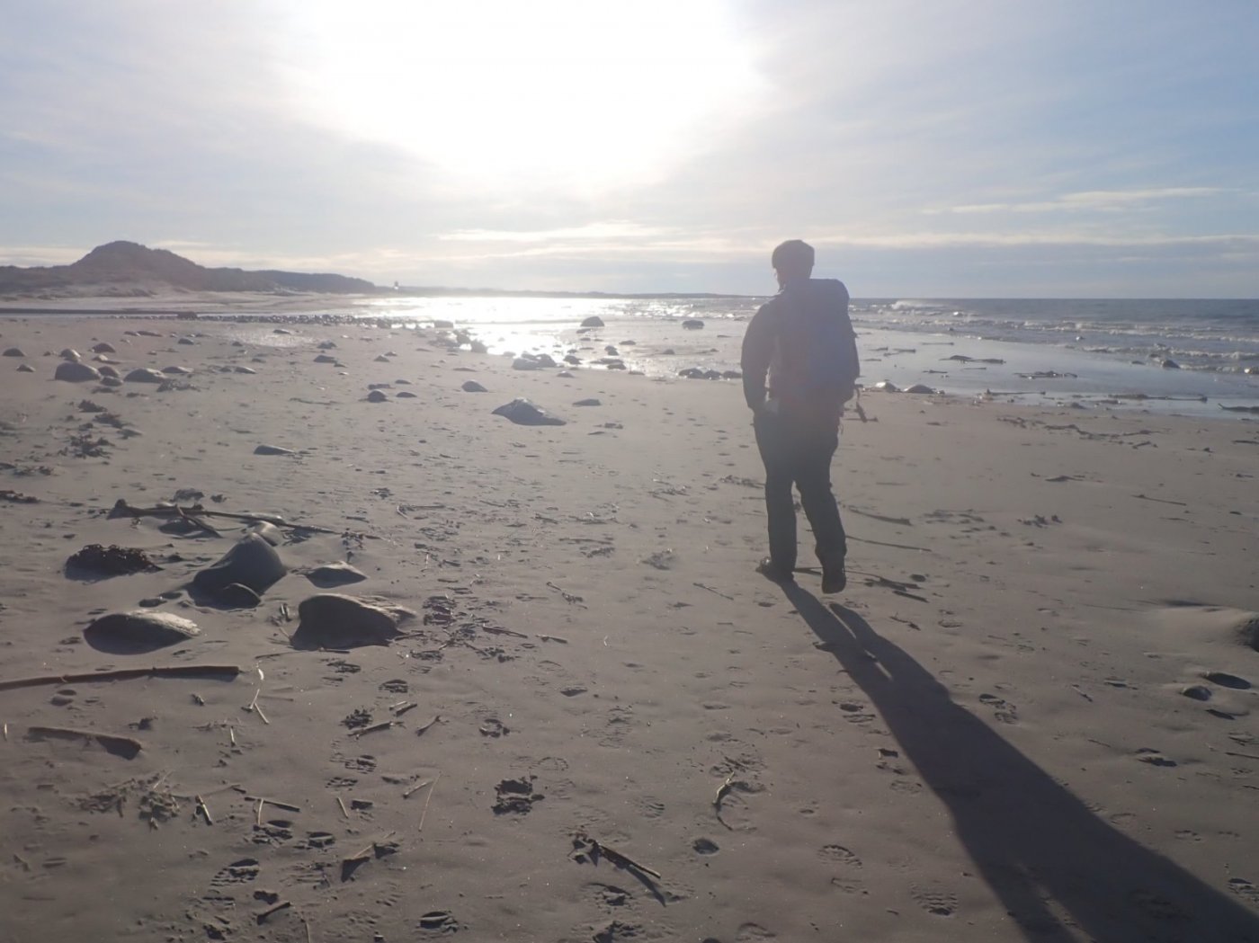 Tinvær og glatt de fleste plasser. Etter en lang periode med frost, kom mildværet. Tinvær, men bare noen få grader over null. Fortsatt sol inne imellom og uten nedbør. Turvær med andre ord. Ulempen er at hardtråkket snø blir til is. Normalt er det vanskelig å bevege seg ute en dag eller to etter et slikt væromslag. Det var is i gårdsrommet og jeg var usikker på om det burde bli tur. Broderen mente det ville være mulig å komme seg på en onsdagstur, selv om det var glatt. En strandtur er alltid en mulighet. Det er naturlig strødd helt i sjøkanten på sandstrendene. Broderen og jeg ble enige om å treffes på Orre – ved Friluftshuset. Og gå en tur langs sjøkanten. Det kunne umulig være så mye is at det hindret tur der. Nede ved Friluftshuset var det blanke isen på asfalten , men det var mulig å gå på utsiden av den vanlige stien. Der var det bare litt snø, som ikke hindret oss. Normalt går bi på «innsiden» av stranden mot Orre-elva, men denne gangen ble det kjappeste vei til stranden og i sjøkanten sørover mot Orre-elva. Elva ligger omtrent 1 1/2 kilometer fra parkeringsplassen, og frem og tilbake blir bare tre kilometer. En alt for kort tur. Det førstestykket ble det derfor nordover i våre egne spor. Nå er Orre og Reve sanden omtrent 3 kilometer, og går over i en ny sandstrand. Det betyr mye for hvor fort vi kommer frem om sanden er hard og grei å gå på eller om den er løs og skoene synker ned i. Denne dagen var det «blandet drops» - enkelte plasser var det helt greit, mens andre plasser var det løs sand. Det viste seg å være bestå gå der folk hadde gått på ski. Det hadde vært så pass med snø at mange hadde funnet frem ski og dratt på stranden. Dette til glede for oss, da det tinte senere under skisporene enn ellers på stranden, og vi kunne gå på hard strand. Onsdagsturen pleier ofte bare å bli 7-8 kilometer og godt under to timer. Denne dagen hadde vi ikke bestemt hvor langt vi skulle gå. Siden været samarbeidet, det var både sol og lite vind, ble det til at vi vandret først til Revtangen, så til Ytre Reve og så omtrent til Reve Havn. Nesten 7 kilometer fra start, men bare omtrent 5 kilometer tilbake til bilen. Vi kunne godt ha fortsatt. Det er helt greit å gå til Hellestø og også videre til Sola og mot Viste/Tungenes. Denne dagen ville det bare bli tilbake til bilene for oss. Nå er det mulig å gå på innsiden av selve stranden, og vi pleier å gå en vei ytterst og så holde innenfor stranden på hjemveien. Denne gangen ble det en tur i sjøkanten også på tilbakeveien, bortsett fra at det ble oppe i dynene på slutten. Det var fortsatt speilblank is i stien da vi kom tilbake, men som vanlig blir vi vant med is og glatte forhold, og da går tingene av seg selv. Vi kom frem og tilbake på omtrent to timer, som er grei fart på flat og slett strand. En flott tur, selv om det trakk litt over på slutten.2 poeng