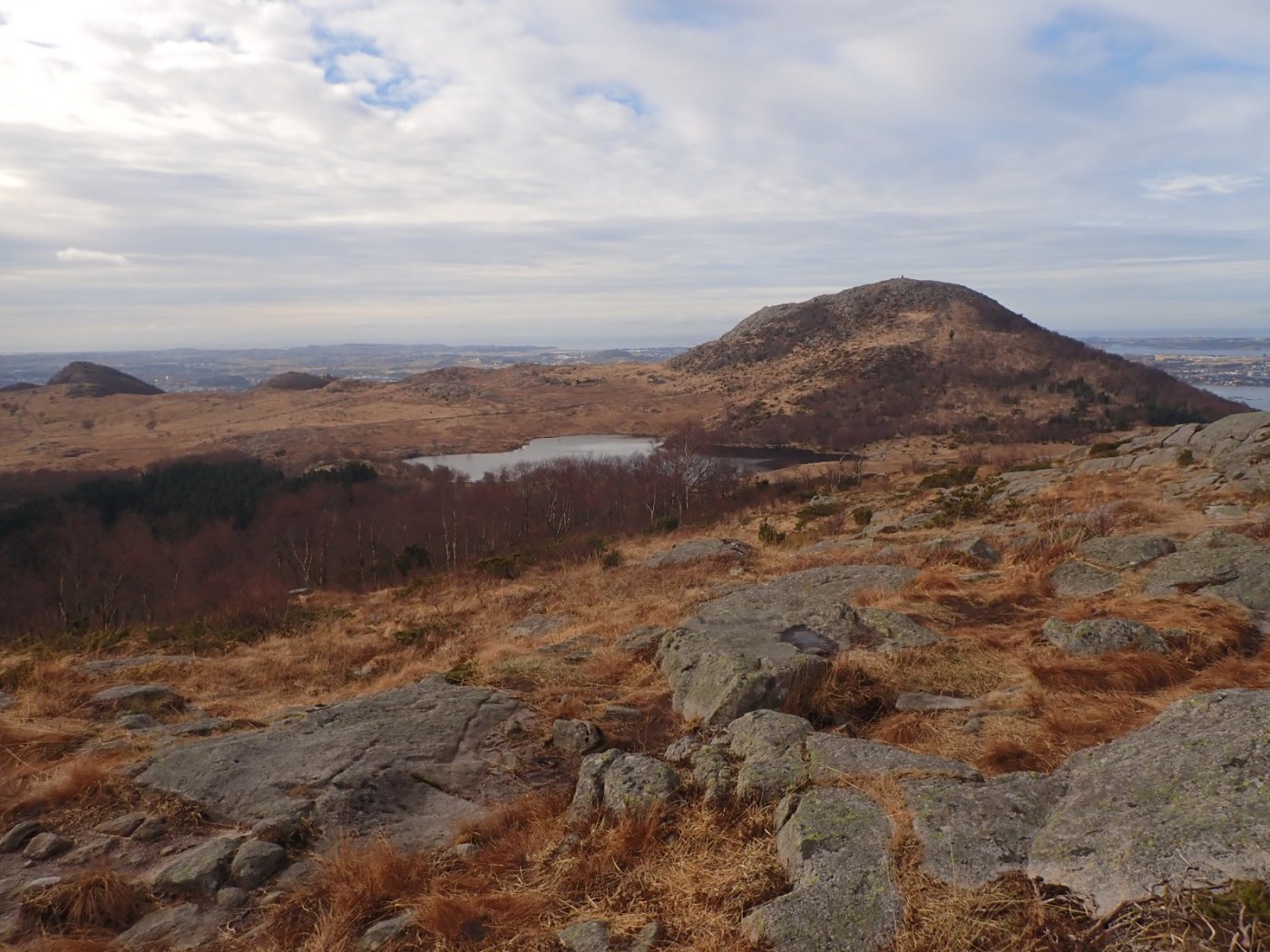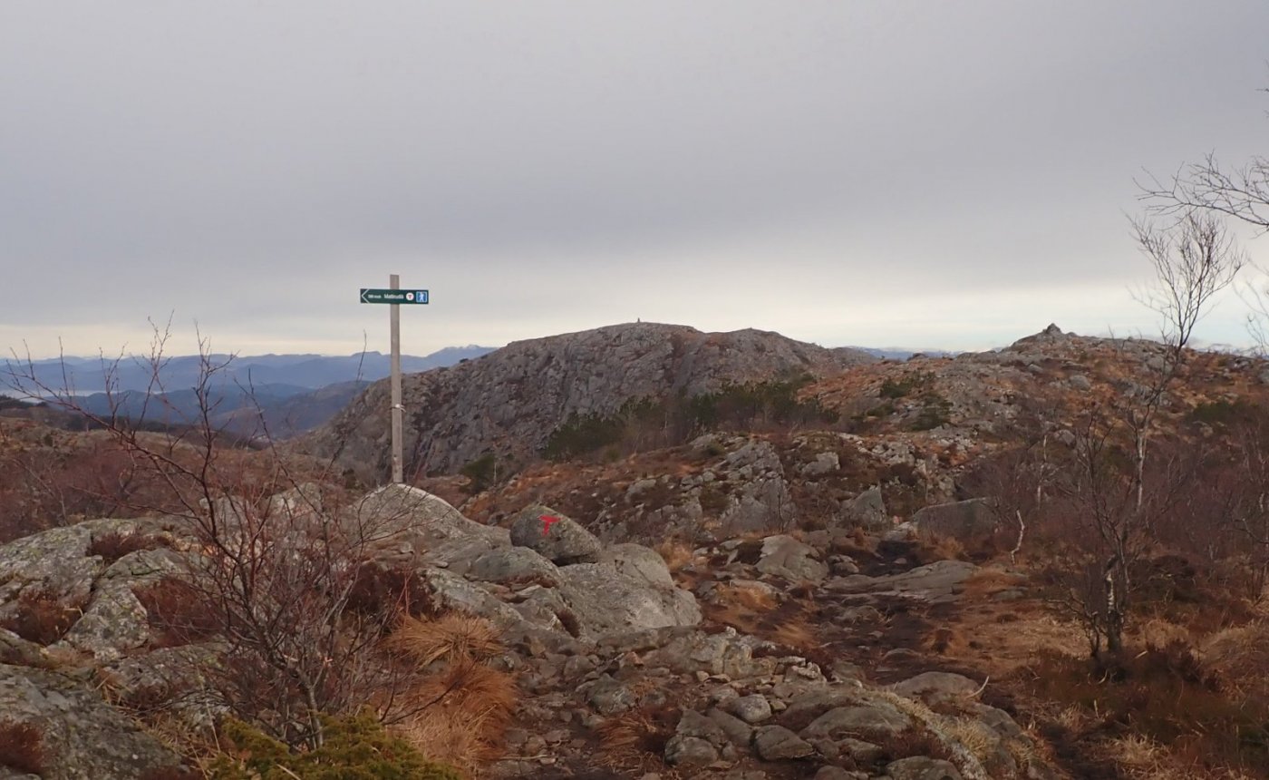 «Den gode runden fra Gramstad» I mange år var det turen rundt Li jeg benyttet meg av gjennom vintersesongen. Ofte ble det to ganger i samme uke. Om været samarbeidet. Li fjellet er en helt grei treningsrunde og selv om det etter hvert går litt saktere i bakken, så er dette en skikkelig treningsrunde. Det er langt opp fra sjøen og til toppen. Som pensjonist har det blitt mye mer tur enn da jeg jobbet. Alle turene er ikke like lange, men det blir en del turer på to timer og vel det i uka. Heldigvis «oppdaget» jeg Gramstad med et utvalg mulige turer. Det har vært helt greit å få nye – nå gamle – turer på programmet. En av disse turene er langturen fra Gramstad om Matisrudlå, Bjørndalsfjellet, Fjogstadnuten og Dalsnuten. Jeg sjekket arkivet, og det var ikke så mange ganger jeg hadde tatt denne turen siden første gang i 2018. Jeg har alt tatt denne turen en gang i år, men det var på tide og gjøre det en gang til. Jeg trenger en avveksling til turen rundt Lifjellet. Det er en grei tur på omtrent tre timer. Det var en del biler på Gramstad, og noen var parkert ved stien mot Paradis-skaret. Jeg ville ikke bli alene denne dagen, men så ingen på vei bortover mot «Rindå». Oppover bratte bakken gikk det bedre enn de siste gangene. Jeg hadde hevet ut et par kilo av sekken og det gjorde nok merkbar forskjell. Heldigvis møtte jeg ingen oppover. Det er ikke kjekt å møte andre når tunga henger som et slips. Oppe på toppen møtte jeg tre kjekke damer fra Klepp, som var ute og samlet poeng slik som Bestyrerinnen. De var ikke på sin første fjelltur, men muligens blir bakken nedover mot Paradisskaret en utfordring. På toppen av Bjørndalsfjellet var det helt andre forhold enn da jeg var der alene i forrige uke. Ikke et haglkorn å se, og nesten ikke vind, skikkelig bra forhold. Det hadde gått helt greit opp bakkene mot Bjørndalsfjellet så det ble ingen pause. Jeg snudde etter å ha nådd varden og tok fatt på bakkene nedover mot veien. Heldigvis var det nesten tørt. De «nye» skoene holder fortsatt, og det var ikke snakk om å gli der det ikke var vår sorpe. Selv etter mer enn et år, om enn ikke så hardt brukt, så er ALFA Impact skoene nesten nye. Selv om bakkene opp mot Fjogstadnuten ikke er spesielt bratte, krever de likevel en del. Denne gangen forsøkte jeg å holde farten slik at pulsen ikke kom i «rød» sone. Det hjelper å kjenne bakkene. Bortover flyene mot Revesdal og Kvitemyr vurderte jeg å ta turen direkte tilbake til bilene, men fant fort ut at denne dagen var «nødvendig» å gå om toppen på Dalsnuten. Det er veldig god sti oppover, med trapper i de bratteste kneikene. Igjen var det greit å ta bakkene, selv om det var helt i orden med en liten pustepause på det flate partiet. Det ble ingen stopp på toppen av Dalsnuten heller. Jeg kom meg til varden og snudde og tok fatt på det siste stykket tilbake til bilen. Det hadde vært en flott tur, og den hadde gått bedre enn hva jeg hadde trodd. Jeg var i god form etter tre timer på beina. Telefonen mente turen var på omtrent 14 kilometer, men det må være feil. Jeg skulle tro den er 10-11 kilometer.2 poeng