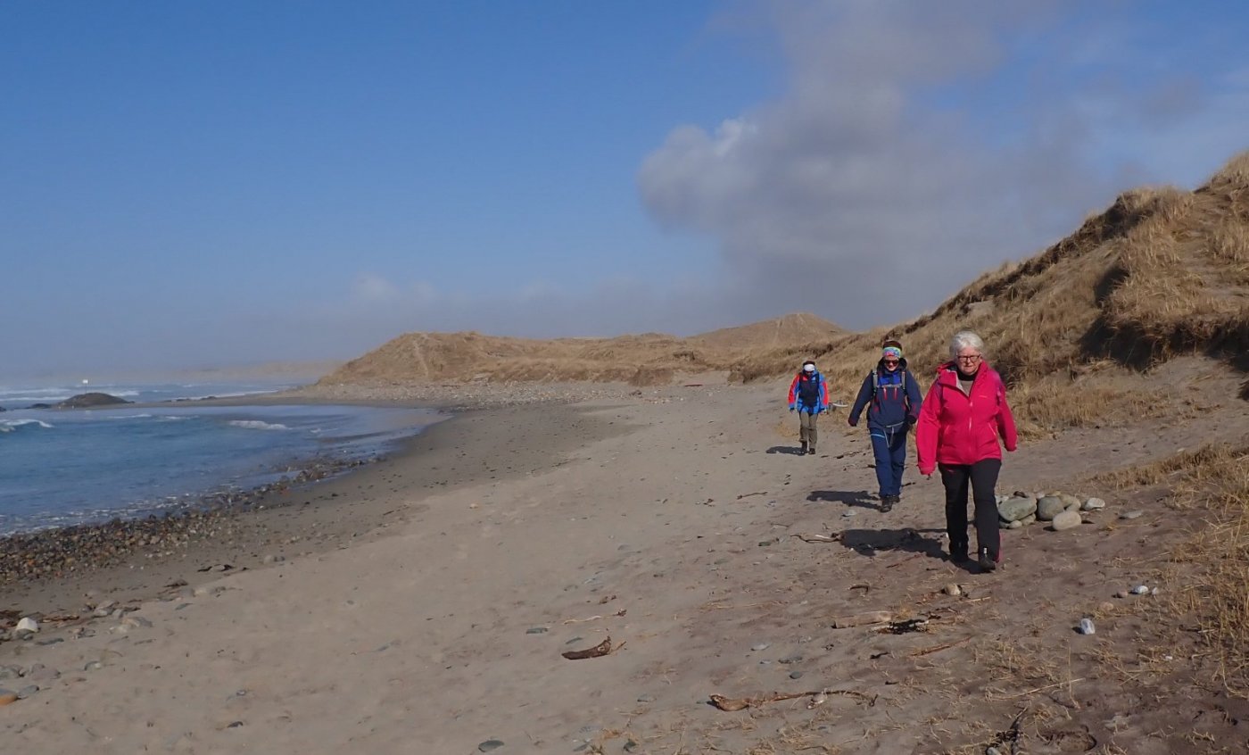 Sammen med en gjeng fra Klepp Frivilligsentral Det kan ikke stikkes under en stol, at som pensjonist blir det mange timer hjemme i stua. Selv med tur nesten hver dag, så blir det lite aktivitet utenom. Sosial kontakt blir nesten borte – spesielt i disse koronatider. Bestyrerinnen gjør noe med dette. Hun er med i Klepp Frivilligsentral, og gjør en innsats der det trengs. Det blir i vert fall mer kontakt med andre enn ved å sitte hjemme. For noen år siden gjennomførte Bestyrerinnen et prosjekt der hun og Anne Lise gikk langs stranden fra Tungenes til Egersund – over flere dager. En flott men krevende tur. Nå dukket det opp et prosjekt som kunne kombinere disse tingene. Frivilligsentralene vil samle folk på en vandring fra Tungenes til Sirevåg. De har kaldt prosjektet «Strandvandring 2021». Det er meningen at dette skal være et tilbud til «alle» og derfor vil etappene være på omtrent 5 kilometer, og med stopp for kulturminner og – ikke minst – mat og kaffe. Bestyrerinnen meldte seg – selvsagt – som turleder, og mente ganske bestemt at jeg også skulle stille. Jeg er litt skeptisk til slike prosjekter, men.... Klepp Frivilligsentral skal ha ansvaret for etappen i Klepp kommune, og ønsket at «frivillige» skulle prøvegå de forskjellige etappene. Onsdag klokka 12 samlet det seg en gjeng på Hellestø for å gå de to første. Planen var å gå til Sele for å ta langs Borestranden til Fuglingene og videre til Reve havn. På forhånd hadde vi blitt enige om at dette antakelig ville være to etapper. Hver på omtrent 5 kilometer. Det var en flott vårdag med sol og litt dis, men som så ofte, det blåste fra sør. Ikke veldig kraftig, men nok til at det ble litt «oppoverbakke» ute på åpne stranden. I tillegg var sanden litt løs. (Det pleier den ikke å være på Hellestøsanden.) Det ble litt tyngre tur den første delen, enn tenkt. Nesten halvveis mot Sele havn, tok vi en avstikker bort til Steinstjerna, også kaldt «Dødssjernå». Antakelig en grav fra 300-600 e. kr. Den er ikke undersøkt, men delvis bygd opp igjen i 1935. Siden vi hadde tenkt oss et stykke denne dagen, ble det ikke pause ved Sele havn, men vi fortsatte over brua og ut på Borestranden. Der var sanden løsere og vinden friskere. Vi kom oss likevel greit sørover. Ved parkeringsplassen for Borestranden ble det stopp og pause. Noen av oss sa takk for følget og måtte forlate resten av gjengen. Sosiale krav gjorde det vanskelig å bli med videre mot Reve havn. Resten av følget tok sørover på innsiden av sand-dynene. Her var det mye greiere å gå og litt le for vinden. Ute ved Fuglingene tok vi over dynene og tilbake til stranden. Vi hadde hørt mye fuglekvitter fra trekkfugler på veien sørover. Et skikkelig vårtegn, tillegg til lukta av hevd som lå over landskapet. På en sandvoll som vendte mot sør og sola, fikk vi oppleve et annet. Der var det en masse hestehov i blomst. Våren er kommet til Jæren. Resten av turen gå i et landskap noe ulikt det vi hadde passert. Her går stien på gress-sletter og med en strandbrink dominerende over. Stranden er stein og rullestein. Noen steder går også stien i rullesteinene. Der er det ikke alltid like lett å holde balansen. Gjengen som surfet på bølgene ute i sjøen hadde ikke problemer med det. Vi kom fram til Reve havn i god form, etter omtrent 11 kilometer. En skikkelig grei tur en flott vårdag.1 poeng