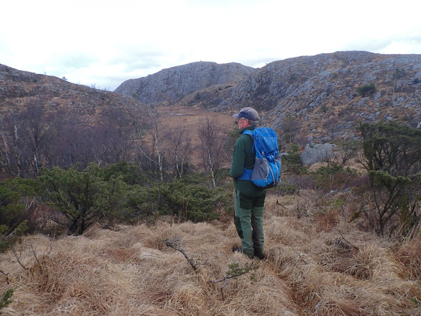 En fin og "ny" tur. Det har blitt en del turer i det siste, og med vinter i heia, blir det ofte de samme turene. Mange av mine «faste» turer går fra Gramstad. Der er det mulig å velge både lange og ganske korte turer. For en stund siden bestemte jeg meg for å ta innover Bjørndalen og Bjørndalsmyra, for å sjekker muligheten for tur til toppen av Mattisrudlå. Det viste seg å være såre enkelt. Bare et par plasser var det noen steg som bød på problemer, og da hovedsakelig på grunn av at stien ikke var spesielt tydelig. Eller nesten usynlig. Mitt i uka ville det passe med en tur som ikke er for lang, men heller ikke spesielt kort. Jeg kunne tenke meg å gjenta turen fra forrige uke. Hvor jeg tok mot Mattisrudlå fra Bjørndalsmyra, for å gå til Bjørndalsfjellet og videre mot Fjogstadnuten. Dalsnuten ville være mulig å ta med – avhengig av formen. Broderen ville gjerne på tur, men er ennå mer tilbakeholden enn meg når det gjelder å ta ut på nye stier. Han holder seg helst til godt oppgåtte stier – som han har vandret mange ganger. Det krevde litt overtalelse å få med broderen. Han hadde jo ikke vært innover Bjørndalsmyra, og den gangen han husket best, var bakken opp til Mattisrudlå fra Paradisskaret. Bratt og tung, og litt eksponert for oss som ikke er glad i stup – til venstre eller høyre eller bak. Vi ble enige om å møtes på parkeringsplassen og forsøke oss på den nye ruta mot Mattisrudlå. Bjørndalsfjellet ligger omtrent i løypa, og med Fjogstadnuten i tillegg ville det bli en grei tur. Broderen mener han er ute av trening, og at en tur på over tre timer blir vanskelig. Han går inn for å være i form til sommeren. Da blir det forhåpentlig noen turer til Blåfjellenden. De siste turene med broderen har vært to-toppers turer. Det vi planla for denne dagen vil bli en tre-toppers tur. Det ville bli en del mer opp og ned en det vi har gjennomført i det siste. Det kunne være en del vann i myra. Det hadde regnet, og hjemme var det bløtt. Vi «vasset» ut i Bjørndalsmyra, som var mye tørrere enn det vi hadde trodd. Det var helt enkelt å komme innover – med tørre føtter. Jeg fant så vidt den nesten usynlige stien også denne gangen, men klarte selvsagt å gå feil – på samme plass som forrige gang. Vi kom oss opp til Mattisrudlå uten problemer. Vi tok følge med en jente vi traff. Hun på sin første tur i området og litt usikker på veien. Bjørndalsfjellet unnagjorde vi i fin form, og det var ikke vanskelig å få pusten tilbake på vei nedover. Broderen var innstilt på Fjogstadnuten som tredje topp for dagen, og den gikk unna i greit tempo. På vei mot Kvitemyr og Revholstjørn, ble vi enige om at Dalsnuten ville være å ta i litt for mye – denne gangen. Det fikk klare seg med tre-topper. Broderen var godt fornøyd med det, og mente vi fikk satse på en fire-toppers tur neste gang. Turen hadde tatt oss omtrent to og en halv time, men den var ikke på mer en omtrent 9 kilometer. En flott tur.2 poeng