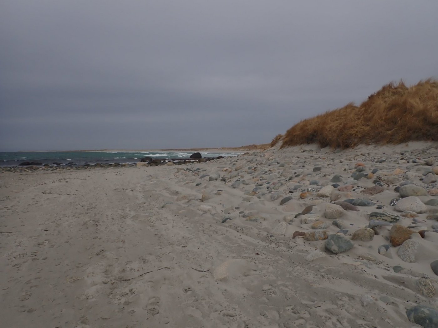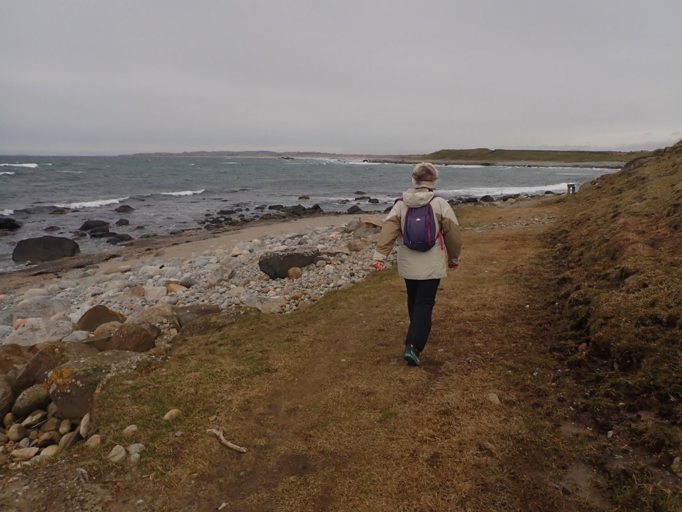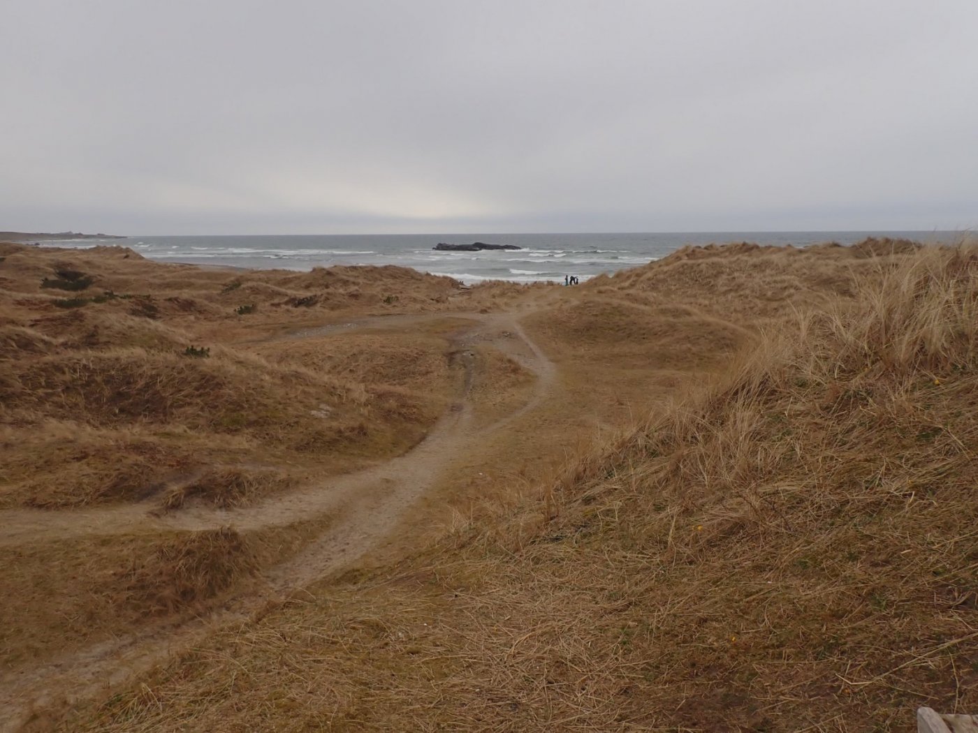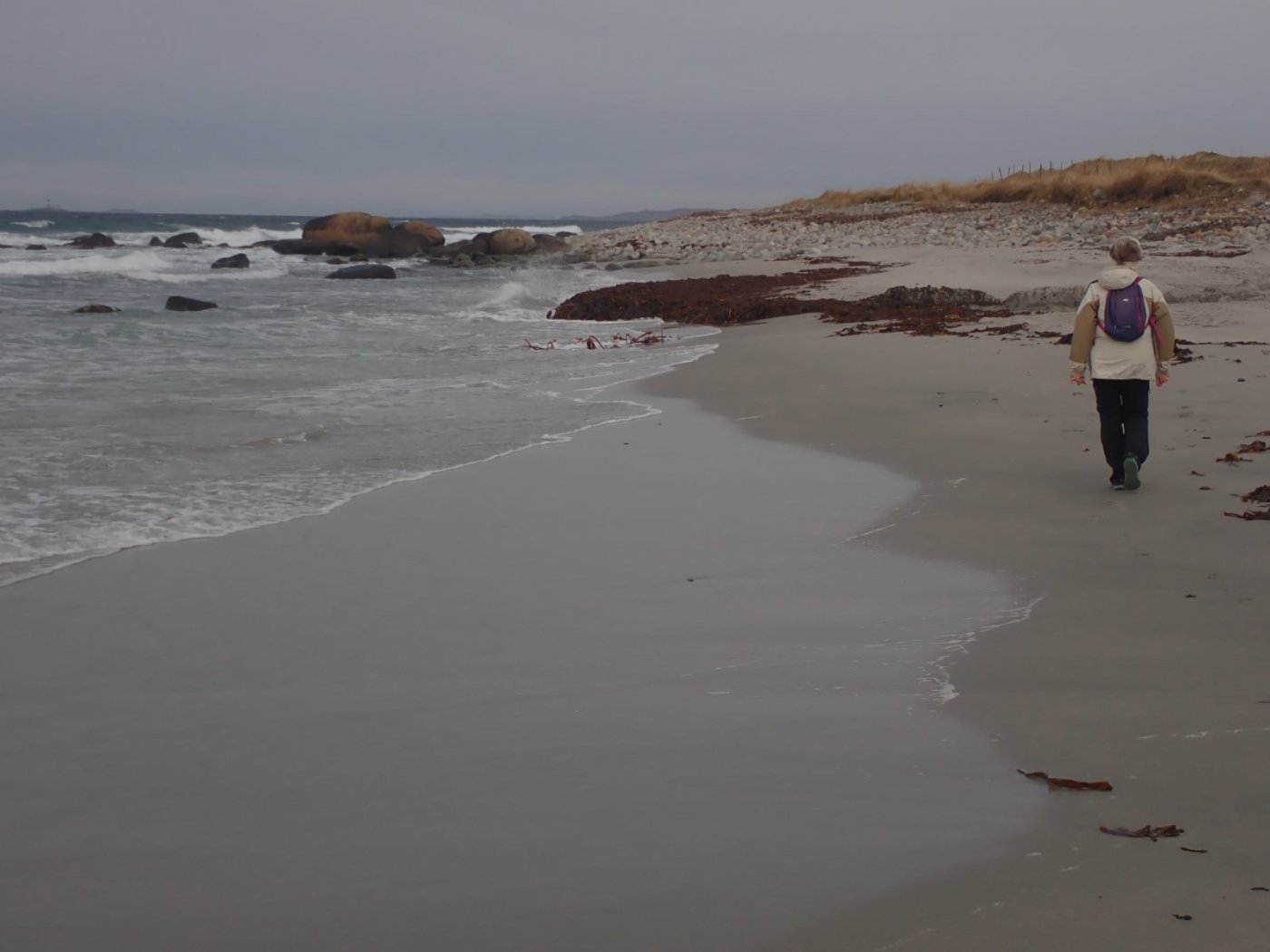 Sammen med Bestyrerinnen på strandtur. Her kommer turene tett som hagel. En tur til dagen på mer enn en mil og opp mot tre timer. Det blir mye trening det. Jeg hadde i utgangspunktet tenkt å ta det med ro, det vil si gå en litt kort tur. Bestyrerinnen hadde andre planer. Hun ville til Orre og gå om elva og så nord til Bore. 11-12 kilometer eller der omkring. I hvert fall ingen kort tur. Hvis Bestyrerinnen ville på tur langs stranden, så var det egentlig greit. Jeg hadde jo ikke helt tenkt hvor dagens tur burde gå. En strandtur denne dagen. Både Bestyrerinnen og jeg kikket ut av vinduet for å sjekker været. YR mente vist det skulle blåse fra sør, og skyene gikk da nordover?. Vi var enige om å kjøre to biler til Bore for så å kjøre sammen til Orre – å gå nordover. På Bore blåste det stikker og strå. Vind opp mot 8-10 m/sek. - fra nord. En kald vind. Nordavinden er alltid kald. Vi var likevel samstemte om å holde oss til planen og dro til Orre og Friluftshuset. Bestyrerinnen måtte først sør til Orre-elva. Det er noe med noen poeng. Hun samler topper og poeng, og kan se hvor mange plasser hun går fram eller taper i forhold til kjente. Orre-elvsmunningen er en slik poengplass. Bortover mot elva, på baksiden av sanddynene var det greit. Vinden, selv om den var kald, kom bakfra og vi hadde på greie nok klær. Ved elva kom vi ut på stranden og fikk vinden midt i mot. Den kalde vinden – fra nord. Fortsatt ikke spesielt sterk, men den krøp under og gjennom klærne, og det tok litt tid før jeg ble varm. Jeg trodde dette ville bli en kald, lang og ugrei tur. Bestyrerinnen gikk på med godt mot, og holdt tempoet oppe. Det viste seg ganske fort at stranden, helt ute ved sjøen, var fast og fin. Det var helt greit å gå. Omtrent som på en god vei, bortsett fra at det kunne komme en og annen bølge som kunne skylle over skoene. Det gikk merkverdig bra nordover langs Orresanden, - som er lang. Av og til virker denne sandstranden uendelig lang. Denne dagen var vi i andre enden ganske kjapt, på tross av vind i mot. Nå er det sandstrand helt bort til Skarsteinene, bortsett fra et lite stykke ytterst mot Jærens Rev. Hele den delen av turen gikk fort og greit. På Revtangen traff vi en kar som kikket etter fugler, og på spørsmål, kunne karen fortelle hvilken fugl jeg hadde hørt dagen før. En gråspett. Vi nådde Reve Havn i fint driv, og fortsatt nordover mot Bore. Landskapet mellom Reve havn og Fuglingene i søre enden av Borestranden, er litt spesielt. Med grønne gress-sletter og høy brink. Det minner litt om enkelte plasser jeg har vært i utlandet. Det var ikke vanskelig å få gehør for at vi skulle ta på innsiden av sand-dynene det siste stykket inn mot parkeringsplassen og bilene. Bestyrerinnen var enig i at det ville være best denne dagen. Det ble en enkel avslutning på en tur som ble kjekker etter en stund. Som vanlig ble i hvert fall jeg vant med den kalde vinden, og det er jo trivelig å være ute. En flott tur på 11-12 kilometer, men da helt uten bakker. Bare motvinden laget trøbbel denne dagen.3 poeng
