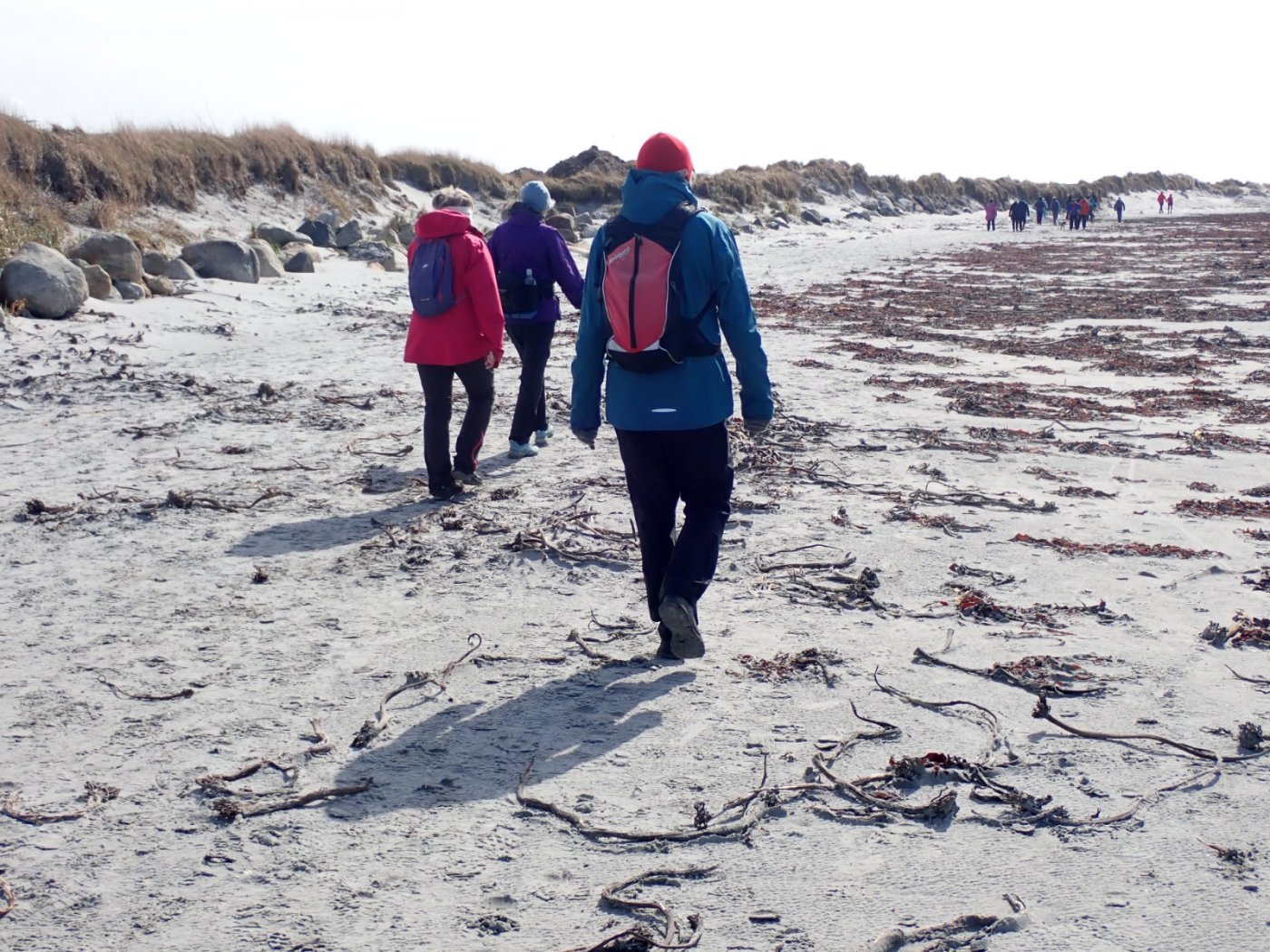 Forberedelser for "Strandvandring 2021" Etter en uke med en god del dårlig vær, vind og regn eller snø og vind, så kunne det se ut som om søndagen skulle bli litt annerledes. YR meldte om sol og ikke mye vind, selv om den skulle komme fra nord og det skulle fortsatt være kaldt. Det var vanskelig å bestemme hvor turen burde gå. Bestyrerinnen var oppsatt på tur, men ville helst ikke på «langtur» eller topptur. Vi ble ikke helt enige om turmål for dagen. Nå har vi heldigvis Anne lise og Sigbjørn som gjerne går tur, og som denne søndagen sjekket om vi ville være med. Fortsatt var det slik at turmålet kunne diskuteres, men Sigbjørn mente at det måtte være en dag for strandtur. Forslaget var å gå fra Orre og ende ut på Hå gamle prestegård. Med kald nordavind og sol fra sør, var dette et godt forslag. Det kunne være kjekt å gå langs stranden sørover. Det var også lenge siden vi hadde gått denne spesielle turen. En sjekk i arkivet viste at vi hadde gått denne turen i januar 2017. Det var på tide med en repetisjon. Spesielt siden vi bare hadde gått turen den ene gangen. Nå hadde i hvert fall Bestyrerinnen og jeg også en annen god grunn for å ta denne turen. Bestyrerinnen har meldt seg som turleder for «Strandvandringen 2021», som er en organisert tur over flere dager langs hele Jærkysten. Klepp kommune har ansvaret for turen langs stranden i «vår» kommune og det er her vi skal være med som «turledere». En liten oppdatering av ruta er avgjort på sin plass. Vi har alt gjort unna den første delen, og resten er nettopp den tur Sigbjørn ville ha oss med på. Her var det bare å bli enige om «når» og «hvor». Vi startet fra Friluftshuset på Orre. Kursen ble satt mot munningen av elva og Bestyrerinnen fiklet med mobilen. Det var noe med en app. Etter litt over to kilometer sto vi på brua ved Orre gamle kirke og så ned mot stranden. Det første stykket gikk på traktorvei til første hindring. Det går en grunn kanal på tvers av elva her, og første gang måtte vi gå sørover til vi kom forbi kanalen. Denne gang gikk vi på gangsteiner over kanalen helt uten problemer. På andre siden fulgte vi traktorspor sørover et stykke og så var det Sanddyner til vi kom ut på åpne stranden. Uten sand. Rullestein og store steiner. Det var igjen en traktorvei som tok oss et godt stykke sørover forbi Gjerdstangen. Derfra til Skeievika var det utmark og myr, uten skikkelig sti, men med gjerdeklyvere som var lett synlig. Vi snakket med en kar fra Vik, og han kunne fortelle at at hadde gått mye folk langs stranden det siste året. Mye mer enn før. Vi var heller ikke alene denne dagen, men kunne se folk både foran og bak oss. Både Sigbjørn og jeg var usikre på hvordan vi skulle komme oss over, eller forbi Skeie kanalen. Det var, også her mulig å krysse på gangsteiner, men vi så ikke syn på å balanser over, og gikk rundt – halvveis opp til veien og rundt kanalen. En liten omvei på noen hundre meter. Etter flystripa var det sandstrand og mye folk helt til Håtangen. Det ble til at vi sto i kø for å komme over brua ved prestegården. Omtrent 13 kilometer og vi brukte god tid i det flotte været. En fin tur i godt selskap, med skikkelig søndagsvær. Det var selvsagt fullt på parkeringsplassen. Mange andre ville på tur denne dagen.1 poeng