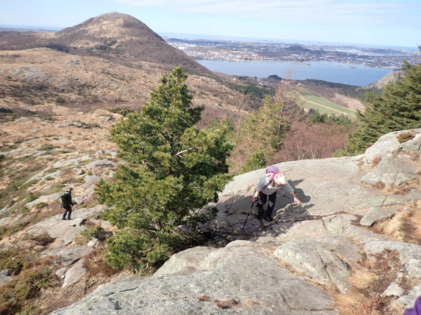 Sommer og sol. Det har ikke blitt vår ennå, men jeg var sikker på at det ville være grønne bjørker under Lifjellet langs fjorden. Det var på tide å sjekker forholdene. En tur rundt Lifjellet i Sandnes har stått på programmet i mange år. Det har vært en av de faste vinterturene de siste ti-tolv årene. I noen år forsøkte jeg å gå til Bynuten minst en gang i måneden – hele året. Så ble det Lifjellet både en og to ganger i uka. De siste årene, etter at NAV betaler meg for å gå tur, har det blitt færre turer rundt Li, men flere turer tilsammen. Både i høyden og langs strendene. Mange av de «nye» turene er noe kortere enn den rundt Li. Som tidligere gikk unna på to timer og tyve minutter, mens jeg i dag bruker omtrent to og en halv time. Ti minutter mer er mye.... Det var en tørr og flott dag. Sola skinte, og termometeret i bilen viste 17 grader. Det har omtrent ikke vært varmegrader siden nyttår, og så – plutselig – sommervarme. Det var virkelig kjekt å kjenne varmen. Jeg tok ikke på jakke fra start, selv inne i skogen ble det ikke for kaldt med bare ullblusen. I le for den lille trekken, og med sola i nakken utover langs fjorden, ble det også nesten for varmt med langbukse. Det var folk som gikk i sommerklær, mens andre fortsatt holdt på vinteren. Siden det var tørt, hadde jeg ingen unnskyldning for ikke å gå den vanlige stien utover langs fjorden. Den går i høyden forbi noen heng og med «Hjelpetråd» nedover et glatt berg. Jeg pleiere å gå en annen sti lengre nede, hvor det ikke er «klatring» i det hele tatt. Den T-merkede stien var tidligere noe kjappere, men siden jeg ikke har gått her på lenge brukte jeg tid frem til stidelet mot Revesdal. Som vanlig var det folk på vei opp «Sprettraubakken» - som er alt for bratt og eksponert til at jeg vil gå opp. Jeg går heller rundt. Denne gangen var det meningen å sjekke bjørka ute på et svaberg. Det er et lite tre som står beskyttet, men samtidig får mye sol, og som derfor får grønne blader tidlig på våren. Denne dagen med sol og varme var treet grønt. Stort sett med «museører», men i toppen var det grønne blader. Våren er på gang. Selv på nordsiden var det vår. Det var ikke så mange ukene siden, jeg gikk på is og snø her. Med tørre forhold gikk det kjapt å komme til bakken opp mot Lifjellet. Bakken er lang og enkelte steder ganske bratt. Med mange års trening i nettopp denne bakken, går det nå uten å få puls i rød sone. Det er uansett god trening. Det var andre på vei denne dagen. Jeg kunne høre to jenter foran meg oppover bakken, og siden jeg tar en litt raskere vei enn den vanlige stien, kunne jeg høre de samme jentene bak meg, videre nedover mot Revesdal. Det ble en kjekk tur i sommervarme. Å endelig kunne hive jakken og gå i bare ullblusen er tegn på at vinteren er over. At det også ga litt solbrente armer, er en annen ting. Det var nesten fullt på parkeringsplassen da jeg kom ned. Mange andre var også på tur.6 poeng