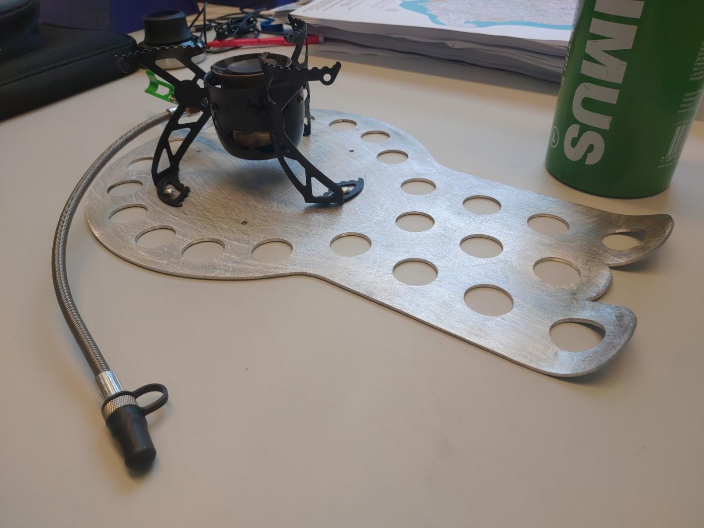 Hei! Jeg ble litt inspirert av denne tråden, så i dag laget jeg meg et eget primusunderlag av en aluminiumsplate. Den skal slankes litt mer på vekt ved at jeg skal bore litt mer i den. Det er gjenget hull slik at skruene (laget av aluminiumsnagler som er gjenget) kan flyttes slik at det kan lages til fester til andre brennere også. Her er litt bilder fra prosessen: https://photos.app.goo.gl/KBjnrg5D7QjNSS6f81 poeng
