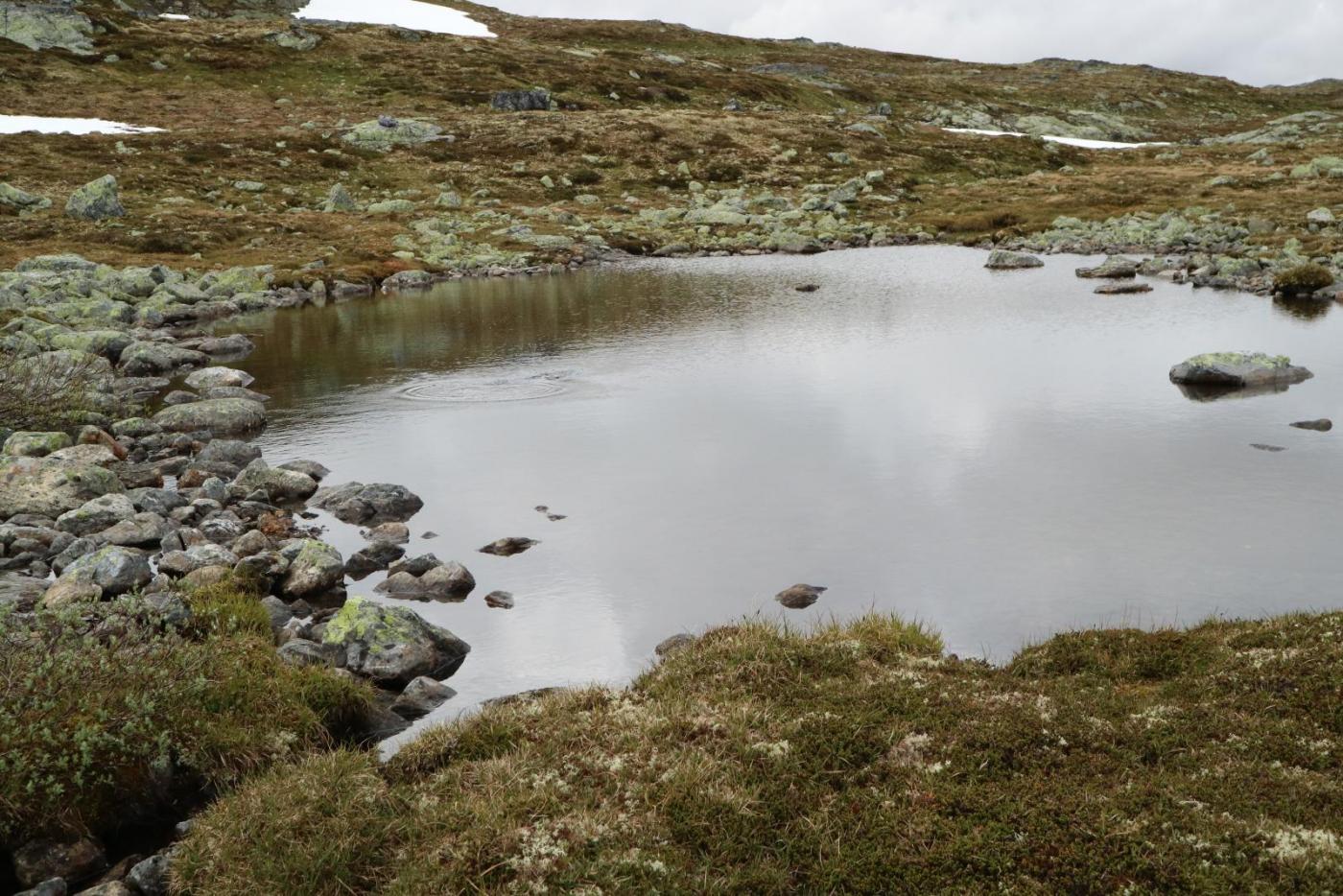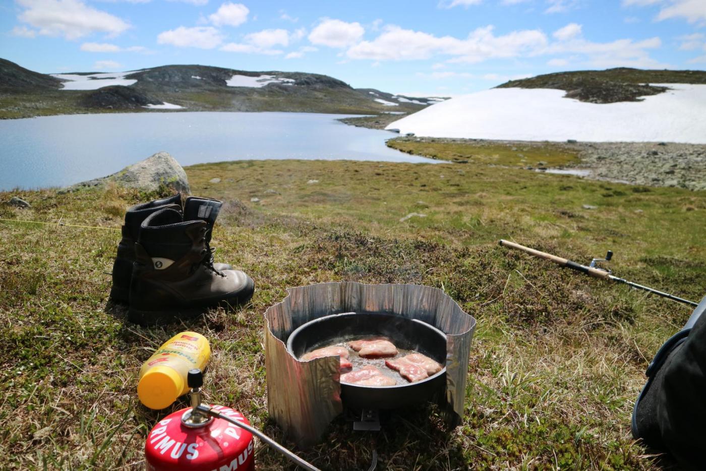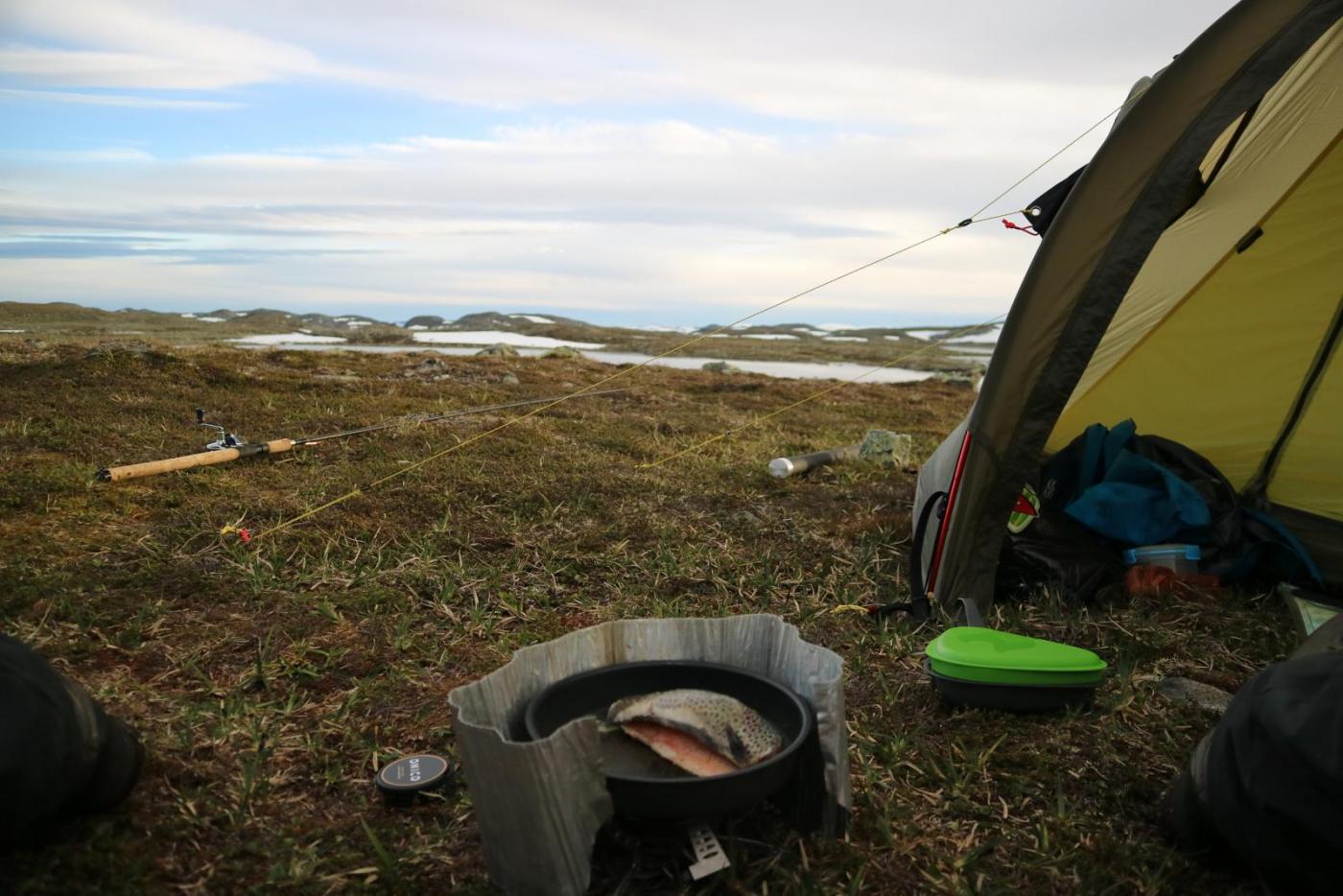 Tenkte bare å skrive en liten rapport fra ukesturen jeg hadde inn til dimedalsområdet på hardangervidda. Turen starta ved at jeg kjørte inn til Tinnhølen fra Oslo tidlig onsdag morgen. Det var nydelig vær da jeg kom fram, sola skinte selv om temperaturen var ganske lav, men i det store og det hele syns jeg dette lovet veldig bra, var jo tross alt bare meldt litt dårlig vær et par dager, resten skulle være sol og temperaturene skulle være helt ok. Så jeg gleda meg som en unge. Jeg begynte å gå innover med retning mot sandhaug. Etter i underkant av 3,5 timer lå sandhaug foran meg og jeg fant ut at det var på tide med å gå inn for å feire med en liten pils, en skal da kose seg på tur. Etter dette var det å hive på seg sekken igjen og fortsette turen innover mot Besso. Ca en time etter jeg forlot Sandhaug merka jeg som om det var noe som stakk meg i storetåa, så tok av meg skoen, og der så jeg bare en stor vannblemme, så derifra og videre gikk det ganske tregt denne dagen. Rett før ankomst besso går jeg av stien og følger elva oppover dimmedalen til jeg kommer til bessevatnet. Litt kortere enn det jeg hadde håpt å få til dag en, men beina ville ikke mer. Viste seg og at jeg hadde fått flere vannblemmer de siste par timene, hva som gjorde at det ble slik vet jeg ikke, har aldri skjedd før, så det er enda et mysterium, men det gjorde at jeg måtte passe på føttene videre mens jeg labba på denne turen. Tok noen kast i vannet men ingen kjenning med fisk så fant ut at jeg fikk ta kvelden, skulle jo videre innover dagen etter. Denne dagen hadde jeg ikke noen spesiel lang vandring foran meg og etter ca 2 timer var jeg ved min utsette teltplass. Satte opp teltet ved nøkkjatjørna. Syns dette var en strategisk fin plass med dimmedalshøgdene i ganske god nærhet, Hadde teltet her i et par dager og og fikk kasta i mange av vannene der oppe, alle vann var ikke blitt helt isfrie, men det meste var fullt fiskbart. Første dagen med forsøk oppe i disse høydene endte med en sluk mindre og 2 ørret på ca 400g. Så da ble det ørretmiddag allerede dag to. Livet så bra ut. Dag nummer to i høydene endte med en ganske fin fisk på 720g, men været hadde nå skifta til yr/regn, tåke og vind. Ikke akkurat det jeg hadde bestilt. Dag 4 på tur skulle jeg videre innover i fjellheimen var planen, sekken var pakket og skulle opp på skuldra da jeg høprte den gode lyden av plastikk som knekker. av med sekken igjen for å se hva dette kunne være....... Ble forsøkt fikset med sportsteip. Fikk da sekken på ryggen og kom meg innover fjellet og hadde en veldig fin vandring denne dagen, ikke så langt, som sagt måtte jeg justere ned avstandene litt pga endel vannblemmer. Fikk kasta litt i et par vann innover både med sluk og flue, ble til og med fisk på begge deler. Alle av typen små da det var litt overpopulasjon i de vanna jeg kasta i. Men er nå morsomt da det napper i hvert tredje kast. Fant ut etterhvert at jeg skulle komme meg til teltplassen, Her var det fint og sola viste seg fint fram denne dagen. Men fisken, ikke et napp hadde jeg i dette vannet, så om det var et bra vann eller ikke, det har jeg ingen anelse om. Planen nå var å komme meg inn på vestsida av besso-litlos stien. Inreachen min hadde gitt meg en vær mld som sa regn fra klokka 11 på formiddagen, så da ble løsningen at jeg pakket telt ned tidlig tidlig på morraen og tok beina fatt 0622. Klarte å få satt teltet opp innen regnet kom. Vandringen tok ca 3 timer. Lå ved et vann som virka å være ganske overbefolket. Fikk inn en liten halvtime med fisking før regnet kom uten et napp. Men etter en liten hvil i teltet og regnet lettet litt klarte jeg og dra 10 stk på land på kanskje 1 time. de ble alle dratt opp gitt til måkene som kultivering. Planen min nå var å bli her i et par dager å teste forskjellige vann i området. Fikk da også testa endel vann men det var lite liv å kjenne, selv om jeg fikk napp her og der, men vildig lite som ville sitte fast på kroken. Så denne dagen så ble det kanskje 10-15 napp og fisk som satt på men datt av igjen før jeg begynte å bli desperat med å få fisk på land. så at vinden løya litt og en bitteliten kullp med litt vaking, fant da fram fluestanga, monterte en mygg og lurte opp den gedigne ørreten på hele 100g kanskje, men dette måtte da bryte forbandelsen. Fant et par andre kulper som inneholdt litt større fisk, og nok en gang fungerte fluestanga som bare det, nå var jeg oppe i ca 200g, men så kom veldig mørke skyer innover og jeg rømte til teltet. Utpå kveldinga bestemte jeg meg for å komme meg opp til høgevarden for å få litt dekning å få ringt til dama men hadde med meg fiskestengene helt ttil foten av fjellet for å ha de klare sånn at jeg kunne fiske i alt jeg gikk forbi av vann. Etter å ha prata med henne en liten stund kom regnet tilbake og jeg la på og begynte på tilbaketuren til teltet. Men i det jeg går forbi et av vannene så løyer vinden og myggvaking tar til, jeg hadde en mygg klar på stanga og slenger fra meg haspel stanga og står godt inne på land fordi jeg ser at det vaker bare en 50 cm fra vannkanten, Jeg mater ut sen og treffer så og si perfekt med første kastet, ca 15 meter kast og bare de siste 30 cm av fortommen legger seg på vann, resten ligger på land, 5 sekunder senere så sitter fisken på flua. Og denne kjenner jeg at det er litt størrelse på. Fasiten blir 760g, en stykk fornøyd fjellfisker ser at det vaker enda, så jeg montere en ny mygg på og etter 30 sekunder sitter en ny fisk på 670g, bytter flue igjen og hiver ut, og får en siste på 650g etter at flua har vært på vannet i kanskje 10 sekunder. Så kom vinden og ødela hele morroa. Men dette var de morsomste 15-20 minuttene jeg har hatt med fiskestanga noengang. Neste dag er planen å gå til snero og sette opp teltet der, men 30 min før jeg ankommer området så åpner himmelen seg fullstendig og jeg bestemmer meg for å g