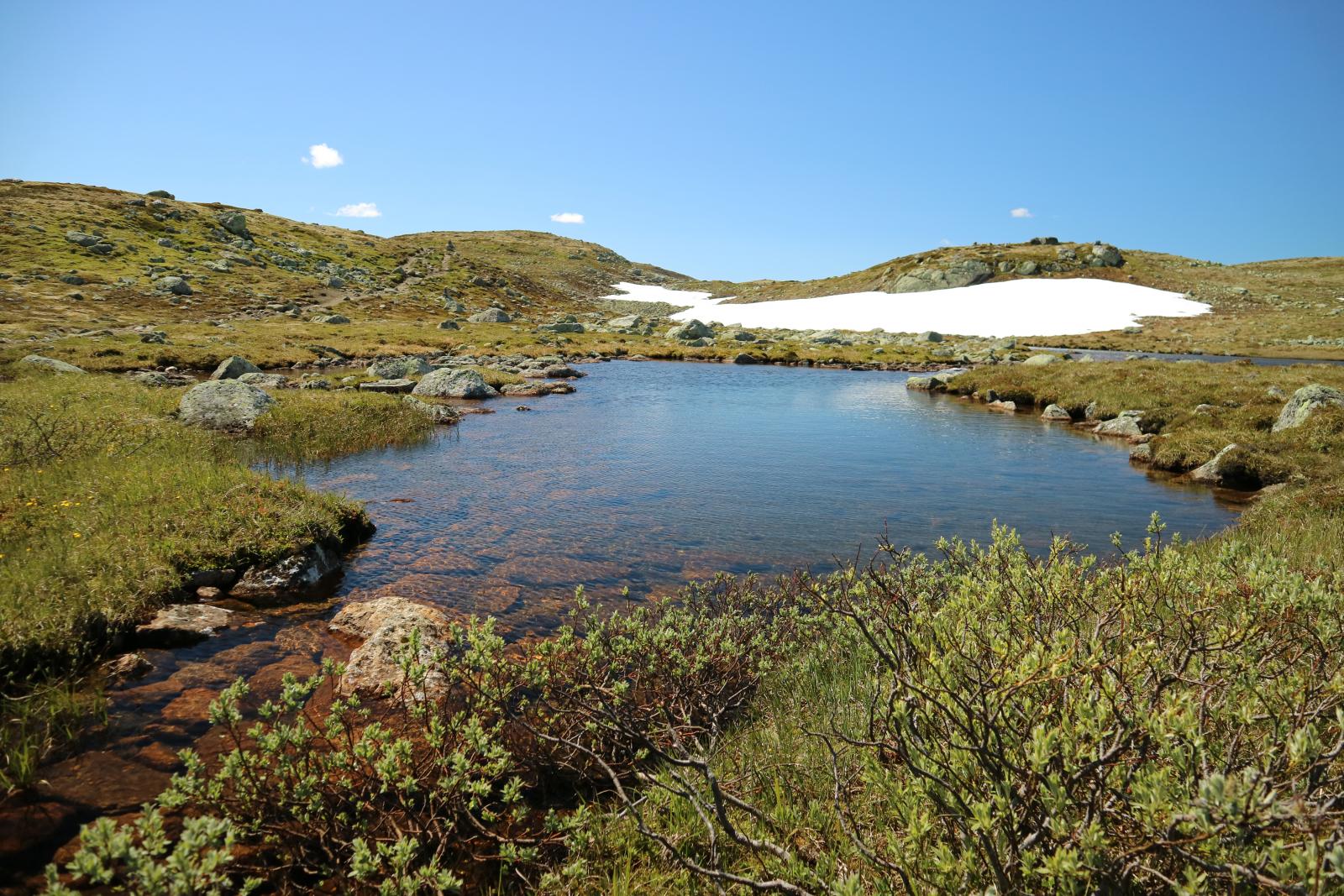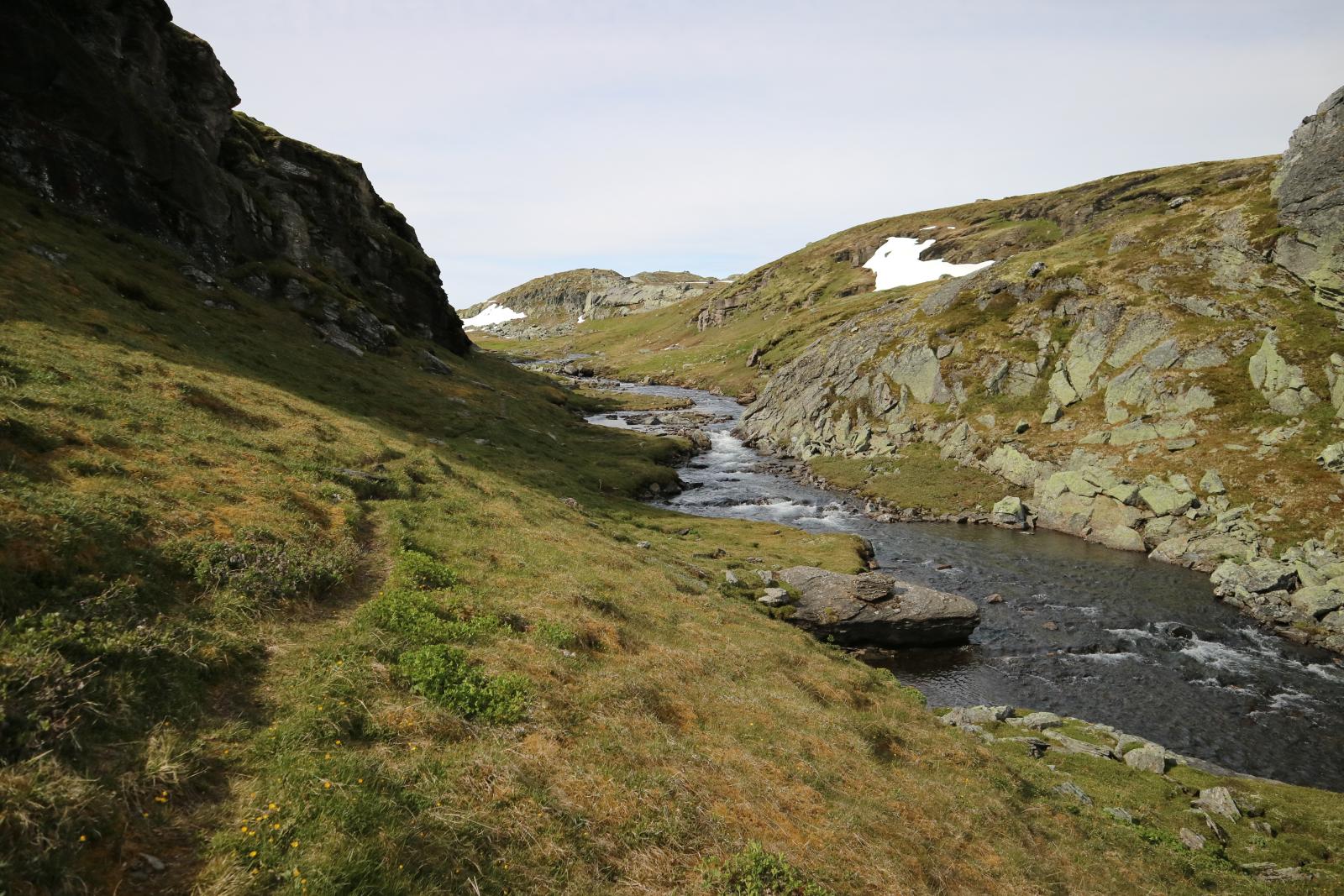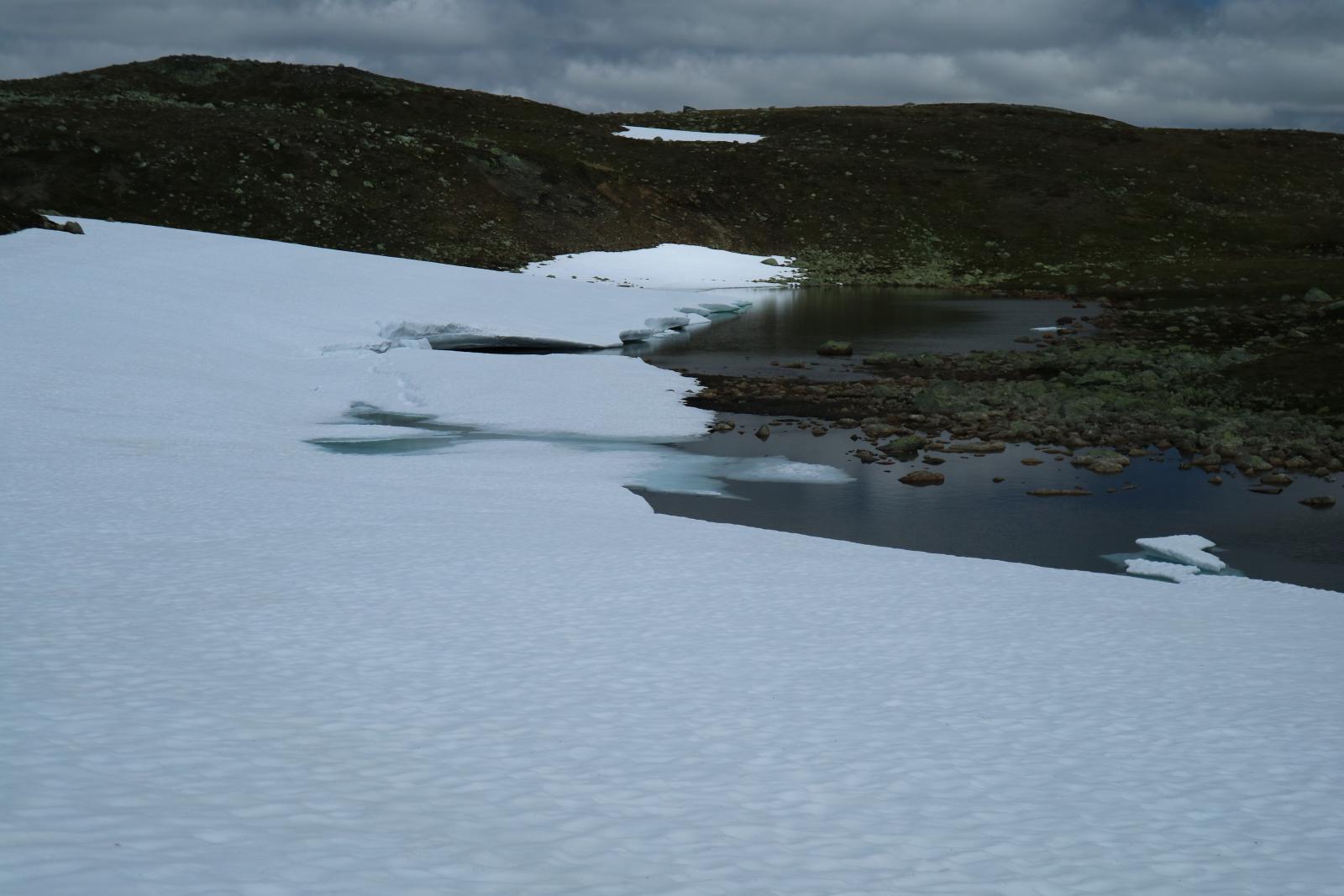 Tenkte bare å skrive en liten rapport fra ukesturen jeg hadde inn til dimedalsområdet på hardangervidda. Turen starta ved at jeg kjørte inn til Tinnhølen fra Oslo tidlig onsdag morgen. Det var nydelig vær da jeg kom fram, sola skinte selv om temperaturen var ganske lav, men i det store og det hele syns jeg dette lovet veldig bra, var jo tross alt bare meldt litt dårlig vær et par dager, resten skulle være sol og temperaturene skulle være helt ok. Så jeg gleda meg som en unge. Jeg begynte å gå innover med retning mot sandhaug. Etter i underkant av 3,5 timer lå sandhaug foran meg og jeg fant ut at det var på tide med å gå inn for å feire med en liten pils, en skal da kose seg på tur. Etter dette var det å hive på seg sekken igjen og fortsette turen innover mot Besso. Ca en time etter jeg forlot Sandhaug merka jeg som om det var noe som stakk meg i storetåa, så tok av meg skoen, og der så jeg bare en stor vannblemme, så derifra og videre gikk det ganske tregt denne dagen. Rett før ankomst besso går jeg av stien og følger elva oppover dimmedalen til jeg kommer til bessevatnet. Litt kortere enn det jeg hadde håpt å få til dag en, men beina ville ikke mer. Viste seg og at jeg hadde fått flere vannblemmer de siste par timene, hva som gjorde at det ble slik vet jeg ikke, har aldri skjedd før, så det er enda et mysterium, men det gjorde at jeg måtte passe på føttene videre mens jeg labba på denne turen. Tok noen kast i vannet men ingen kjenning med fisk så fant ut at jeg fikk ta kvelden, skulle jo videre innover dagen etter. Denne dagen hadde jeg ikke noen spesiel lang vandring foran meg og etter ca 2 timer var jeg ved min utsette teltplass. Satte opp teltet ved nøkkjatjørna. Syns dette var en strategisk fin plass med dimmedalshøgdene i ganske god nærhet, Hadde teltet her i et par dager og og fikk kasta i mange av vannene der oppe, alle vann var ikke blitt helt isfrie, men det meste var fullt fiskbart. Første dagen med forsøk oppe i disse høydene endte med en sluk mindre og 2 ørret på ca 400g. Så da ble det ørretmiddag allerede dag to. Livet så bra ut. Dag nummer to i høydene endte med en ganske fin fisk på 720g, men været hadde nå skifta til yr/regn, tåke og vind. Ikke akkurat det jeg hadde bestilt. Dag 4 på tur skulle jeg videre innover i fjellheimen var planen, sekken var pakket og skulle opp på skuldra da jeg høprte den gode lyden av plastikk som knekker. av med sekken igjen for å se hva dette kunne være....... Ble forsøkt fikset med sportsteip. Fikk da sekken på ryggen og kom meg innover fjellet og hadde en veldig fin vandring denne dagen, ikke så langt, som sagt måtte jeg justere ned avstandene litt pga endel vannblemmer. Fikk kasta litt i et par vann innover både med sluk og flue, ble til og med fisk på begge deler. Alle av typen små da det var litt overpopulasjon i de vanna jeg kasta i. Men er nå morsomt da det napper i hvert tredje kast. Fant ut etterhvert at jeg skulle komme meg til teltplassen, Her var det fint og sola viste seg fint fram denne dagen. Men fisken, ikke et napp hadde jeg i dette vannet, så om det var et bra vann eller ikke, det har jeg ingen anelse om. Planen nå var å komme meg inn på vestsida av besso-litlos stien. Inreachen min hadde gitt meg en vær mld som sa regn fra klokka 11 på formiddagen, så da ble løsningen at jeg pakket telt ned tidlig tidlig på morraen og tok beina fatt 0622. Klarte å få satt teltet opp innen regnet kom. Vandringen tok ca 3 timer. Lå ved et vann som virka å være ganske overbefolket. Fikk inn en liten halvtime med fisking før regnet kom uten et napp. Men etter en liten hvil i teltet og regnet lettet litt klarte jeg og dra 10 stk på land på kanskje 1 time. de ble alle dratt opp gitt til måkene som kultivering. Planen min nå var å bli her i et par dager å teste forskjellige vann i området. Fikk da også testa endel vann men det var lite liv å kjenne, selv om jeg fikk napp her og der, men vildig lite som ville sitte fast på kroken. Så denne dagen så ble det kanskje 10-15 napp og fisk som satt på men datt av igjen før jeg begynte å bli desperat med å få fisk på land. så at vinden løya litt og en bitteliten kullp med litt vaking, fant da fram fluestanga, monterte en mygg og lurte opp den gedigne ørreten på hele 100g kanskje, men dette måtte da bryte forbandelsen. Fant et par andre kulper som inneholdt litt større fisk, og nok en gang fungerte fluestanga som bare det, nå var jeg oppe i ca 200g, men så kom veldig mørke skyer innover og jeg rømte til teltet. Utpå kveldinga bestemte jeg meg for å komme meg opp til høgevarden for å få litt dekning å få ringt til dama men hadde med meg fiskestengene helt ttil foten av fjellet for å ha de klare sånn at jeg kunne fiske i alt jeg gikk forbi av vann. Etter å ha prata med henne en liten stund kom regnet tilbake og jeg la på og begynte på tilbaketuren til teltet. Men i det jeg går forbi et av vannene så løyer vinden og myggvaking tar til, jeg hadde en mygg klar på stanga og slenger fra meg haspel stanga og står godt inne på land fordi jeg ser at det vaker bare en 50 cm fra vannkanten, Jeg mater ut sen og treffer så og si perfekt med første kastet, ca 15 meter kast og bare de siste 30 cm av fortommen legger seg på vann, resten ligger på land, 5 sekunder senere så sitter fisken på flua. Og denne kjenner jeg at det er litt størrelse på. Fasiten blir 760g, en stykk fornøyd fjellfisker ser at det vaker enda, så jeg montere en ny mygg på og etter 30 sekunder sitter en ny fisk på 670g, bytter flue igjen og hiver ut, og får en siste på 650g etter at flua har vært på vannet i kanskje 10 sekunder. Så kom vinden og ødela hele morroa. Men dette var de morsomste 15-20 minuttene jeg har hatt med fiskestanga noengang. Neste dag er planen å gå til snero og sette opp teltet der, men 30 min før jeg ankommer området så åpner himmelen seg fullstendig og jeg bestemmer meg for å g