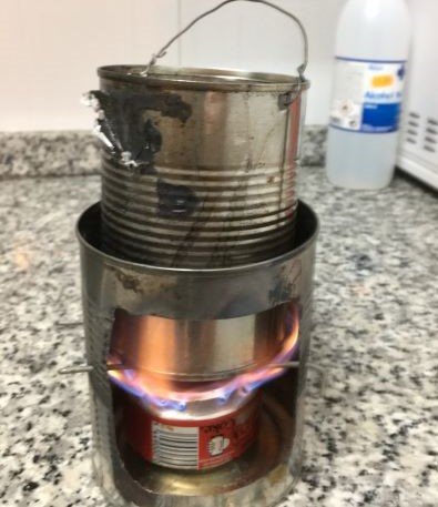 Er det noe slikt du mener?. Dette er noe jeg mekket sammen i all hast i Spania. Skulle på tur. Settet består av: 1 fiskebolleboks, 1 mindre boks, kokekaret, som oppbevares i fiskbollboksen 1 colaboksovn + kopp, pose m kaffe og lighter. Drivstoff 96% sprit (i Norge rødsprit) + to ståltråder. Brukes colaboksovn kan du droppe stålytådene for kokekaret settes direkte på. Arbeidsbeskrivelse: Skjær ut spalte for innseting av ovn. Bor ut noen 8 - 10 mm luftehull Skal du lage colaboksovn har jeg laget arbeidsbeskrivelse i Gjør det selv: "Siden jeg er noen tusen km unna: Colaboxovn!"1 poeng