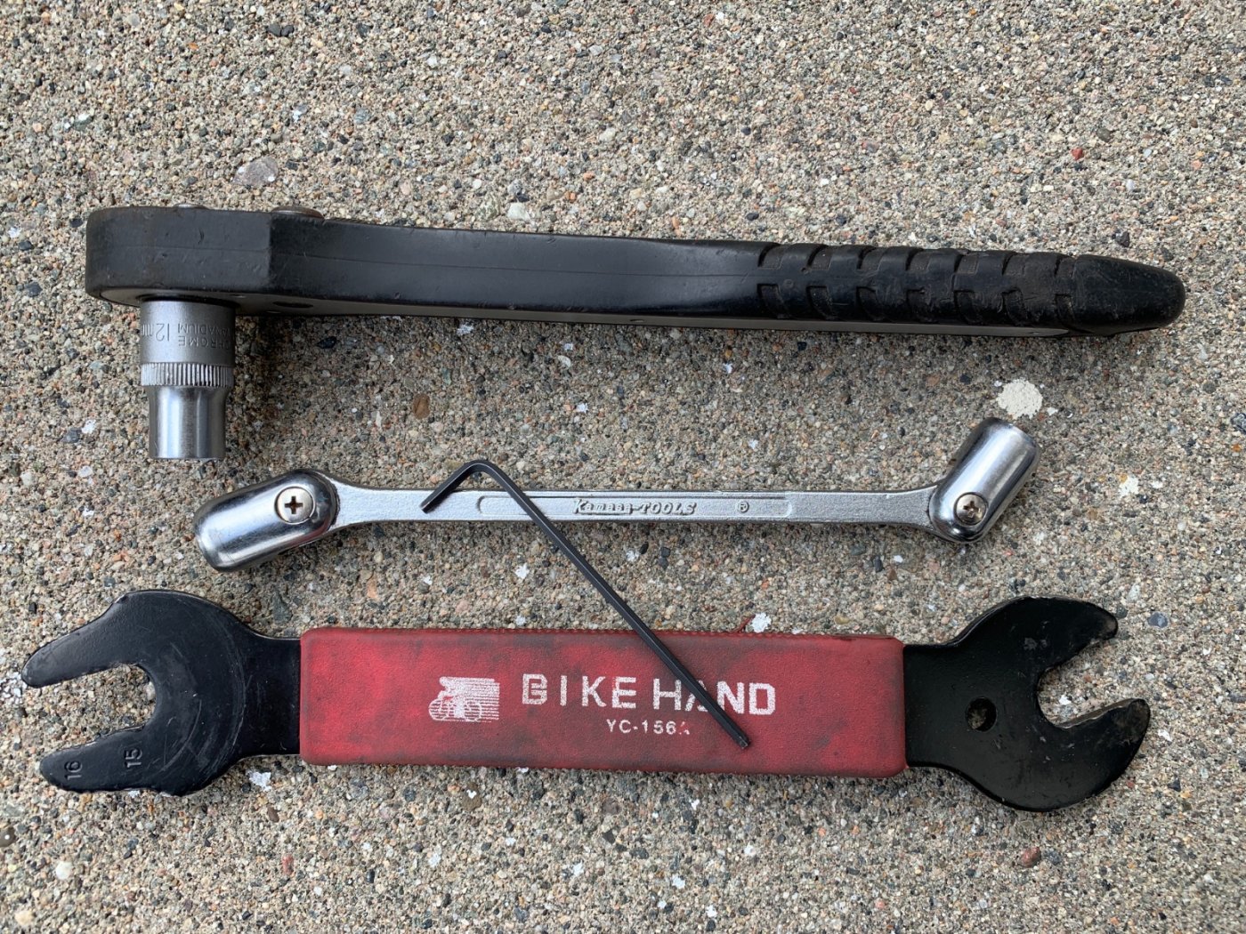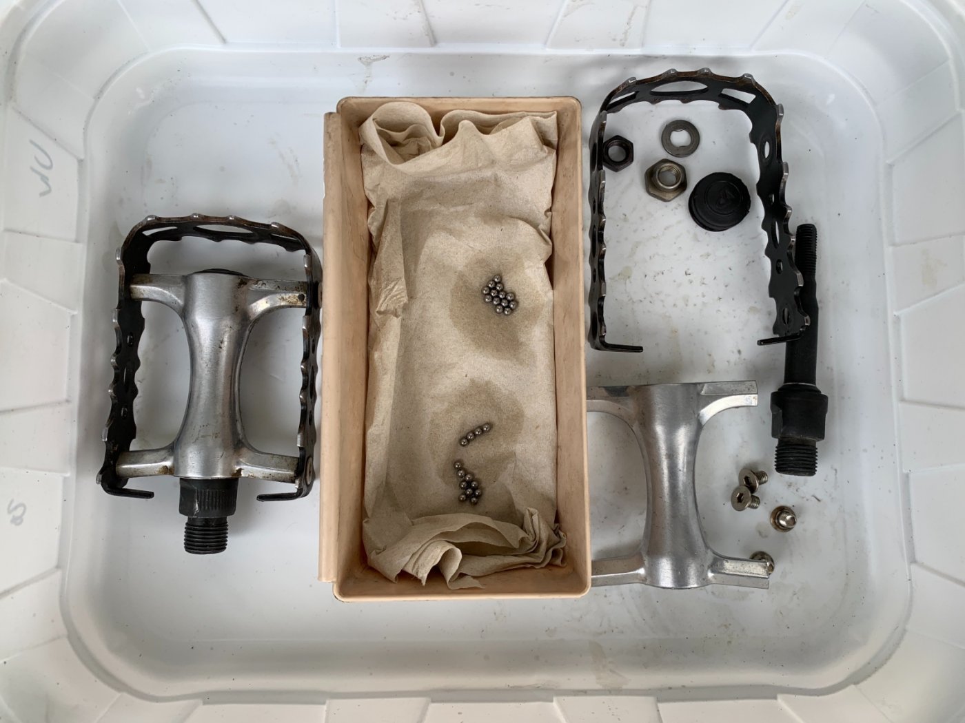 På de siste turene har jeg merket at pedalene på min gamle MTB har kjentes litt rufset ut og ikke snurrer som før. Sist høst var ualminnelig våt på mine kanter og sammen med hyppig spyling og vask har nok det lille fettet produsenten spanderer blitt vasket ut. Det nærmer seg turstart og service på pedalene må gjøres før jeg drar. Jobben er grei og gjøres på en times tid med et minimum av verktøy. Dette er hva jeg trenger til mine pedaler: Jeg håper at jeg ikke har ventet for lenge og har jeg flaks er både kuler og lagerbaner inntakt. Jeg demonterer og splitter aksling og pedal forsiktig over et plastbrett. Jeg vil ikke ha løse kuler på avveie vist de kan gjenbrukes. Som tenkt var det ikke noe fett som holdt igjen kulene og de røsser ut når aksling fjernes. Jeg teller spent opp og kommer til 26 stk. og de både ser og kjennes greie ut. Alle deler får et godt bensinbad som avsluttes med tørkefille så alt er så rent som mulig. En pedal ferdig rengjort, en igjen. Fetter aksling og lagerbaner og plasserer kulene, en og en med pinsett. Trer aksling forsiktig inn og på plass før konus, skive og kontramutter strammes. Sjekker at det ikke er for stramt og at pedal spinner lett rundt. På med støvdeksel og så er pedalene og jeg klar for nye eventyr.3 poeng