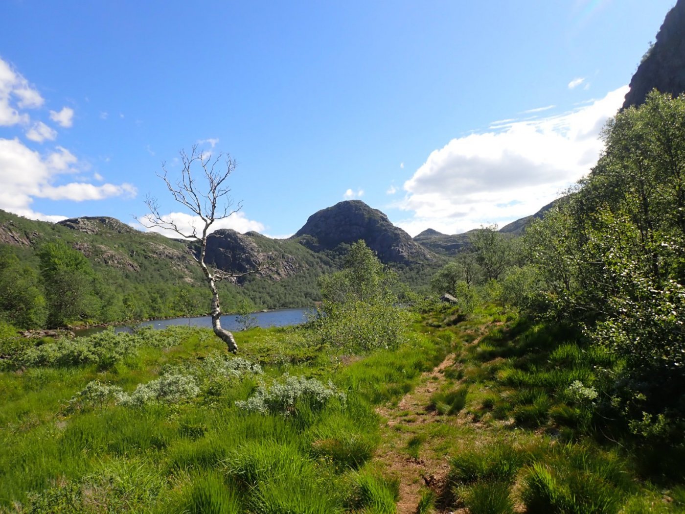 "Det er ikke spørsmål en gang!" Utbruddet kommer spontant når jeg spør om de ønsker å dra tilbake til Lomsdalen igjen. Her er det noen bilder fra en avslappende og flott tur til denne dalen som ligger så utilgjengelig til her sør i Nordland. Mange kaller det "Det gjemte landet", og det kan nok mye godt stemme. Nettopp disse bratte skrentene og dype fjordene har gjort det vanskelig å bosette seg her inne, og gårdsbrukene ble fraflyttet rett før og etter krigen. I lang tid var det snakk om å demme ned dalføret, men fornuften gjorde vel at det ble vern. Eller det var ikke økonomisk drivverdig å bygge det ut, men området er eid av det lokale kraftselskapet - men nå altså vernet som nasjonalpark. Det er meldt et flott maivær med sol og kalde netter. Det er startet en skysstjeneste inn fjorden slik at man kan få skyss innover. Børja er det desidert enkleste startstedet for ferdsel inn i Nasjonalparken. Det er fredag og klokken er 17 og jeg vet at det er lite med teltplasser mellom startstedet og Strompdalen. Vi tar en rådslagning på oppstarten og bestemmer oss for å gå innover, selv om ungene har hatt en lang dag på skolen. Ved broa over Tettingselva ved oppstarten av turen. Vi får en fin vandring innover, selv om sekkene er tunge. Vi har som vanlig ikke spart på noe og på menyen står bacalao og rundstykker når vi kommer fram. Tørsten slukkes i Sæterdalen. Det er veldig kupert innover og en god del steinur som må forseres. Helt utrolig at folk har bodd og livnært seg her inne gjennom mange hundre år. I Strompdalen blir vi møtt av noen lokale rein som beiter på innmarka. I tidligere tider var dette en stor gård, men nå gror markene igjen så bra det kommer til nytte. Svea 4 parkert utenfor skogskoia Dag nummer 2: Noen vet å slappe av! Rett bortenfor hytta kan man se over til Lomsdalen, men først må man ned til elva og fossen som kommer ned til høyre i dette bildet, og så må man forsere en del ur før man er inne i selve dalføret. Vi kommer til elva som kommer fra Breivatnan - den fossen er stor Alltid godt med en kald dusj her, men best i solskinn som i dag. IMG_1379.mp4 Vi bruker dagene til å fiske og vandre litt i området. Dalføret har lite besøk og vi er de første som besøker Lomsdalskoia i år. Grunnen til at jeg vet det er at ingen har kostet opp etter musefesten som har vært der. Det er en krakk med hengslet lokk med matlager inni, og her har musa gravd seg rett i gjennom 1" bord og hatt fest.. jeje Prøving av mors sekk.. Vi får en liten ørret i tjønna. Far sjøl har kastet hele kvelden uten napp, men når mor kommer biter den på første kastet! På morningen på mandagen kl 0700 - fantastisk morgenstund Klare for avmarsj - sekkene skal på og vi skal gå ut. IMG_1420.mp4 Vi bruker bare 3.5 timer ned til sjøen, og dette syns vi er akseptabelt.Det blir mye vind og bårer på hjemturen. Friskt over fjorden. Ikke siste gangen vi drar innover hit nei!1 poeng