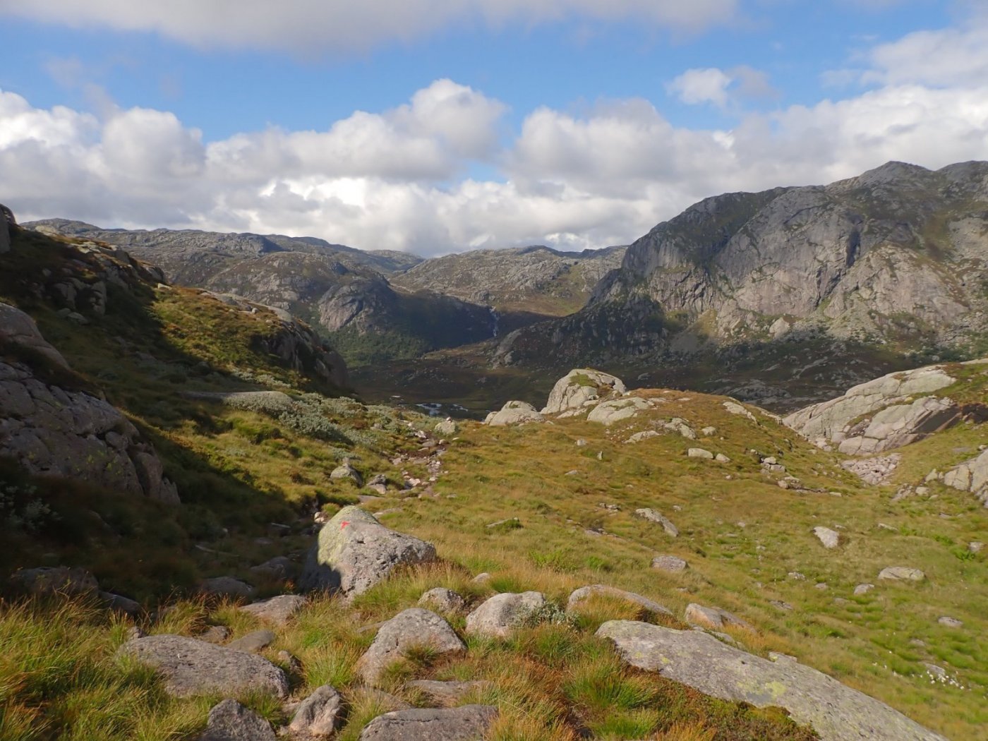 En flott heiatur. Det er ikke alltid like lett å bli enig med meg selv om hvor jeg skal på tur. Det blir jo mange turer på de samme stiene, og jeg er ikke alltid klar for nye «eventyr». Det er litt skremmende å gå på nye plasser, spesielt alene. Og det er ikke blitt lettere å overtale meg selv om å forsøke noe nytt etter som årene går. Denne uka var Yr mindre samarbeidsvillig enn det jeg har opplevd den siste tiden. Det ble meldt om regn og ruskevær. Drittvær mener mange. I hvert fall ikke noe kjekt vær å starte en tur i. Dørstokkmila er lang og tung i dårlig vær. Først langt på kveld tirsdag tenkte jeg på en dagstur til Blåfjellenden som en mulighet. Det var lenge siden jeg hadde forsøkt meg på den turen – trodde jeg. Nå er det heldigvis enkelt å sjekke hvor lenge siden, og svaret var at jeg hadde gjennomført en slik tur i året de siste årene. Før det, ble det mange dagsturer til Blåfjellenden i året. Det var med andre ord på tide med den årlige turen frem og tilbake til Blåfjellenden dette året også. Det er ikke en ny tur, snarere tvert om. Dette er en tur jeg antakelig har gått opp mot 1000 ganger om jeg rekner frem og tilbake som to ganger. En tur hvor jeg omtrent kjenner hver stein og tue. Nå er det jo ikke sånn at turen blir kortere og med færre bakker opp og ned. Likevel blir det enklere og kjappere å komme fram når føttene går omtrent på egen hånd. Ikke minst blir det mindre krevende når bakkene er kjent, og jeg kommer til toppen uten at pulsen er på topp. Jevn fart er det som teller. Turen er likevel ikke «enkel». Den krever sitt. Starten går fra Høgaleitet i Hunnedalen og ender ved hytta på Høgaleitet ved Blåfjellenden. Begge stedene er 600 moh, og høyeste punkt på turen er omtrent 900 moh. Inne i mellom er det noen bakker Tilsammen er det nesten 7-800 høydemeter. Avstanden er målt av mange. De fleste får turen til å bli 8,4 kilometer, og for meg tar turen nå litt over to timer om forholdene er bra, og 2,5 timer i regn og styggevær. Omtrent 4 kilometer i timen sier litt om hvor «tung» turen egentlig er. Vanligvis er det mulig å holde større fart, med lett sekk og gode forhold. Det skulle være bra vær onsdag. Med litt sol mye skyer, lite vind, men med noe lavere temperatur enn det vi har hatt den siste tiden. Flotte forhold for en tur i heia. Her var det bare å hive sekken og komme seg avgårde opp til Hunnedalen. 1 time hjemmefra – i god fart.... Selv med en lett sekk, og virkelig flotte forhold, tørt og bra sti, ble det ikke «lett». Jeg hadde en tung dag innover. Litt overraskende for meg, da jeg hadde tatt det med ro noen dager, og burde ha overskudd i masser. Planen var å jobbe litt inne på hytta, ta den tiden det trengtes og så slappe av en god stund. Jeg behøvde ikke å være tidlig hjemme, og kunne bruke hele dagen, og noe av kvelden om det trengtes. Etter to-tre timer var småjobbene gjort, og jeg hadde både spist og slappet av. Jeg var klar for tilbaketuren. Den gikk merkverdig lett. Det var ikke snakk om «tung» tur i det hele tatt. Litt små-springing i bakkene og noen kjappe steg opp små kneiker. Omtrent som i gamle dager. Jeg hadde funnet overskuddet jeg savnet på vei inn. Det ble en kjekk tur tilbake, med sola i ansiktet og den lille trekken bakfra. Nesten perfekte forhold. Turen over heia hadde tatt to timer. Nesten god gammel fart. Det var jeg god fornøyd med, spesielt siden jeg ikke var noe særlig stiv da jeg kom til bilen. Det var jeg dagen etter....1 poeng