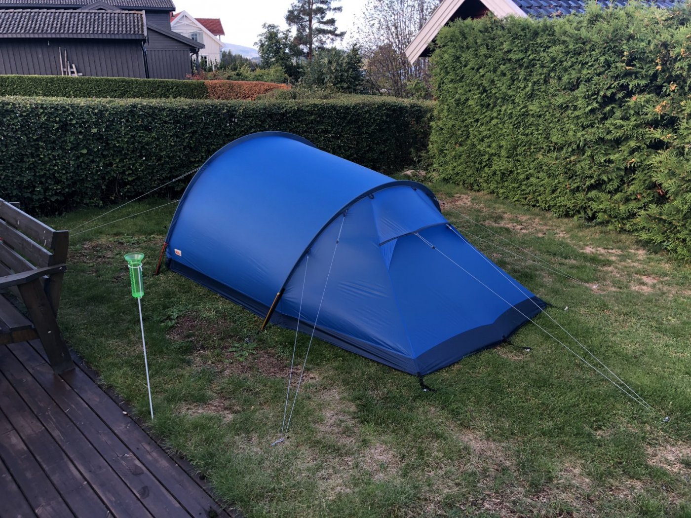 Nerdealarm! Ikke gå videre i posten om du ikke er en nerd på detaljer. Førsteintrykket er at det er lett, gjennomført i alle detaljer med kvalitet. Oppgitte mål stemmer og det må vel være første gangen jeg har opplevd. At det kan åpnes i begge ender etc tar jeg ikke med, da det er mere en gimmick på insta enn praktisk bruk etter min mening. Står veldig fint, også i vind, men merker at duken er tynn. Bare en strammer, hadde ønsket 2 stk, da kan du surre bardunen rundt pluggen og er litt lettere å justere, men veier mere. Enkelt å sette inn en cleamcat til. Gode barduner med reflexer, ikke spart på kr her. Solid god innfesting Plass til dobble stenger, strammefunksjon på duken, men ikke på pluggen. Solid innfesting. På endene er det stramming på pluggene. Store gode ventiler, som står fint i vinden. Det er tykkere duk langs ytterkanten på ytterteltet. Innvendige lommer Usedvanlig god avstand mellom inner og yttertelt. Mål invendig lengde til 221 cm. Målte bredde litt inn til 155 cm Det er mesh i alle ventiler, men du kan ikke åpne disse. Det begrenser litt av ventilasjon. Her har de spart en del vekt. Men det at det ikke kan åpnes gjør at det kan lages uten en del forsterkinger. Takhøyde på høyeste punkt 96 cm Men det skrår mye i enden målte 40 cm som jeg syns det minimum bør være. Vipps da er liggelengden bare 171 cm 9 LW underlag, bare plass til 2 stk. Stor ventil inni, men kan ikke tettes, glidelås så du kan lukke yttre ventil. Bruksanvisning i tyvvek Stangpose i kraftig materiale Samme system som Hilleberg, hvor ekstraleddene har en klaff på sin lomme. Egen lomme for repsett Stort tapebit for gulv, stofflapper Rør, ekstra bardun, sysakene og seamsealer 17 plugger, det er med 2 ekstra, første gang jeg har opplevd det. Repsaker veier 126 gram Pakkposevekt, her er det mye å spare. Mye info på pakkposen, som er i overkant teknisk med mye detaljer. Noen vil elske den, men jeg hadde nok byttet til en enklere. Stangposen kan klipses på utsiden. Vekt telt og stenger. Mye info på bruksanvisning Totalinntrykket etter en natt med litt regn og opptil 14/15 m/s med vind er bra. Gjennomført kvalitet, lett, men litt lavt og litt liten liggelengde for meg på 194. Men det er sjelden bra avstand mellom inner og ytterduken, så soveposen ble ikke våt på enden slik dom jeg hadde trodd. Er mere et 2 manns telt enn et 3 manns i mine øyne, men det gjelder det fleste telt.1 poeng