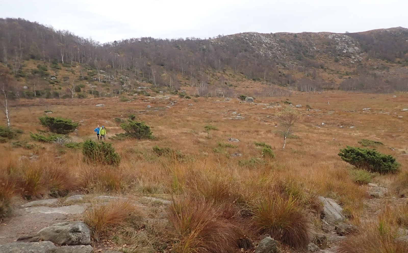 6. En flott treningstur. Det har blitt mye tur dette korona-året. Uten styrketrening innendørs, har det blitt både 6 og av og til 7 turer i uka. Det er mye tur det. Med mye flott turvær har det blitt svært mange skikkelig kjekke turer. Med tur hver dag, kan det ikke bli lange turer hver gang. Det må bli en del korte turer. Derfor har det blitt mange turer fra Sele til Hellestø og tilbake, fra Gramstad og ut fra Sælandsskogen. Dette året har det også blitt en rur til Blåfjellenden en gang i uka. Ikke alltid med en overnatting, et par ganger har det blir dagstur frem og tilbake. Det er nå blitt en offisiell langtur, som egentlig har gått bedre enn fryktet. De gangene jeg har gjort denne turen (og frem og tilbake til Sandvatn på dagen) så har jeg alltid trodd at det ville bli en tung og lang tur. Og så har det gått mer enn greit. Det har vært skikkelig kjekke turer. «Du blir god i det du trener på» er et gammelt jungelordtak. Jeg kan gå god for det. Dette året har formen blitt bedre og bedre ut over sommeren og høsten. Kondisjonen er blitt bedre og det tar lengre tid før jeg kjenner det på kroppen at jeg har gått langt og lenge. Likevel har det etterhvert blitt «tyngre» og «tyngre». Det kan være at styrketreningen tar mer på kroppen enn hva jeg tror. Det er likevel kjekt å gå tur, så spørsmålet blir, som vanlig, hvor skal turen gå? Dette året har det blitt en del turer fra Gramstad, og jeg har til og med klart å gå noen nye stier. Jeg har tråkket inn Bjørndalsmyra noen ganger, og tatt Mattisrudlå, Bjørndalsfjellet, Fjogstadnuten og av og til Dalsnuten som dessert. Med mye regn den siste tiden, ville nok Bjørndalsmyra være temmelig våt. Likevel var det den turen jeg satset på denne gangen. Det er mindre bil på Gramstad nå enn tidligere i sommer, men fortsatt er det en del folk på tur selv midt i uka. Jeg møtte en del folk rundt Bjørndalsfjellet, men ingen innover myra. Jeg tråkket igjennom i myra og ble våt. Jeg har vært våt noen ganger før. Det var helt vanlig at fjellsko ble gjennomvåte i reg, før Gore-Tex. Det var noen svake spor innover myra. Antakelig hadde det gått folk eller dyr i stien tidligere på dagen. Selv om det er enklere å komme opp til Mattisrudlå via Bjørndalsmyra, var jeg likevel ganske andpusten da jeg sto under toppen, og kikket bortover mot Bjørndalsfjellet. Med noen bakker både opp og ned ville det bli mer pusting og pesing før jeg sto på den toppen. Bakken ned mot veien er grei – å gå ned. Jeg kom til veien i bra form og alle motbakkene var glemt. Bakkene opp mot Fjogstadnuten er en serie med kneiker, men siden jeg har gått disse en god del ganger, kom jeg også opp her med pusten under kontroll. På vei ned mot Kvitemyr, ble det til at jeg også ville forsøke meg på Dalsnuten. En «omvei» på en drøy kilometer, men igjen med en del høydemeter. Jeg kom til topps. Det gikk kjapt ned samme vei jeg kom opp, og rundt Revholstjørn og tilbake til Gramstad gikk kjapt. Det var fortsatt litt krefter igjen til en liten spurt på slutten. Det ble en kjekk og grei tur. Litt lengre enn jeg egentlig hadde planlagt, men med god form og kondisjonen under kontroll, var en tretimers tur helt greit.