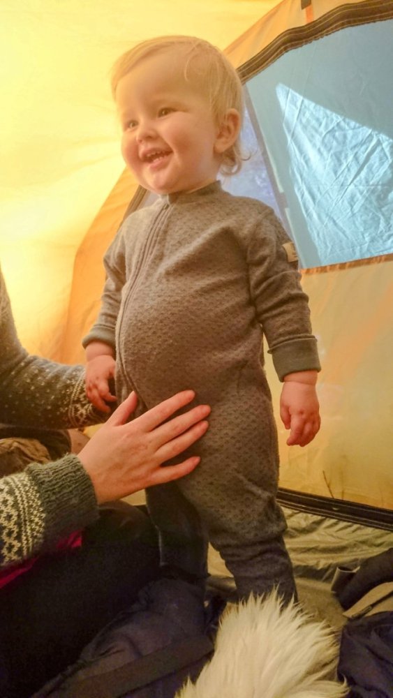 Bare ikke ha så høye ambisjoner for selve turen. Jeg og fruen tok med oss 1,5 åringen ut på overnattingstur. Det gikk såpass bra at vi overnattet i telt når vi dro på sommerferie. 1. Vi gikk 200 meter, og jeg gikk flere turer. Han sov i vognbaggen sin. 2. Det var lite insekter på "prøveturen" noe som kan være problematisk med så små barn. Vi fikk aldri behov for mygghatten. Takk gud for det. 3. Han synes telt var veldig gøy, så den kvalitetstiden vi skulle ha ved bålet etter han hadde lagt seg (med babycall) ble aldri noe av. Her var han i toppform 2 timer etter ordinær leggetid Turen var koselig den, men vi var veldig uambissiøse med tanke på lenge og varighet (200 meter hjemmefra i ei natt). Bilturen rundt Helgeland var hakket sprekere.1 poeng