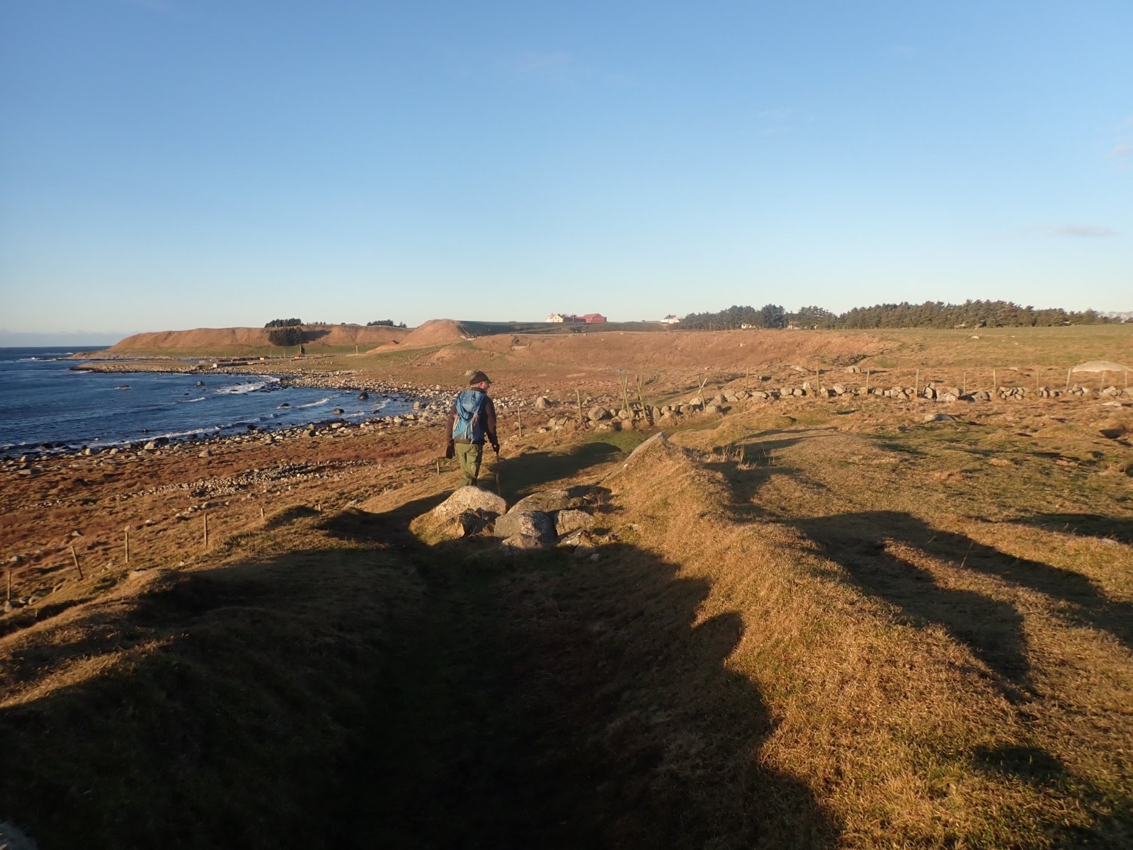 Solskinn og noen få varmegrader. Det var nok en av disse dagene med frost om natten, og fortsatt is og litt snø på bakken om morgenen. Temperaturen bare så vidt over null, og avgjort ikke forhold for en tur i høyden. Det har vært mange slike dager så langt denne vinteren. Fortatt er det lenge til våren. Broderen ville gjerne være med, men er fortatt ikke klar for en skikkelig langtur. 2 timer går greit, men over tre timer er langt. Broderen sliter med å komme i form etter mange små opphold på grunn av helsa. Vi ble enige om at turen fra Hå mot Varhaug ville være en grei utfordring. Det ville i hvert fall være mulig å snu når som helst. Hele turen er på 18 kilometer frem og tilbake. Broderen diskuterte en tur på 14 kilometer. Noe han mente var nok, i den formen han er i for tiden. Vi avtalte å møtes på Hå. Med to biler kunne broderen snu når han ville, og jeg kunne eventuelt gå alle 18 kilometerne mellom Hå og Varhaug gamle kirkegård – med retur. Grunn til at vi valgte å gå tur langs nordsjøen, er nettopp nordsjøen. Varmen fra havet holder for snø og is unna. Og selv om det kan være frost noen hundre meter lengre inne i landet, så er strandsonen ofte frostfri. Det passer både broderen og meg. Midt i uka regnet vi ikke med det ville være mye folk ute på tur. Det var likevel ganske mange biler på parkeringsplassen ved Hå gamle prestegård. Men ikke frost. Det var en dag med skikkelig bra turvær. Tørt og sol og lite vind, selv temperaturen virket grei. Uten vind kan selv 2-3 grader være greit. Vi startet i et greit tempo. Det er jo ikke menge bakkene på denne turen, men lengden gjør at det ikke lønner seg å ta ut i for høyt tempo. Noe har vi jo lært opp gjennom årene. Broderen går vanligvis kjappere enn meg, mens jeg holder ut noe lengre. Mer trening gjør forskjellen. Når vi gå sammen blir det mitt tempo. Jeg først og broderen bak. Bakken var myr tørrere enn hjemme. Over markene gikk det greit. Det virket som om vi hadde valgt rette plassen for tur denne dagen. Vi er fortsatt i starten av januar. Dagene er korte og skyggene lange. Det var morgenlys da vi startet, og sola holdt på å gå ned da vi sto ved bilen. Det var sol omtrent hele turen. Flott turvær er ingen selvfølge i januar. Vi gikk rundt Reimebukta i fin stil. Ved Grødaland spurte jeg broderen om hvor langt han hadde tenkt seg. Han ville gjerne se nedover mot Varhaug, og vi ble enige om å snu. før vi gikk ut på stranden fra veien. Det ble selvsagt til at vi gikk litt lengre, men ved skipsopphuggingsplassen ble det stopp og en liten pause. Før vi tok fatt på nesten 7 kilometer tilbake. Det gikk nok litt kjappere på tilbakeveien. Det er litt mindre å se på og det blir ofte også færre foto. Etter omtrent tre timer sto vi igjen ved bilen. Broderen var godt fornøyd med turen, men han mente vi hadde snudd i rett tid. Det hadde blitt en litt «lengre» tur tilbake enn han hadde trodd. Vi hadde hatt en flott tur i flott vær - på beina, i starten av januar.1 poeng