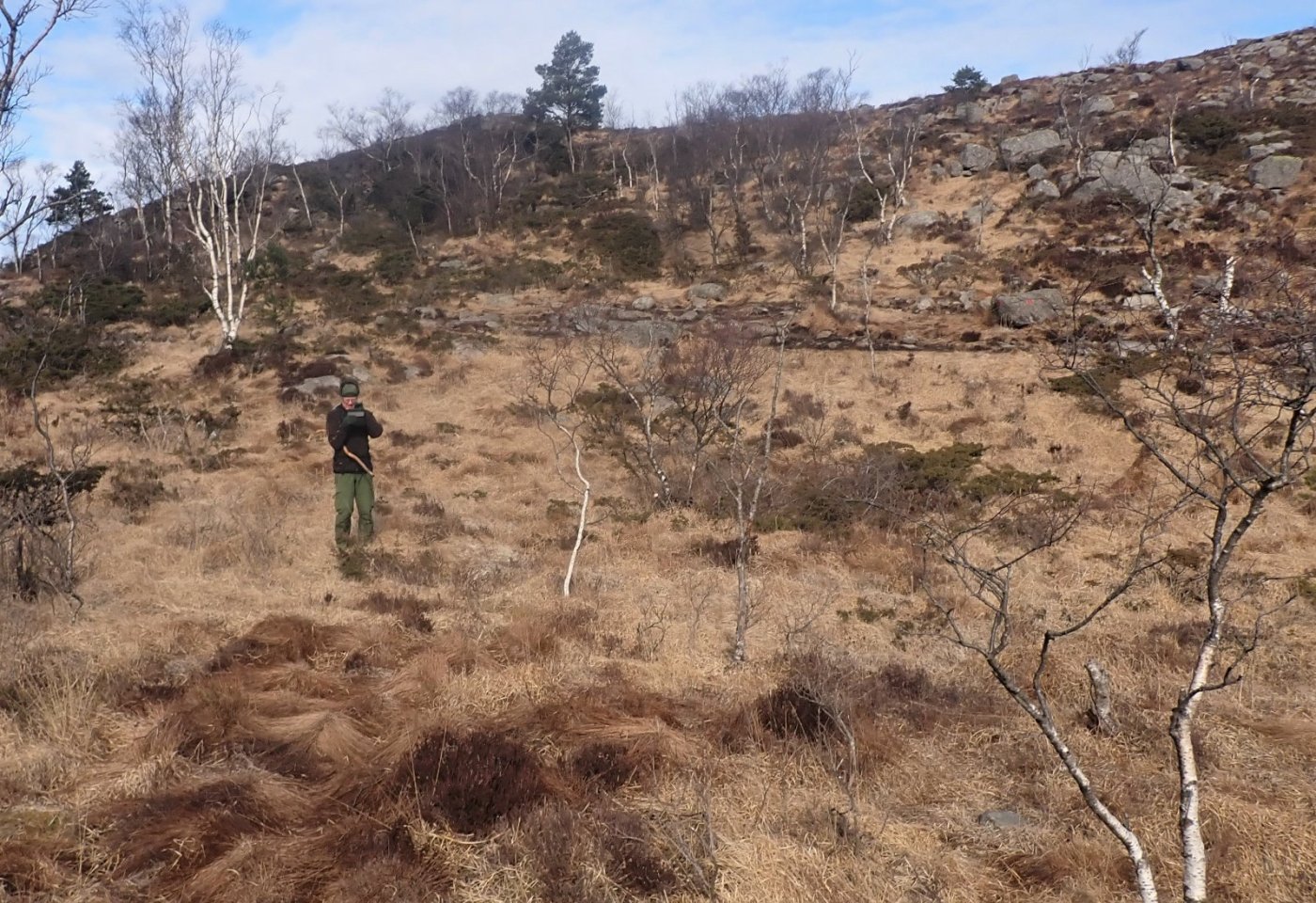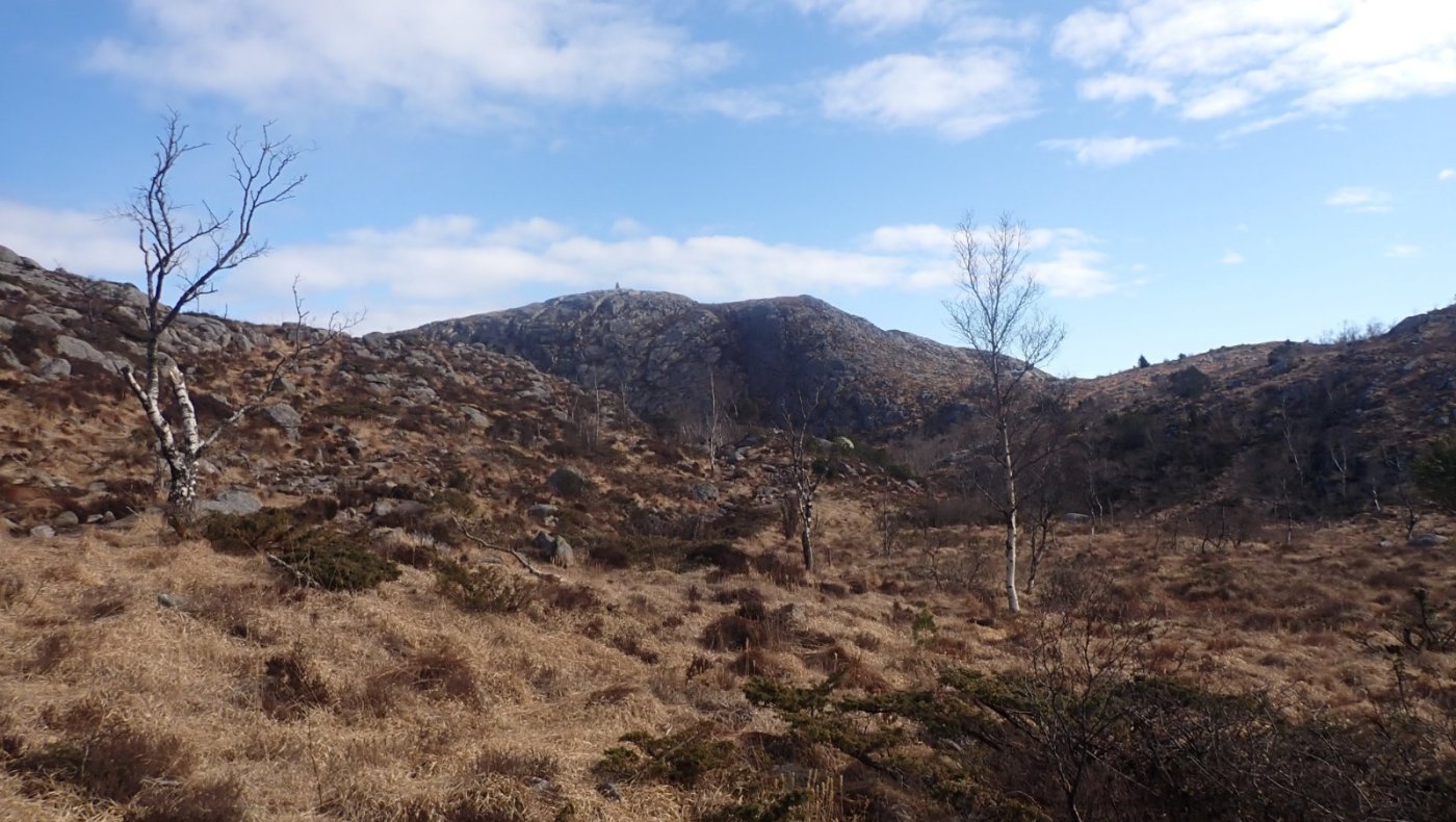 Bjødnali, Ristøl, Lauvlia og Breilia på en gang. Enkelte turer er så flotte og kjekke at jeg ønsker å del opplevelsen med andre. En av disse, litt spesielle turene, er fra Sælandsskogen til Bjødnali, videre til Ristøl og Lauvlia og Breilia , før kursen setter mot bilen. Broderen mener han ikke er i form til langturer, og da mener han turer på over tre timer. Han har ikke formen inne for slike turer, og sliter litt på våre vanlige turer når de blir over to timer eller så. Spørsmålet var om jeg kunne klare å få med broderen på denne turen. Han var med til toppen av Ristølnuten, og det gikk grei. Turen rundt Ristøl og Lauvlia, er ikke så mye lengre. Nå var det ikke lenge siden jeg hadde gått den samme turen, men siden det er få andre turer over det jeg kaller «hei», så var jeg likevel klar for en ny akkurat likedan tur, og turen er jo virkelig flott. Det ble snakket om denne turen, og da jeg foreslo «å prøve» turen, var broderen straks med. Han kjørte likevel egen bil til Sælandsskogen, og hadde på den måten mulighet for å snu om det ble nødvendig. Som forrige gang ble det til at vi tok opp Urdådalen istedet for over Blåfjell. Det er omtrent samme avstand, men opp Urdådalen har nok ikke så mange høydemeter. Nå er likevel Urdådalen verdt å få med seg. Det er en spesiell tur oppover. Stien, eller nærmest veien er bygd av en mann, og er lagt flott oppover langs elva. Selv om det er godt opparbeidet sti, så er det likevel mye «villmark»natur med skog og elvebrus. Når det i tillegg er vår med knopper på trærne og fugler som synger og sol – fra blå himmel, er det så nær perfekt som det kan komme. Vi måtte stoppe opp et par ganger bare for å få med oss naturen på sitt beste. Oppe ved gården måtte broderen få med seg treet sitt før vi begynte på bakken opp mot Ristølnuten. Nå skulle vi ikke til selve toppen .men over gjerdeklyveren ett stykke før toppen. På Ristøl var det folk, og vi fikk en liten prat. Det er alltid kjekt å høre om stedet vi er på, og her fikk vi en innføring i historien og litt til. Vi valgte å gå direkte mot Lauvlia, og ikke om traktorveien som kommer fra Snorestad. Myra var forholdsvis tørr, og siden jeg hadde gått her tidligere, hadde vi ikke problemer med å finne fram. Nå er det å gå fra Ristøl til ovenfor Lauvlia temmelig enkelt og rett fram. Vi gikk inne imot lia og holdt oss unna myrene, helt greit. Det var en virkelig flott tur i marka, over myr og langs en nesten usynlig sti. Her oppe er det foreløpig ikke noe grønt å se. Våren er et stykke unna. I sollyset ble markene og myra nærmest gylden. Litt lengre mot Breilia, ble det stopp. I sol og i le for den lille trekken, ble det varmt. Med varm te og kjeks, var det skikkelig hyggelig å sitte slik midt i naturen og stillheten. Det ble en lengre stopp enn det vi vanligvis tar oss tid til. Nede ved «Skogen», ble det til at vi også tok med turen rundt Engjavatnet, i stedet for å gå veien mot Sjelset. En flott tilleggstur, og på en så fin dag ville vi ha med så mye av naturen som mulig. Ved bilen var både broderen og jeg fornøyd med en tur vi begge ville huske. Det var en tur som jeg gjerne kunne gjøre flere ganger. Med pauser og stopp ble det 4 timer på tur. Vel anvendte timer.1 poeng