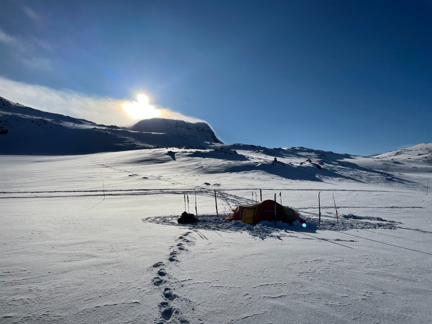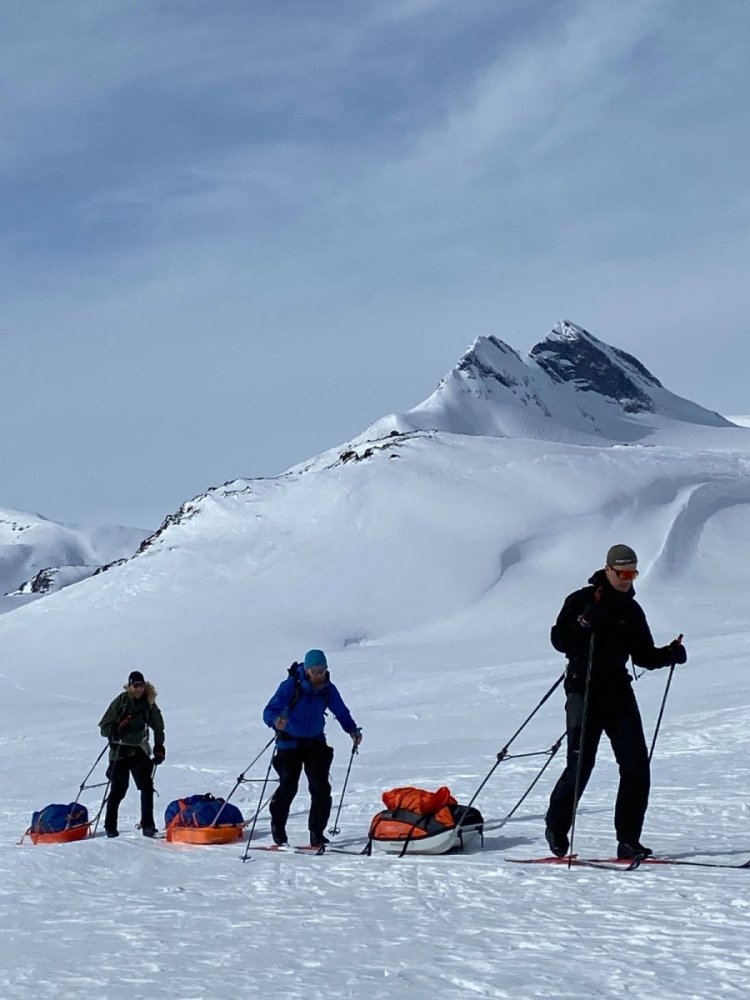 Da er Massiv endelig gjennomført etter to år med Covid-utsettelser. Og for en timing! Med unntak av dag 1, 2 og 5 hadde vi sol fra skyfri himmel hele turen! Vi var 3 stk som startet turen sammen fra Sota lørdag i palmehelgen. Vi gikk med relativt likt utstyr; Amundsen ski og pulker med faste drag (2stk med Paris, siste med Fjellpulken X-country). De faste dragene fungerte utmerket hele turen, og vi følte at de ga oss litt mer kontroll på pulken i traverseringene (som det er en del av de første dagene). Fjellpulken var mer retningsstabil i traverseringene, men vinglet MYE mer enn Parispulkene i nedoverbakkene. Her kommer min rapport fra 14 fantastiske dager i fjellet: Dag 1 - Sota-Nørdstedalsseter 22,5km 998m stigning Opp 05.30 på Sandane. Kjapp frokost og kaffi før vi pakket Hiacen og var klar for avreise ca kl0600. Vær og kjøreforhold var dårlige så var ikke på Sota før kl10.30. Klar for marsj ca kl11. Bommet på ruta i starten og havnet inn i bratt og tettvokst terreng. Ikke optimalt med pulk og nysnø. Generelt en veldig tung etappe med 900 høydemeter de første 9km. Over breen fikk vi sterk vind og snødrev, men vi hadde hele tiden sikt til neste kvist. Herlig å endelig starte på nedkjøringen fra breen, men traverseringen langs vannet før hytta var brutal på skare. Måtte av med ski her. Med vonde bein og slitne kropper ankom vi Nørdstedalseter kl19.00, akkurat tidsnok til herlig 3retters middag i godt lag med 16 andre gjester. Ompakking, tørking og organisering av utstyr før leggetid ca. 22.00 Dag 2 Nørdstedalsseter-Sognefjellshytta 21,1km 1101m stigning Opp 07.40 for å gjøre klart utstyr før frokost. God frokost buffet. Klar til marsj sammen med resten av gruppa ca. Kl 10. De andre går uten pulk så de forsvant i første bakke. Vi var innstilt på at skulle bli en del motbakker i dag også men hadde lest at denne etappen skulle være noe enklere enn gårsdagens. Det skulle vise seg å ikke stemme. Vi brukte ca 4 timer til det vi trodde var toppen og byttet til kortfeller for å renne ned til og gå over Storevatn. Lite visste vi om at de tøffeste motbakkene lå foran oss. Det ble en mye lengre og tøffere etappe enn vi hadde forventet med over 1100 høydemeter stigning på 21km. Etter mye slit ankom vi Sognefjellshytta 10timer og 35min etter at vi forlot Nørdstedalsseter. Vi spiste god middag, oppgraderte til rom med bad og ble på rommet til leggetid ca22.15 Dag 3 Sognefjellshytta-Skogadalsbøen 14km 265m stigning Søvnen var dårlig etter gårsdagens slit. Det er tydelig at kroppen jobber på høygir med restituering av slitne muskler. Vi fikk i oss en veldig god frokost og var klar til marsj ca 9.30. Veldig fin etappe med variert vær og terreng. Startet med noen stigninger og traverser første 5km før det gikk bratt nedover noen km. Det ble noen solide fall og utfordringer med pulkene nedover. Siste del av etappen gikk slakt nedover i fin bjørkeskog. Vi ankom Skogadalsbøen kl14 og brukte ettermiddagen til å hvile kroppene i stua. Hytta var iskald da vi kom, så vi måtte sitte med uteklærne på hele dagen. Det er nye bestyrere på hytta, så de får være unnskylt siden da kun hadde vært der noen få dager før vi kom. Service og mat var uansett upåklagelig. Vi ble godt kjent med mange kjekke folk på turen og det var god drøs i stua hele ettermiddagen og kvelden. Einar, som er en rutinert turlegende fra Tjelta, har gått i front på alle etappene og vi var glade for sporene hans i dag. I seng kl22.30 for å samle krefter til en ny hard etappe i morgen. Dag 4 Skogadalsbøen-Fondsbu 22km 860m stigning Våknet i en fremdeles iskald hytte etter en ny natt med dårlig søvn, men etter frokost kom vi ut til en strålende dag med blå himmel og vindstille. Klar til marsj ca kl09. Etappen startet i kupert bjørkeskog før vi begynte på stigningen opp Uradalen. Nydelig utsikt med Hurrungane bak oss og Uranostind i front. Brukte god tid på etappen med mange pauser i sola for å nyte utsikten. Framme på Fondsbu etter 7,5t. Etter noen dager i fjellet med relativt lite folk rundt oss føltes det som å komme til afterski i Hemsedal da vi ankom Fondsbu. Veldig trivelig kveld på hytta med nydelig kveite til middag, sang av Solbjørg, påskequiz (som vi vant) og god prat. Siste kveld med gjengen vi har blitt kjent med så det blei litt seint:) Foto: Anna Lovinda Hulbak Dag 5 Fondsbu-Slettningsbu 22,2km 400m stigning Etter en solid frokost på Fondsbu tok vi farvel med Einar og gjengen vi hadde gått sammen med til nå. Videre blir det kun oss. Turen i dag startet med en liten stigning opp fra Eidsbugarden til Tyinvannet. Vi tok ruta som går over vannet og gikk ca 11km rett fram. En tålmodighetsprøve. Da vi kom til andre siden startet vi rett på bratt stigning opp mot Slettningsbu. Været var dårlig fra vi startet stigningen med snø/regn i lufta og lite sikt. Etter noen timer oppover fjellet ankom vi Slettningsbu og var godt fornøyd med at det ikke var noen andre på hytta. Dette er den første selvbetjente hytta og det var en stor overgang fra oppvartning og fullt hus på Fondsbu til en rolig kveld alene her. Fin hytte! Dag 6 Slettningsbu-Sulebu (Suleskar) 24,5km 780m stigning Vi våknet uthvilte etter en god natt på hvert vårt rom og spiste havregrøt til frokost. Vi smeltet snø til drikkevann og la i vei på turen mot Sulebu. Første del av turen gikk i flatt terreng over noen vann. Her var det stor rypeaktivitet og vi fikk de tett på. Så startet bakkene nedover mot Kyrkjesætra. Lange fine nedkjøringer med ok snø. Noe klabbing på fellene. Nede på Kyrkjesætra valgte vi å følge ruta som går østover i skiløypene for å slippe klabbing. Det ble noen brutale stigninger opp til Sulebu, men føret var greit i tråkket spor. Oppe på Sulebu hentet vi proviant og fortsatte videre over Suleskaret for å finne teltplass for natten. Vi fant en fin plass og rigget camp ca kl19. Vi la oss rett i soveposene for å hvile mest mulig før morg