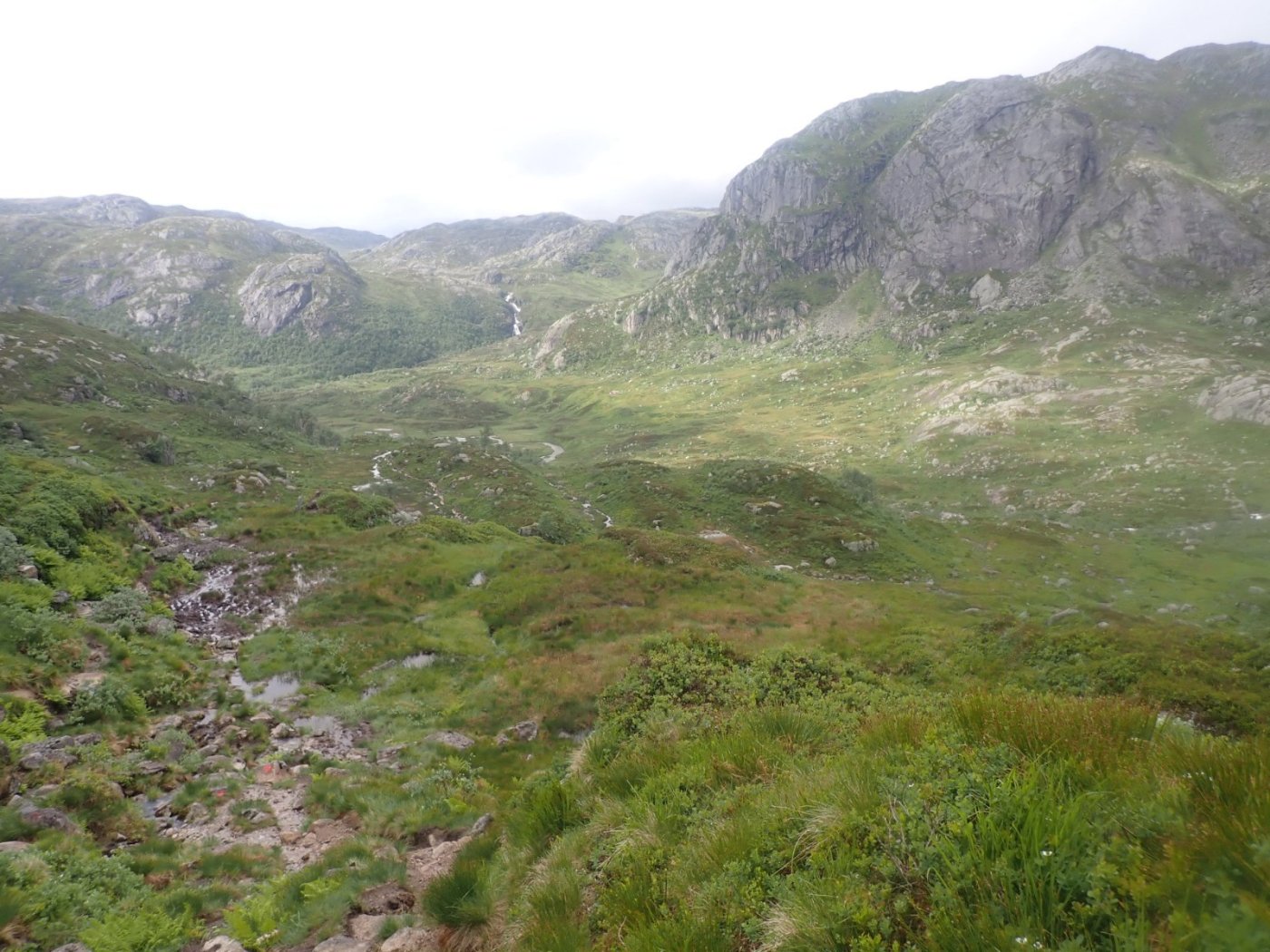 Øverst i Øvstebødalen hang det mørke skyer nedover fjellsidene, og det rant hvite bekker ovenfra. Det må tydeligvis nettopp ha kommet ned en skikkelig bøye. Det så heller ikke ut til å bli opphold med det første.