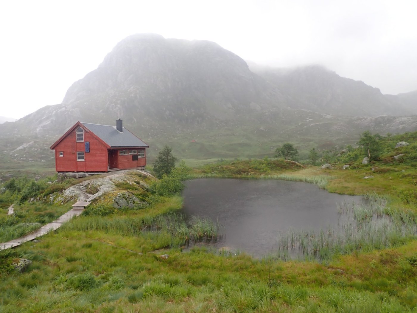 Det ble mer regn da jeg kom ned til hytta. Heldigvis var det varmt inne og det var vann i bøttene. Jeg fikk av våte og kalde klær, og satte meg ned med varm te og skoleboller. Det kom folk, og jeg fikk besøk av to jenter fra Sauda på annekset. Vi fikk en hyggelig kveld.