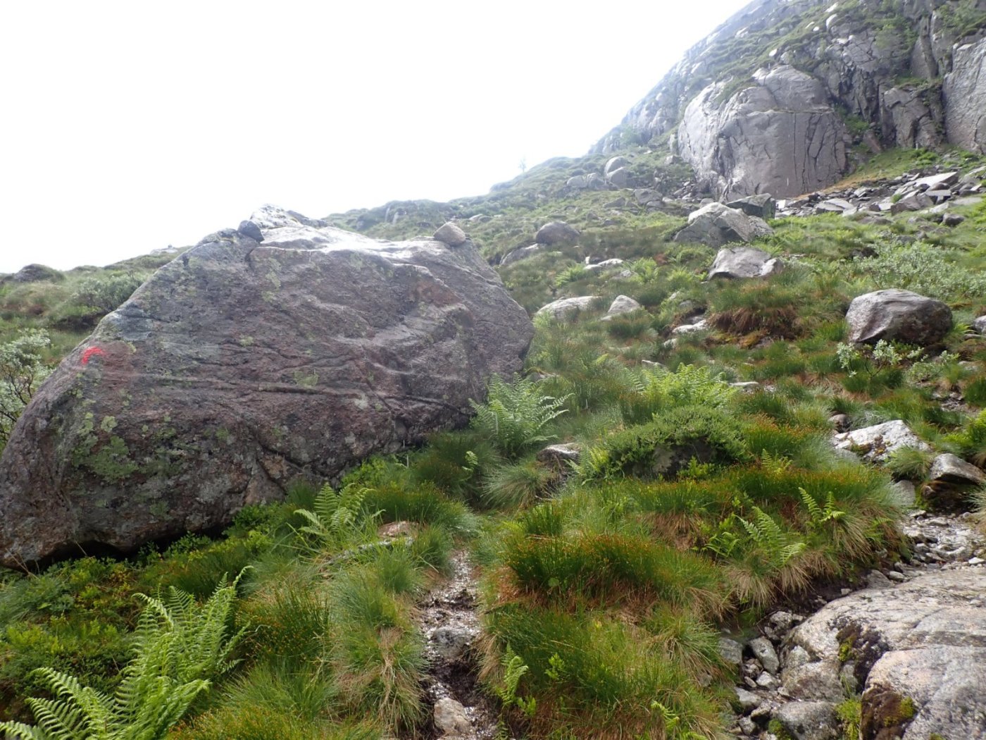 Et lite stykke oppe i bakken gikk jeg på et helt følge med blide jenter. De hadde kommet fra Blåfjellenden, men hadde hatt været bakfra. Så heldig var ikke jeg. Regnet, som ikke holdt seg vekk spesielt lenge sto rett i mot.