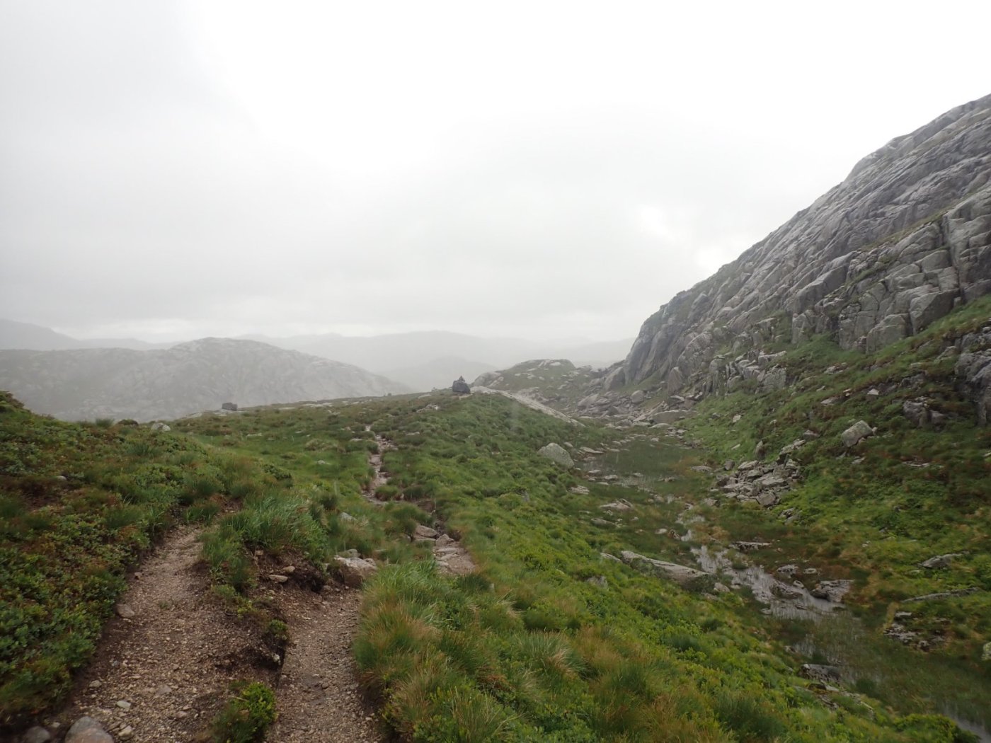 Nå rettet været seg for i en periode. Denne gangen fikk jeg opphold øverst, hvor vinden fikke best tak. Det ble litt «oppoverbakke» selv om det egentlig gikk slakt nedover. Uten regn, vavr det helt greit, men fortsatt synes jeg det bråker mye når vinden uler rundt ørene.