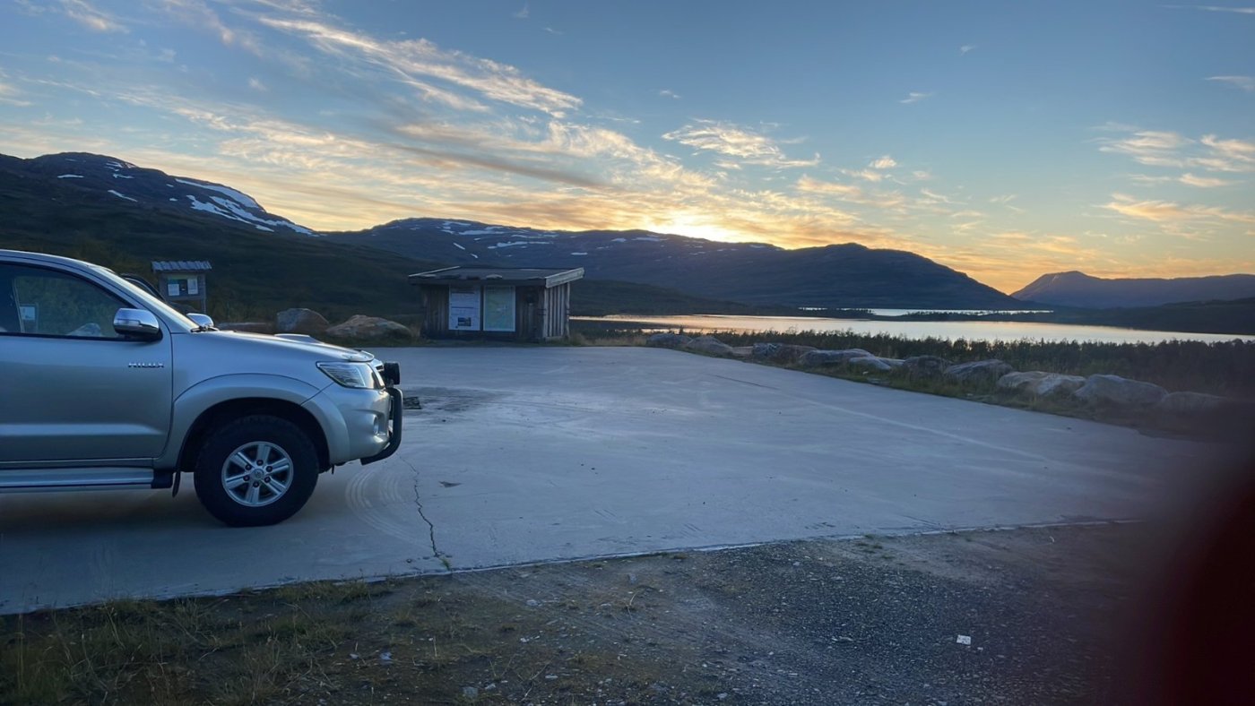 ✔ Juli En litt amputert juli. Det var mye dårlig vær, og de dagene det var fint var jeg gjerne på tur med familien. Det ble en overnattingstur i telt til Beiarfjell og et par turer med utgangspunkt i svigers sin hytte. Molte sitter utenfor teltet på Beiarfjellet Lek med et gammelt bein Finfin ørret På tur hjem. Jentungen speider mot parkeringa og gleder seg til å komme hjem. Vi var ei lita uke på hytta, og gikk fine turer derfra. Svigers sin hytte Når man skal lage egg og bacon til hele familien tar man den største panna man har! Hver kveld var det vakkert kveldslys. Dette bildet ble tatt rundt midnatt, og midnattsola gjør sitt til å lyse opp himmelen (selv om ho var for lavt i forhold til terrenget). Tur til Nydalvatnet Alt i alt ble det litt turer i juli. Selv om ingen av disse var direkte til jobb, kan man jo si at turen til Beiarfjell i det minste var i et av de verneområdene jeg er med å forvalte. Litt tynt ja.. Men jeg følte jeg måtte prioritere å dra på tur med familien de dagene vi fikk godt vær.3 poeng