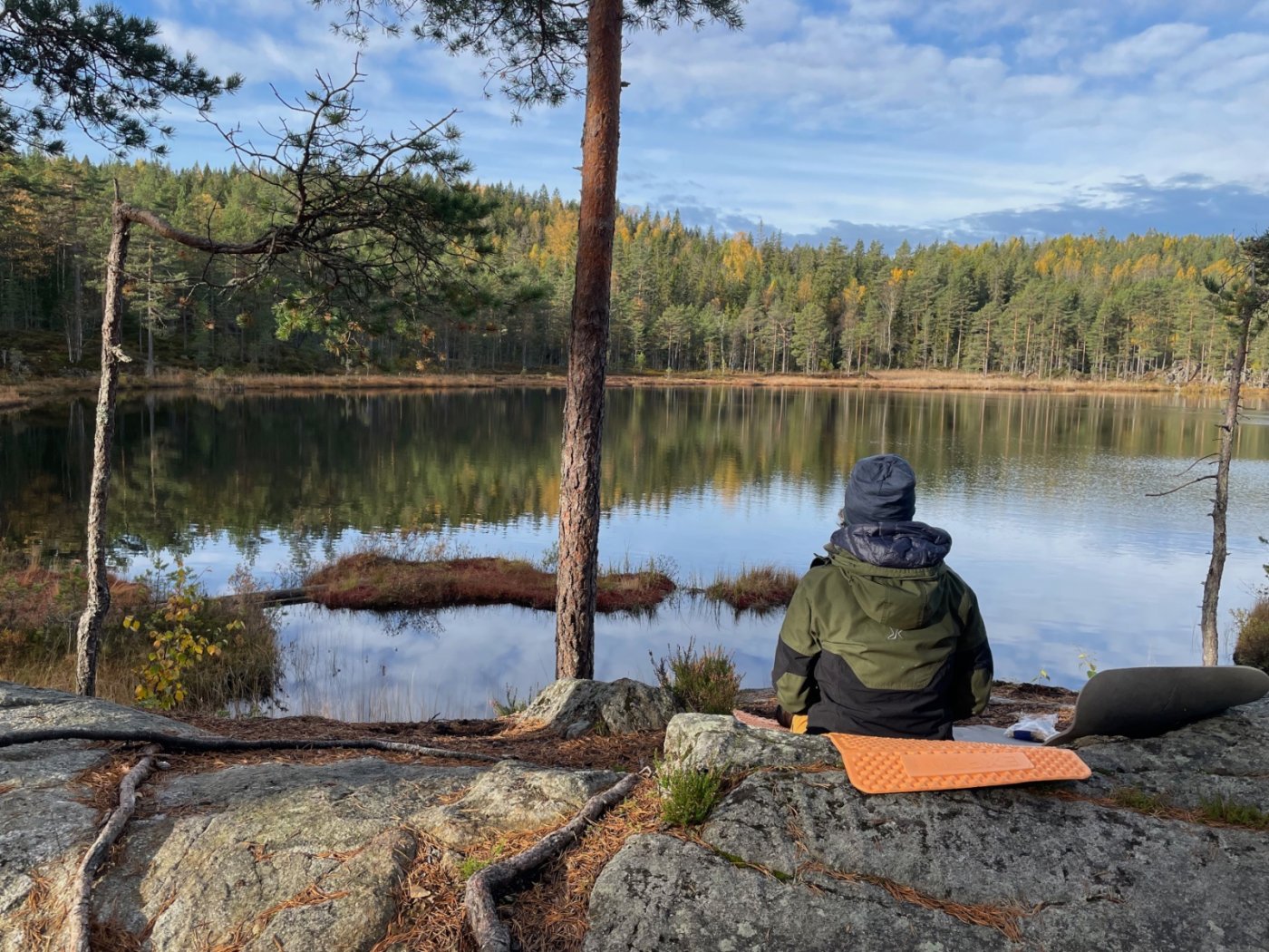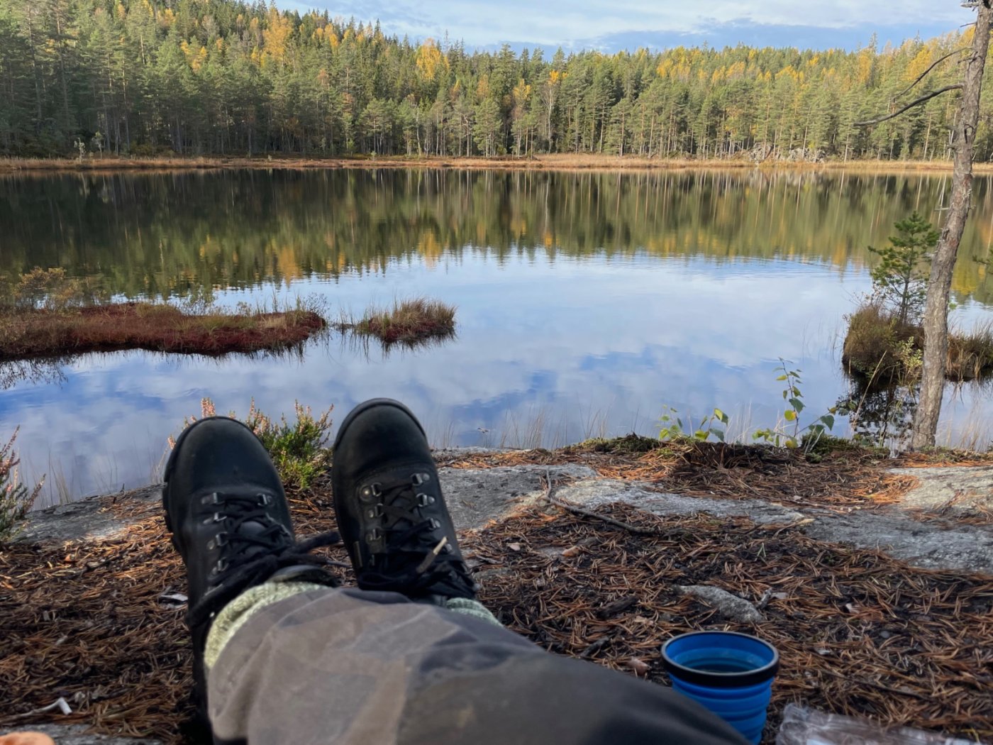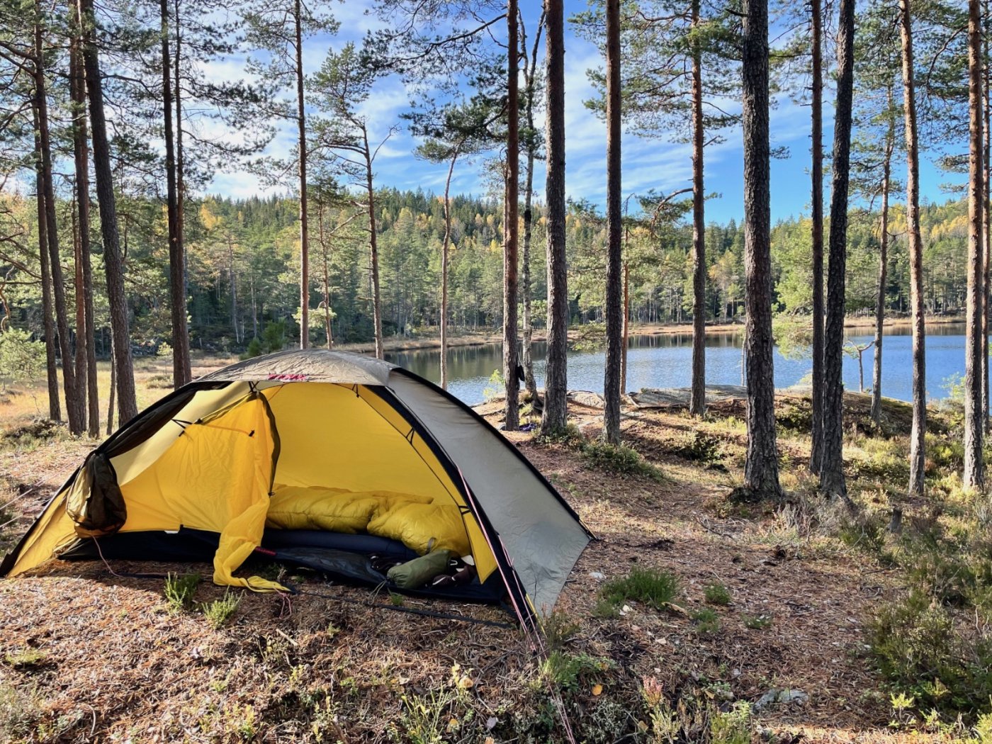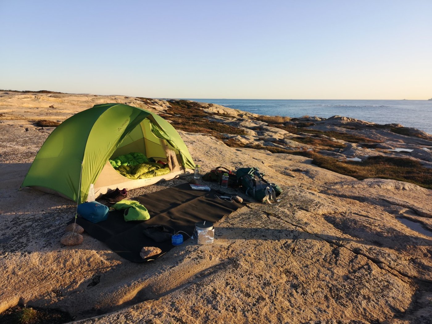 Omkring høstferien har det blitt så kjølig høyt til fjells at det ikke frister å ligge frosten i en minimalistisk 3-sesongspose. Da liker jeg bedre å fryse i en minimalistisk 2-sesongspose nede ved kysten. I alle fall har det blitt en tradisjon at jeg tar noen teltnetter langs kyststi i høstferien. Denne gangen ble det Hvaler. Og så klarte jeg å lokke med meg eldste datteren på 19 år som turfølge. Vi tok buss i fra Oslo og hoppet av ved stoppestedet "tunnelen vest" på Asmaløy. Derifra ble det 15 minutter på asfalt ned til Vikertangen. Der er et flott friområde med myke og blankpolerte svaberg. Der blir det en liten lunsjpause med suppe og knekkebrød. Vi har pakket relativt lett, med sekker på 11 og 8 kg som inkluderer 3 liter vann. På kyststi er man avhengig av å passere vannkraner underveis, så det er lurt med litt "startkapital". Etter lunsjpausen går stien over strand og siv, gjennom små skogholt og over en liten bro etter vi runder Skipstadkilen. Så går stien på ny helt utpå svabergene ved havet før vi kommer opp til Brattestø marina. De har akkurat lukket ned for sesongen, og dessverre stengt vannkranen. Da må vi klare oss på de 2,5 litrene vi har igjen til neste dag. Innover langs Asmal sundet er det idylliske små badesteder med sandstrand, nyperoser og kystfuru. Ikke fullt så idyllisk er det å krysse broen over til Spjærøy. De har nok ikke tenkt så mye på fotgjengere når de bygget Hvalerbroene. Ut mot Spjærøykilen merker vi at det nærmer seg solnedgang. Solen står lavere og svabergene får en gyllen glød over seg. Det er et flott landskap ute på Spjærodden. Og midt oppi en diger røys av rullesteiner finner vi en liten flat bergflekk, akkurat stor nok til skjærgårdshotellet. Vi rekker akkurat å slå leir og spise middag før mørket kommer krypende. Neste dag er været sommerlig, med skyfri himmel og svak vind. Det er deilig å sitte på svaberget med frokost og kaffe. Nå er alt vannet vårt brukt opp, så vi er nødt til å finne vann i løpet av formiddagen. Ved Brottet på Spjærøy vet jeg at kystledhyttene har vannkran på utsiden. Og de er heldigvis ikke stengt. Der tar vi varm lunsj og drikker oss utørste før vi fyller opp 3 liter. Vi føler oss steinrike. Så blir det å stålsette seg over en ny bro til Vesterøy. Vi går turstien forbi den optiske telegrafen ved Skjelsbu. Det blir et lite stykke asfalt ned mot Utgårdskilen og en liten pause ved Sandholmen. Her er det også fine teltplasser. Men vi skal videre. Odden ved Guttormsvauen er pekt ut som kveldens teltplass. Vi finner den "hemmelige" stranda der ute. Planen var å slå leir her, men lyden av bølgene er formidabel, og lukten av tang er litt for kraftig. Derfor går vi opp fra stranden igjen. Vi slår leir på bergene over i stedet. Her er det rent og tørt med en fantastisk utsikt utover havet. Vi kan sitte å nyte pasta med skinke og ostesaus imens vi ser solen går ned. Det er koselig å ligge i teltet å løse kryssord sammen og høre brenningene brøle utenfor. Før vi sovner går vi ut for å kikke på stjernene. Det er lenge siden jeg har opplevd en så klar stjernehimmel, med en stor og lysende Jupiter i syd. Jeg føler meg virkelig priviligert som får dele denne opplevelsen med datteren min. Neste dag har været slått om. Det har vært morgentåke som akkurat har lettet, men yr melder regn og økende vind utover formiddagen. Vi tar en rask frokost, pakker sakene og setter kursen over Dyrefjellet opp mot Kuvauen. 4 peanøtter og 1 dl vann er det som er igjen. Da er det bare en times transportetappe på asfalt som gjenstår til holdeplassen ved Bratte bakke, og buss tilbake til Oslo.1 poeng